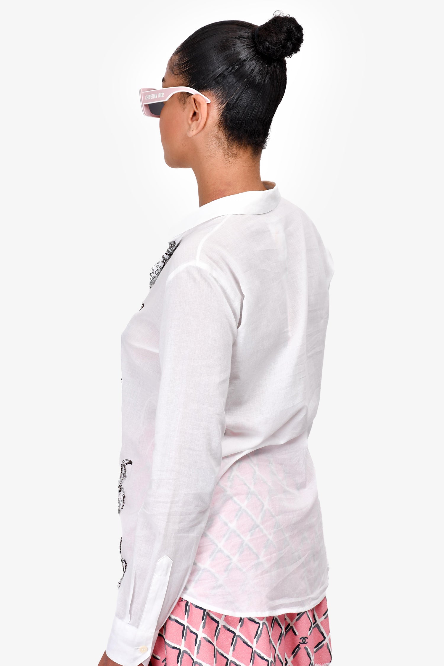 Refresh availabilityEtro White Cotton Bead Embroidery Button-Up Shirt. Button closure on the cuffs.