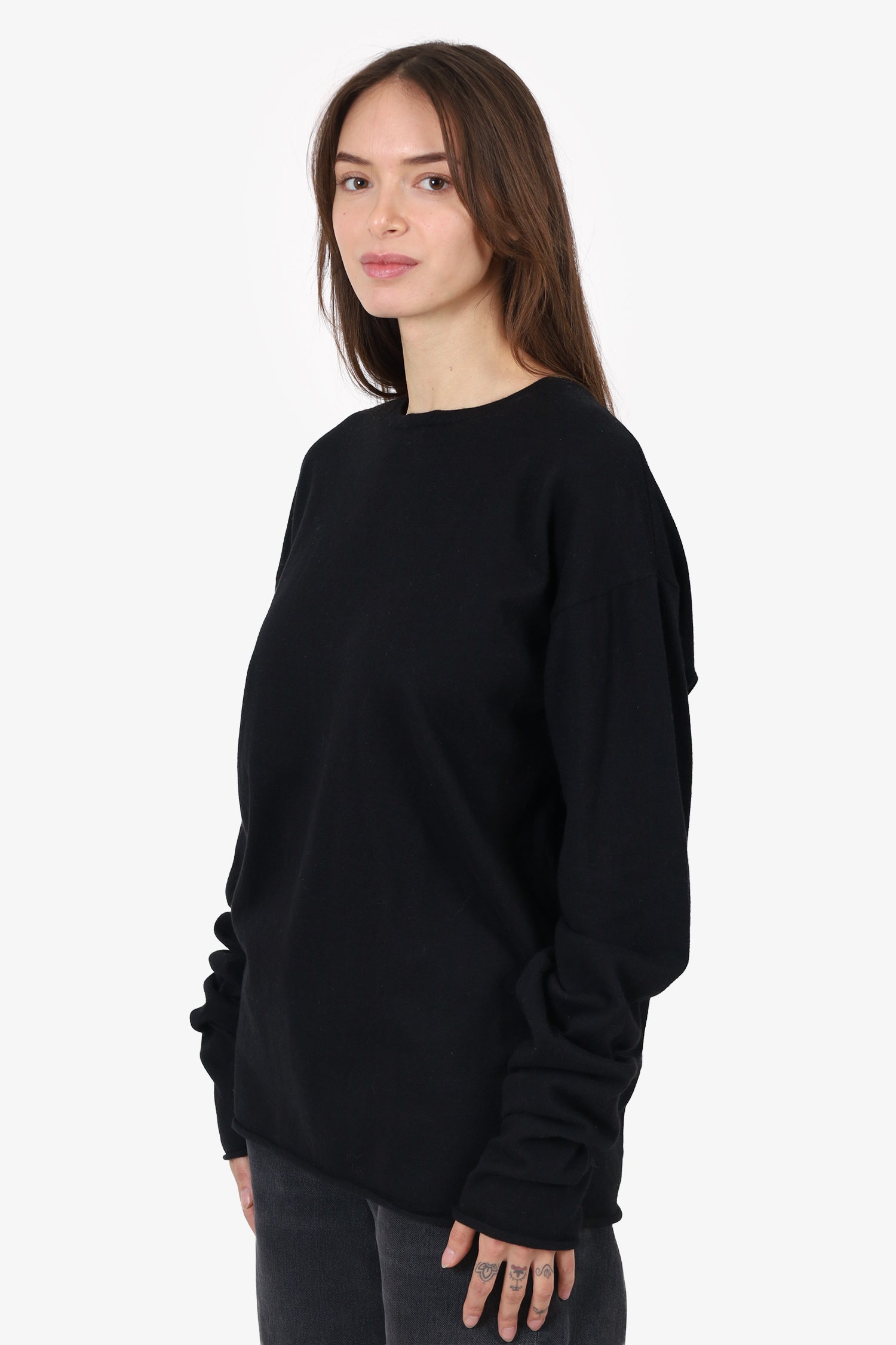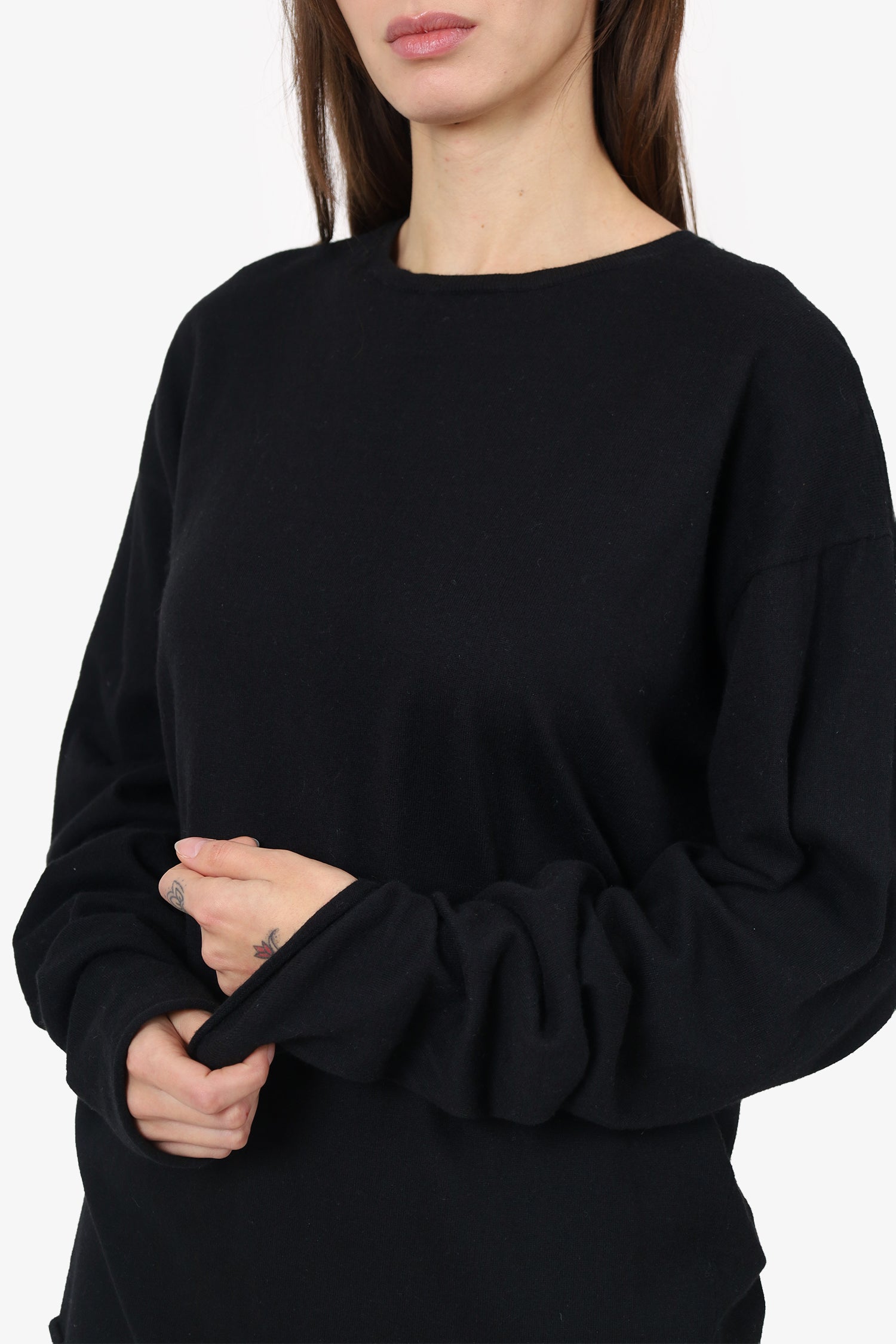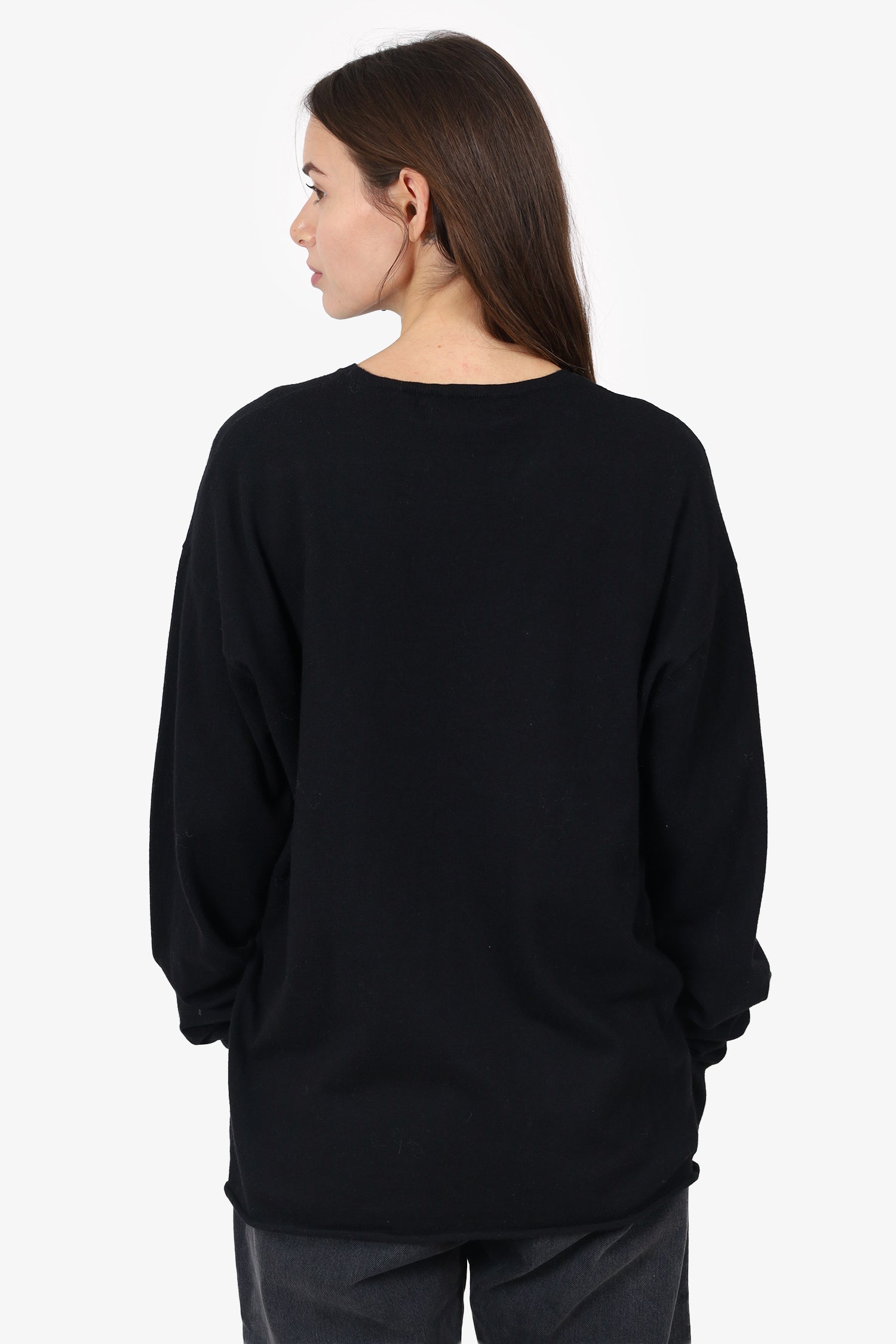 Refresh availabilityExtreme Cashmere Black Knit Long Sleeve Top. Pull-on. Round neckline. Tonal stitching.