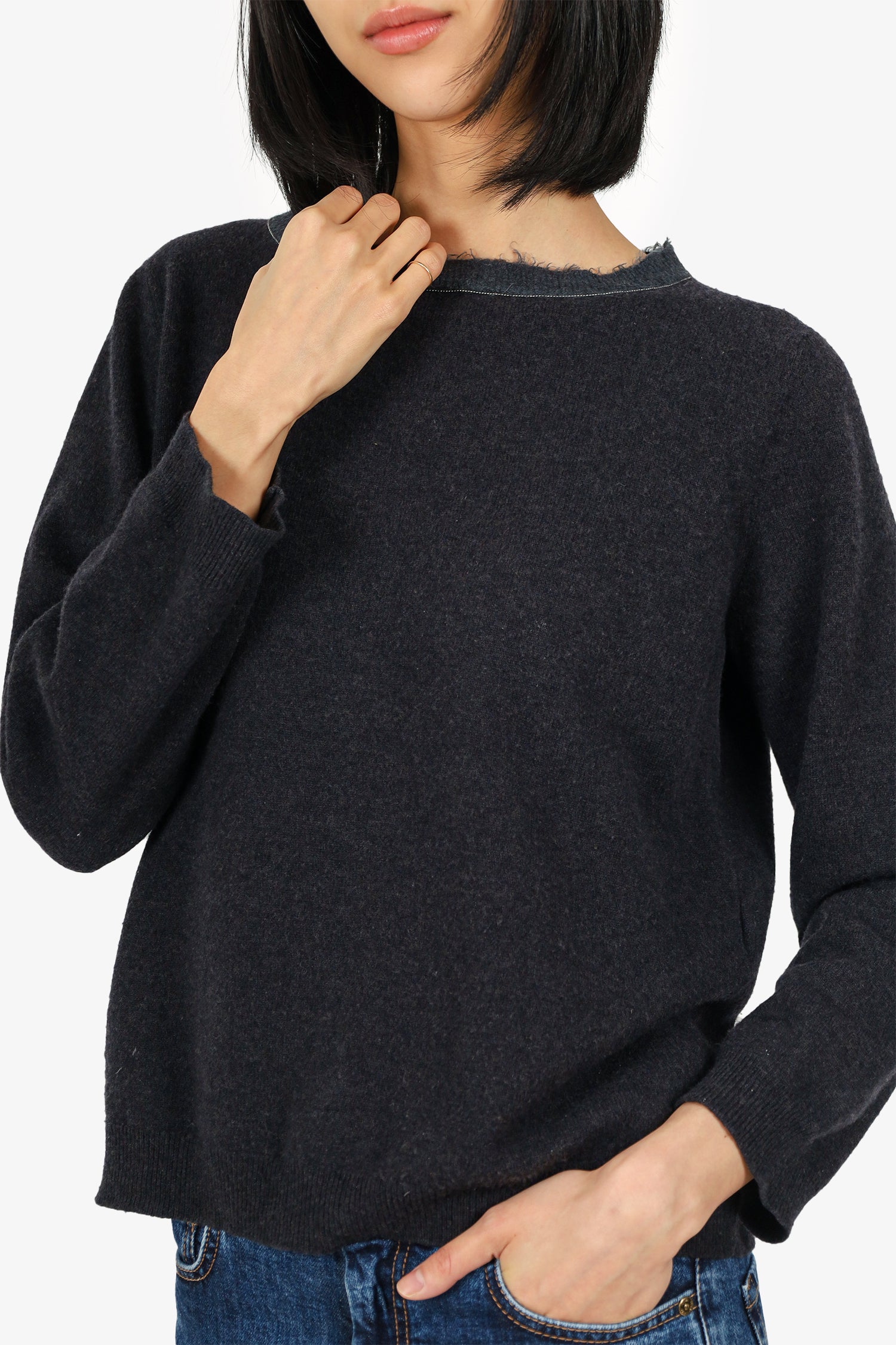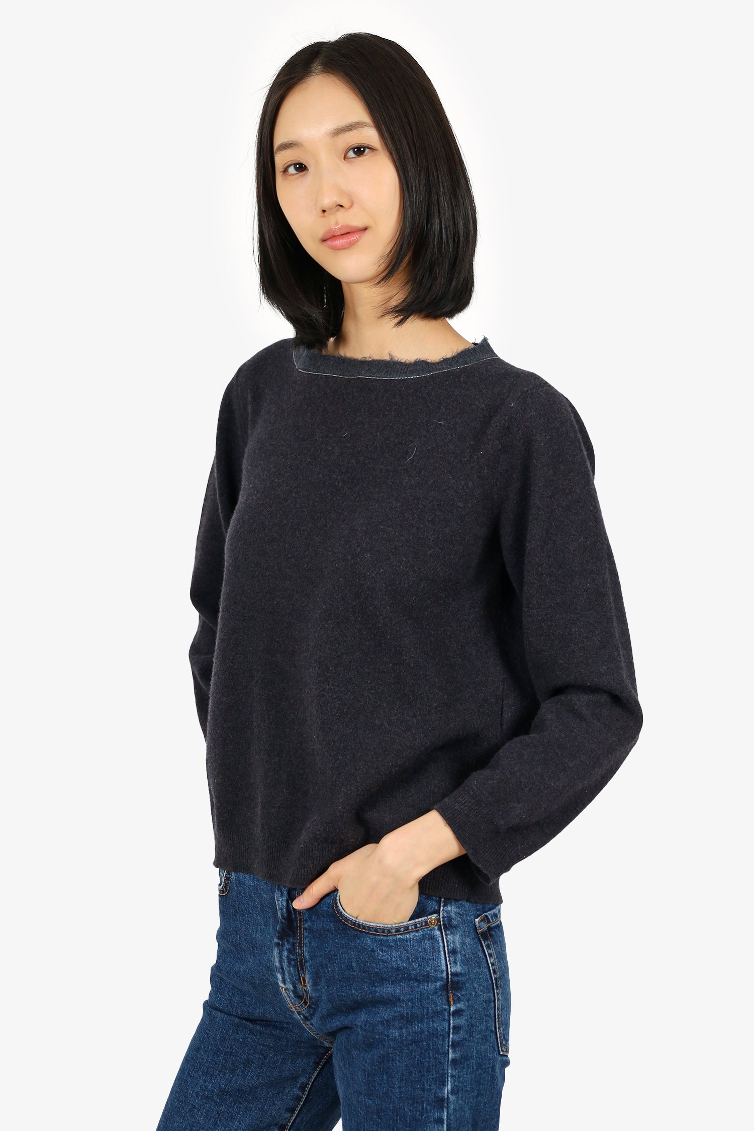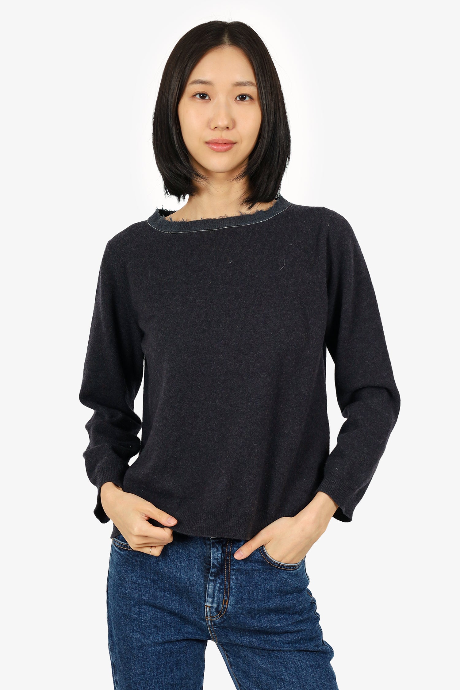 Refresh availabilityFabiana Filippi Grey Cashmere Beaded Detail Sweater. Pull-on. Raw-round-embellished neckline. Ribbed sleeve cuffs and waistband. Tonal stitching.