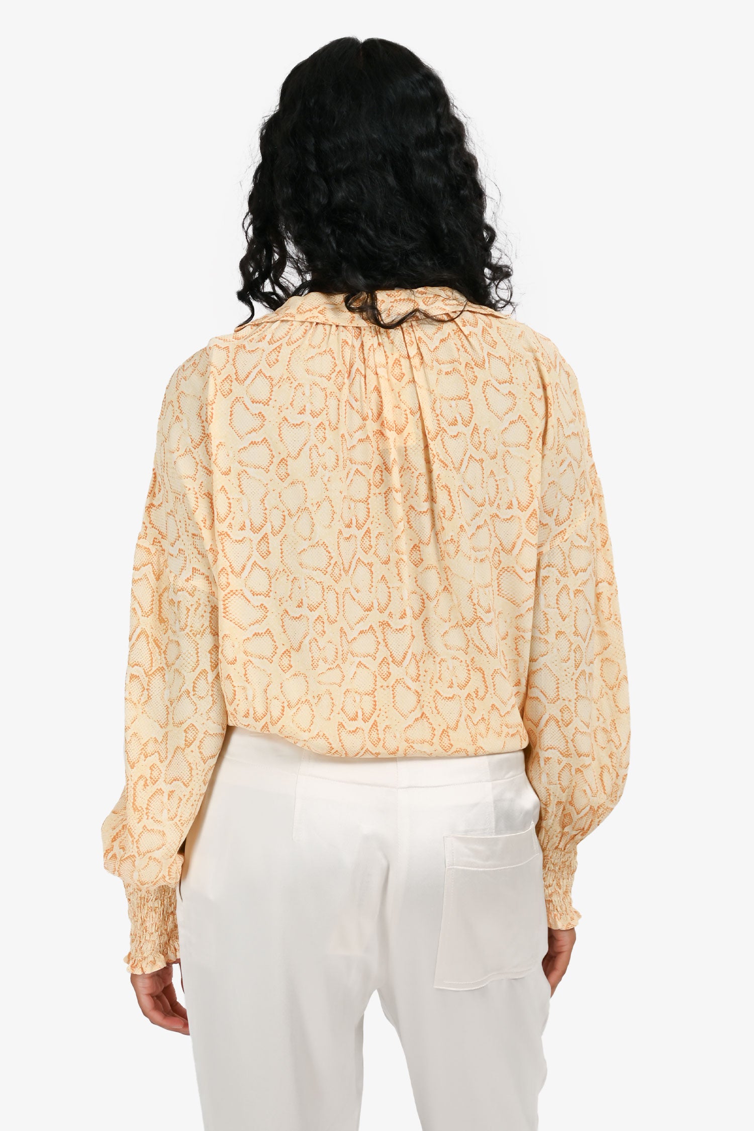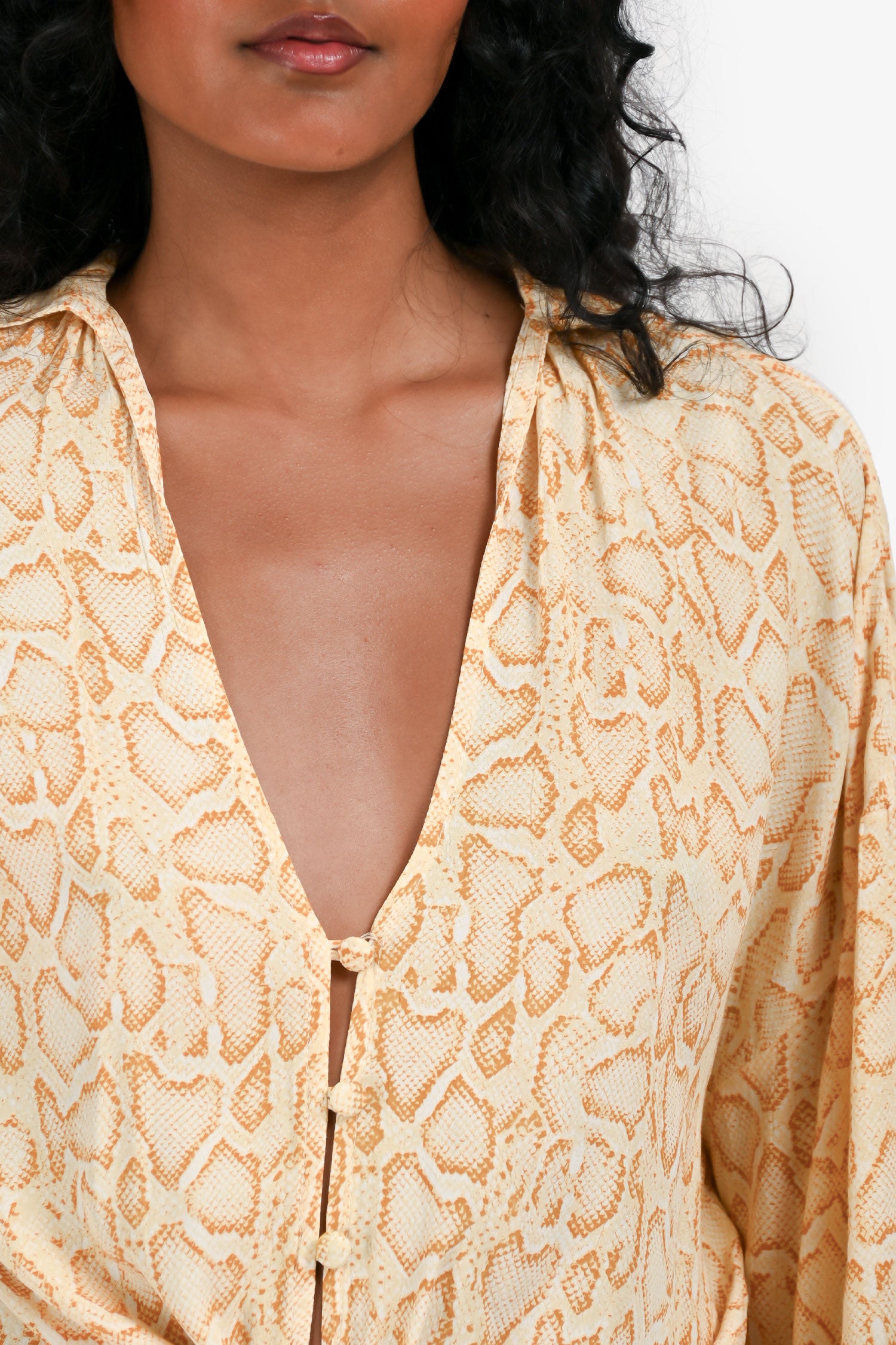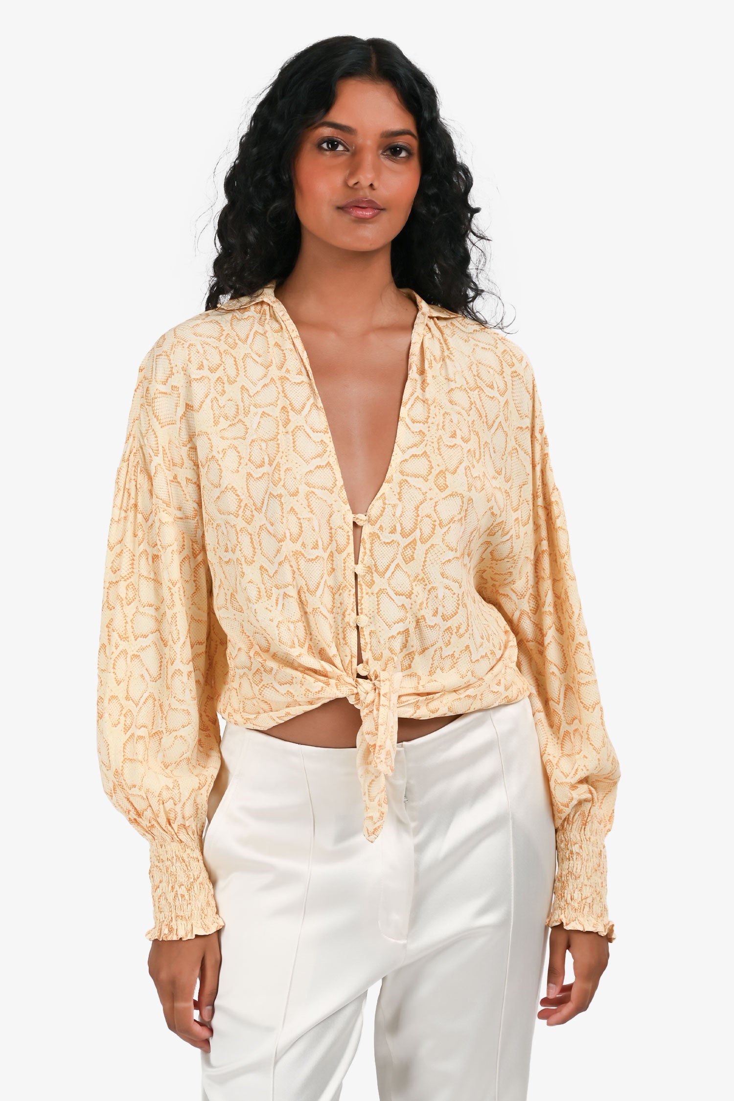 Faithfull The Brand Yellow Snakeskin Print Blouse Size XS