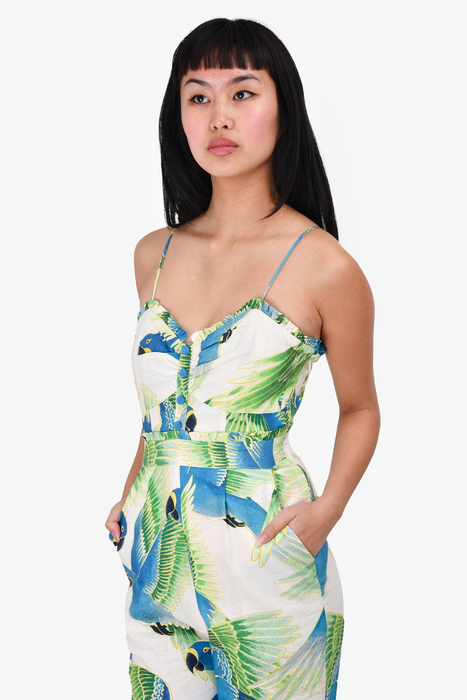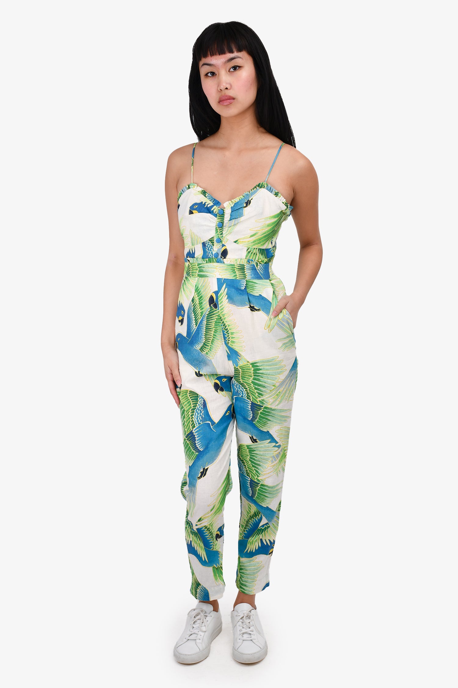 Farm Rio White/Blue Patterned Jumpsuit Size XS