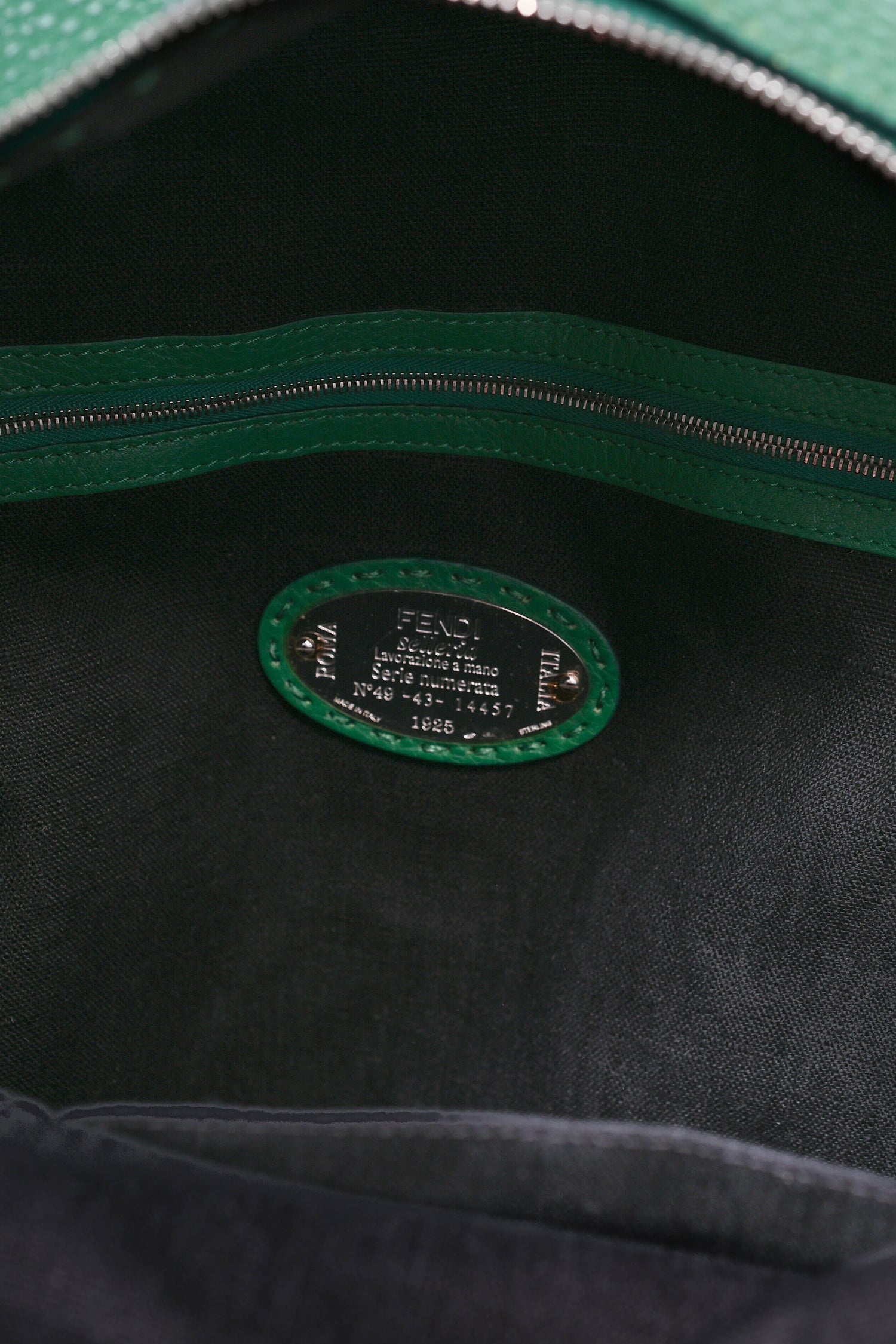 Fendi 2015 Green/Black Leather Selleria Croc Tail Backpack. Front zipped compartment. Silver-tone hardware. Lined interior with a zipped interior and 2 wall pockets. Single leather handle. Padded mesh shoulder straps. Croc tail detail. Tonal stitching.