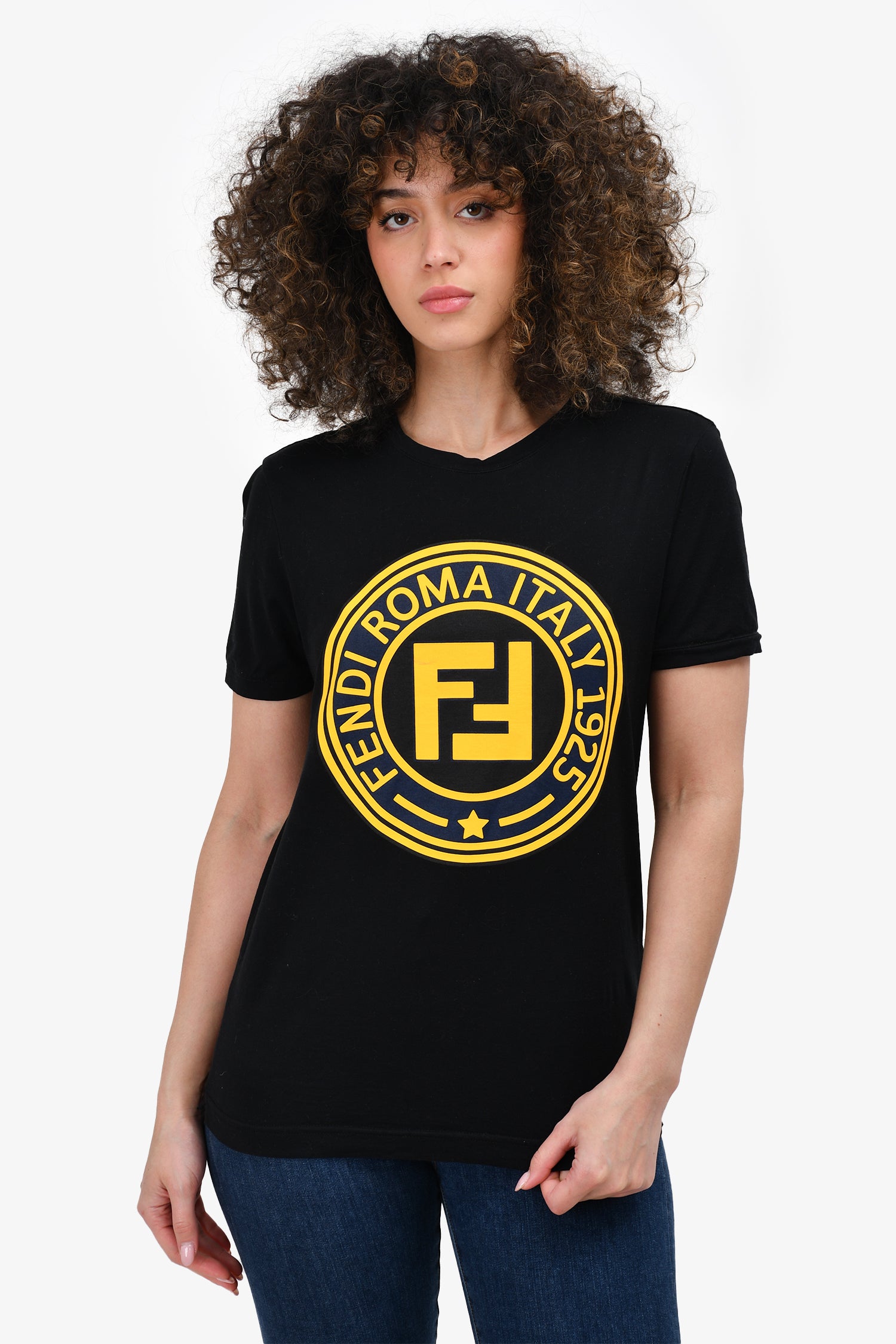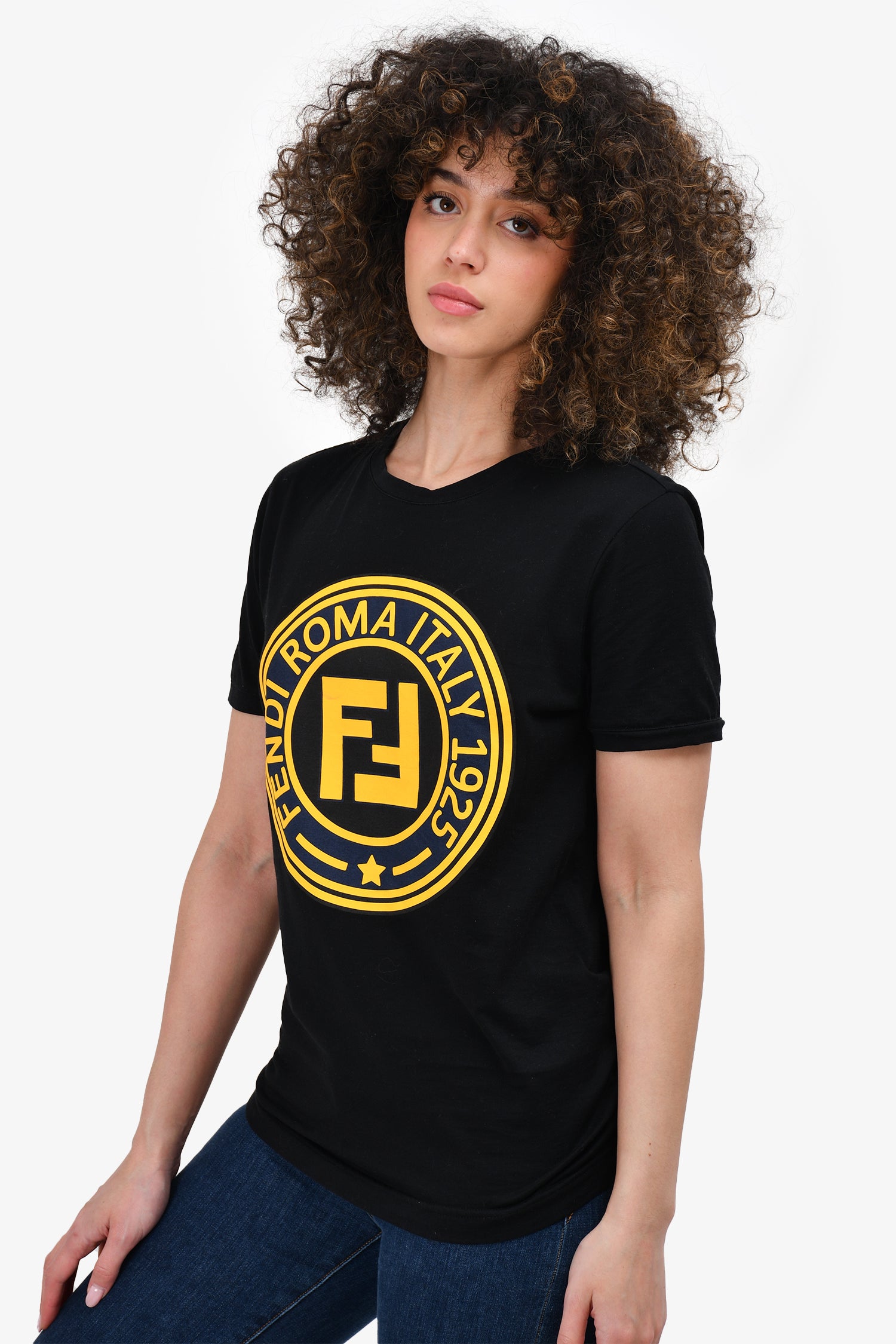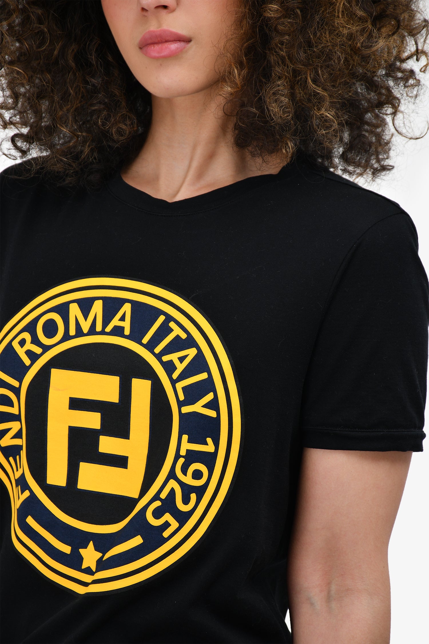 Refresh availabilityFendi Black Cotton Yellow Logo Graphic T-Shirt. Crew neck. Short sleeve. Tonal stitching.
