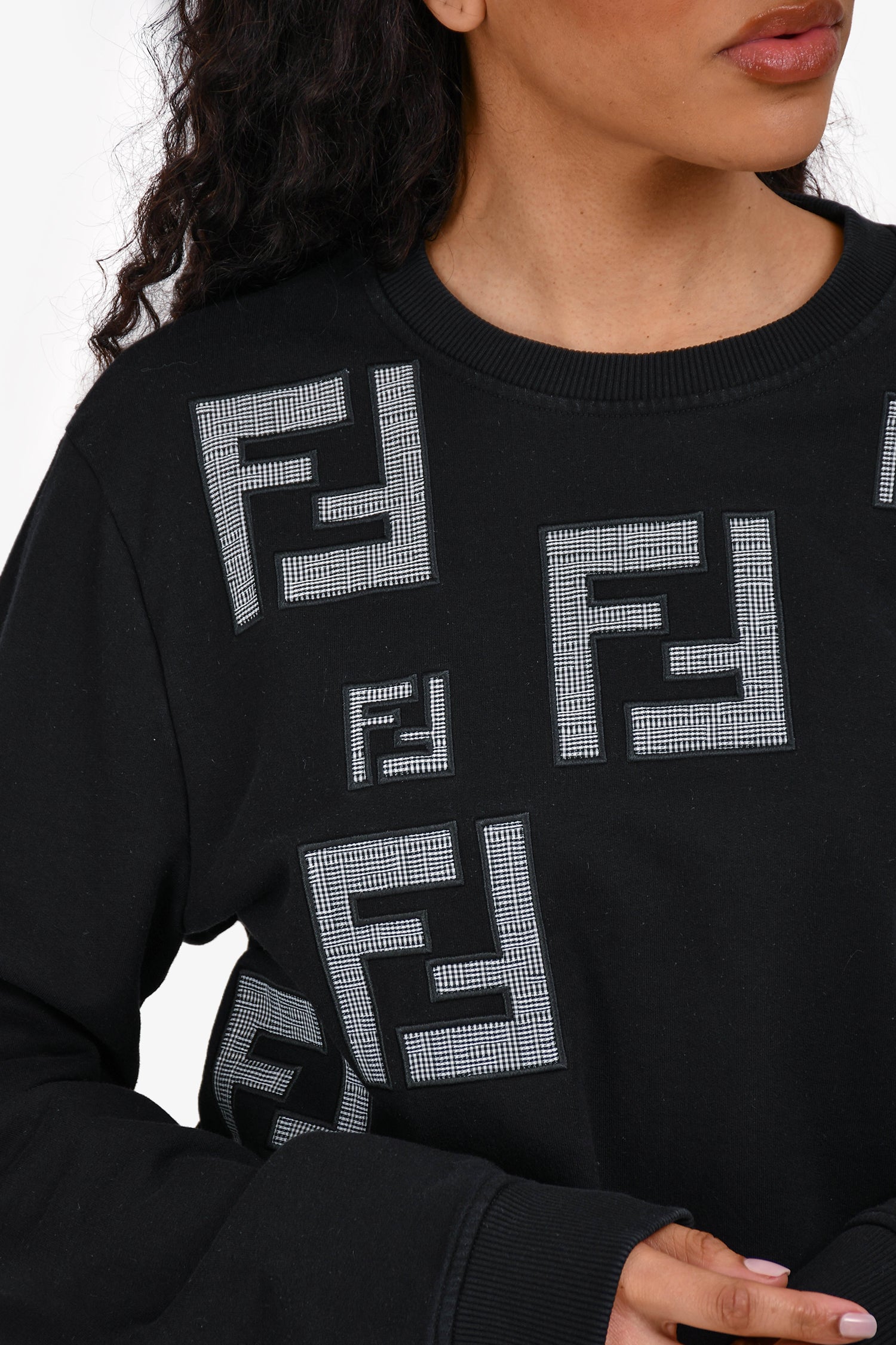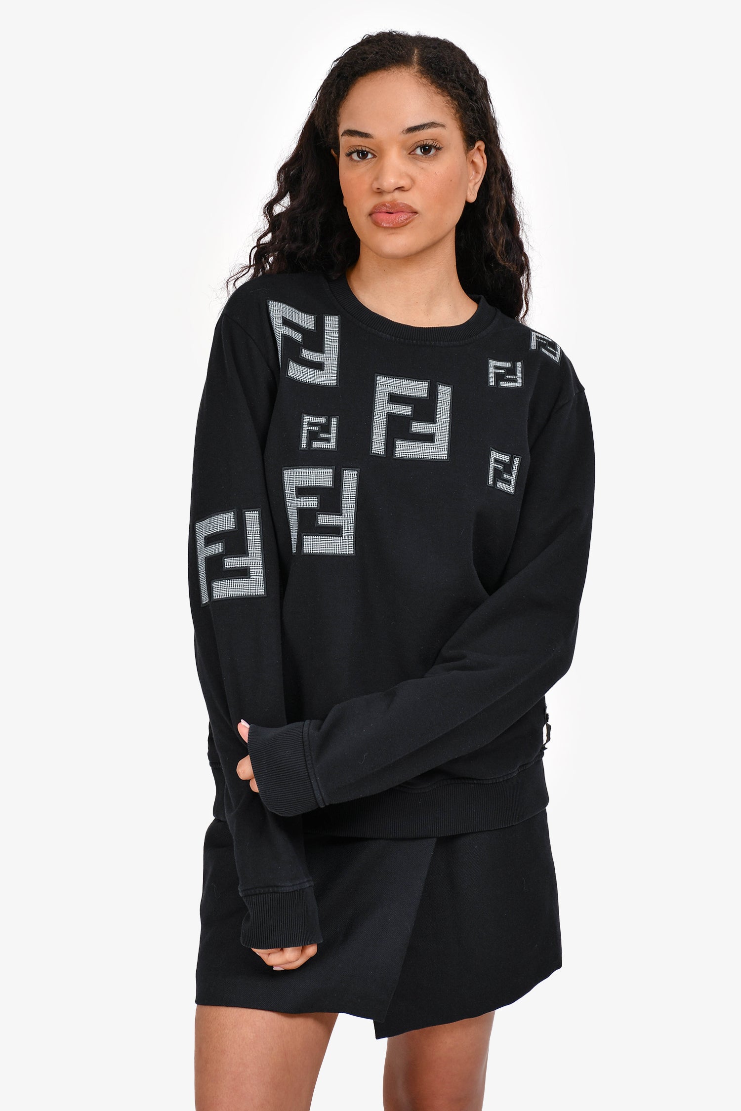 Refresh availabilityFendi Black Embroidered Logo Sweatshirt. Crew neckline. Long sleeves with ribbed cuffs. Tonal embroidered logo at chest. Pull-on. Tonal stitching.