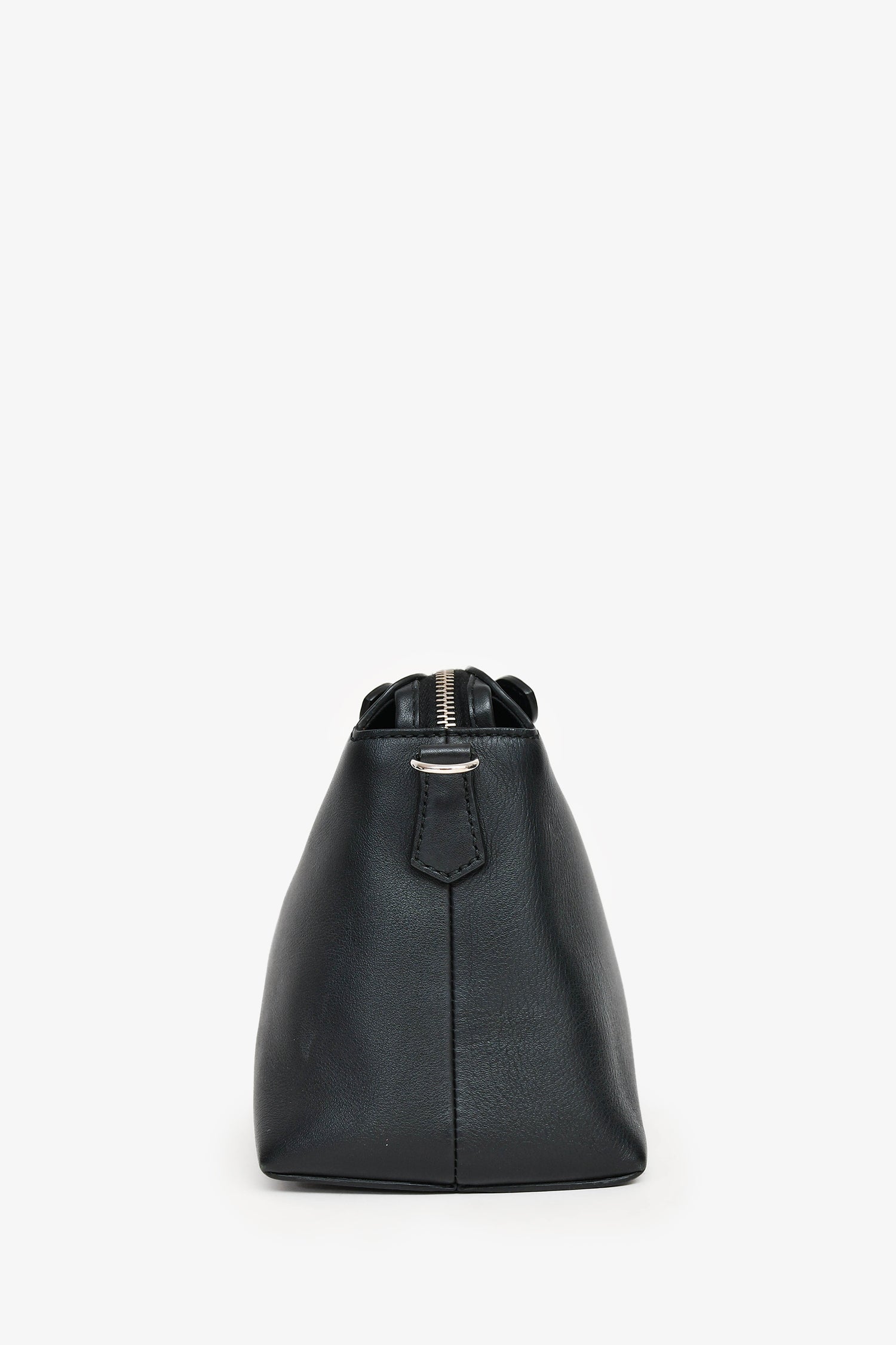 Refresh availabilityFendi Black Leather By The Way Top Handle with Strap. Top zip closure. Dual top handles. Detachable and adjustable strap. Three main compartments on the interior: one with tip zip closure. Two wall slip pockets. Silver-tone hardware. Tonal stitching.