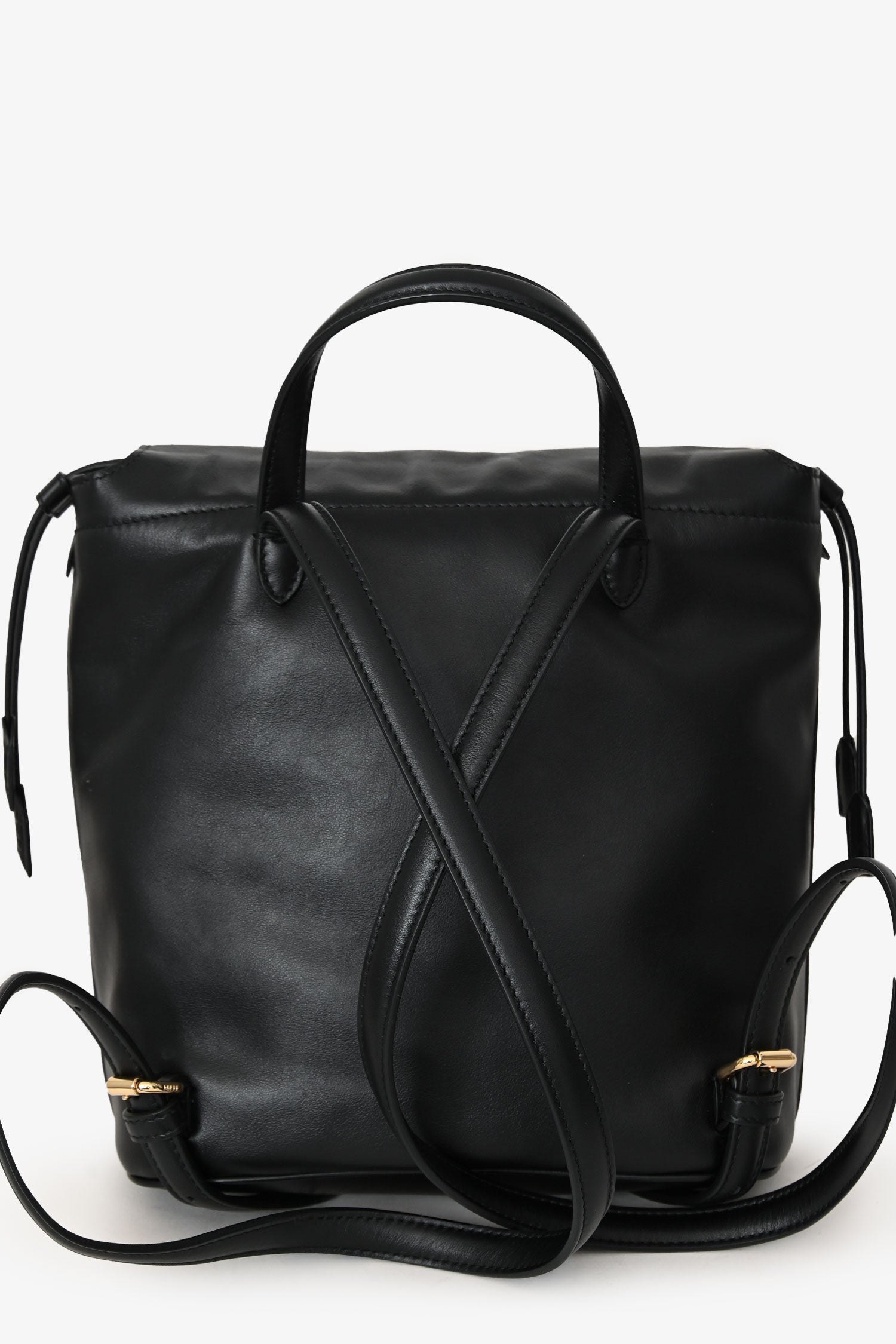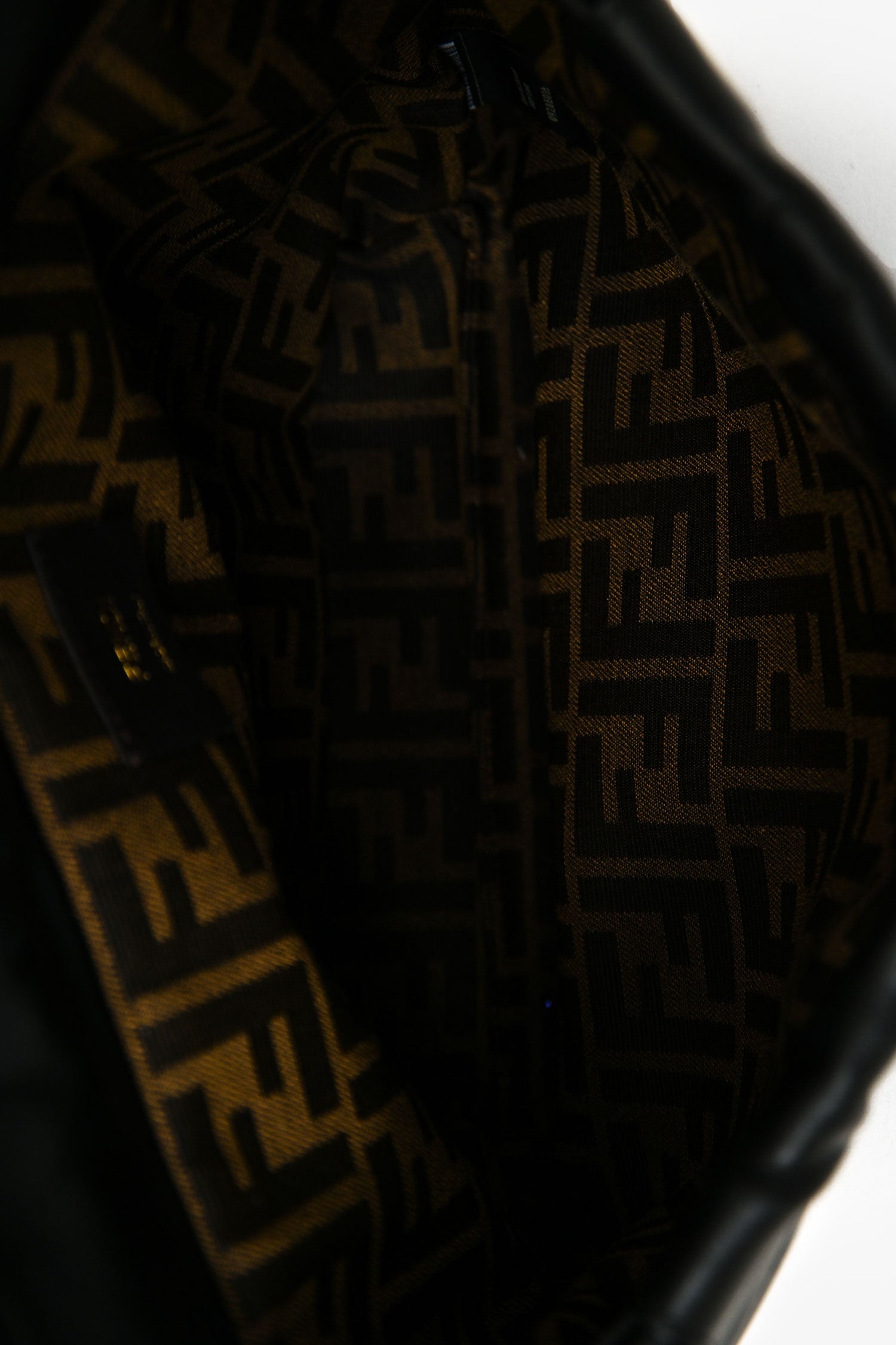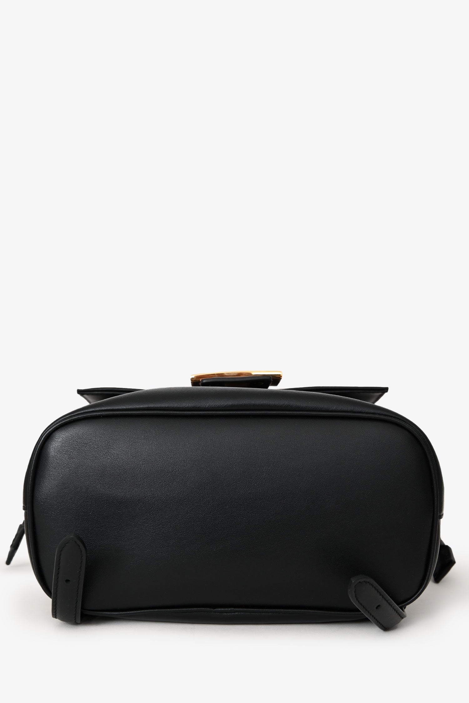 Refresh availabilityFendi Black Leather FF Clasp Backpack. Flap closure with FF clasp and drawstring fastening. Adjustable shoulder straps; top handle. Single main compartment. Fabric-lined interior. Gold-tone hardware. Tonal stitching.