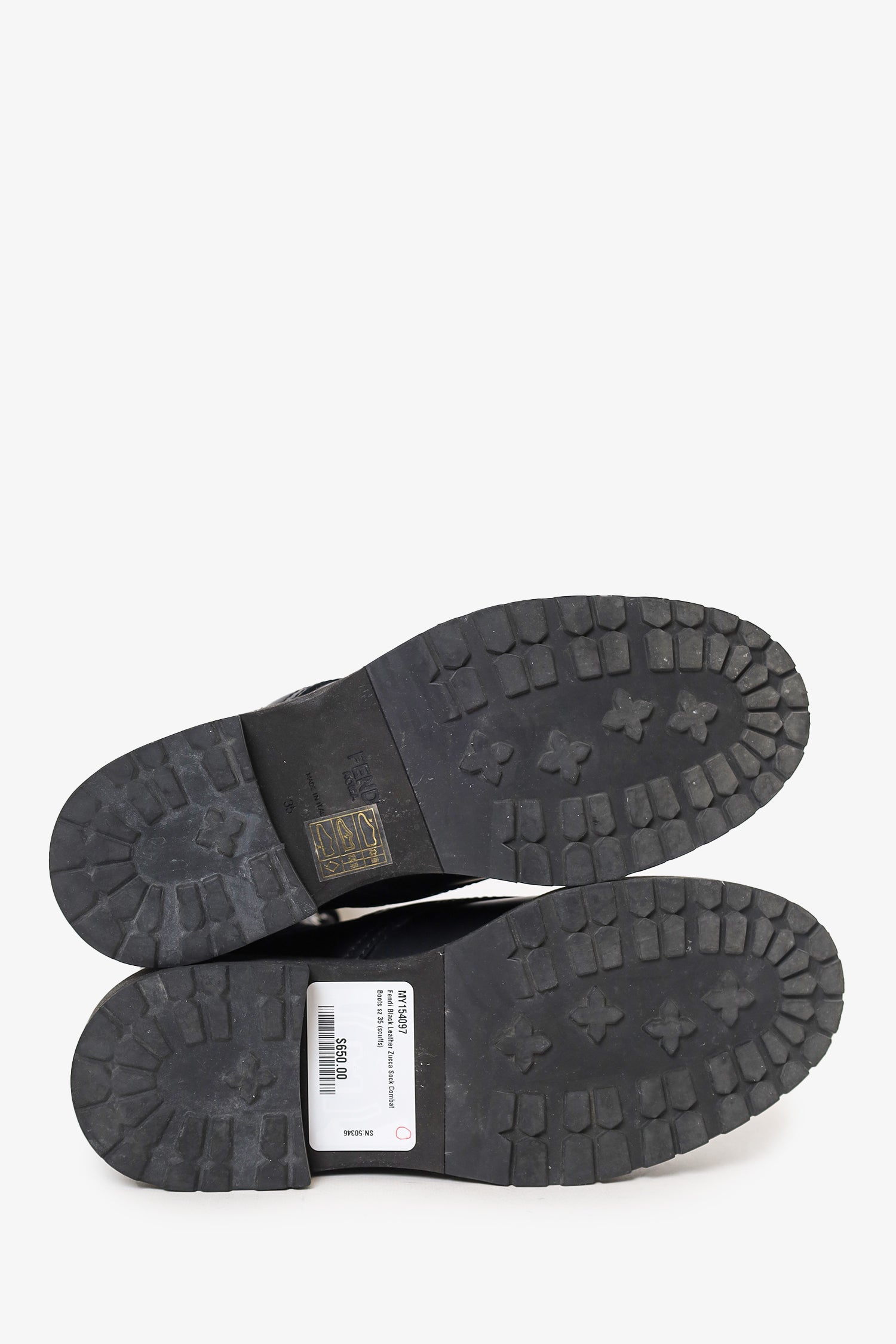 Fendi Black Leather Zucca Sock Combat Boots Size 35