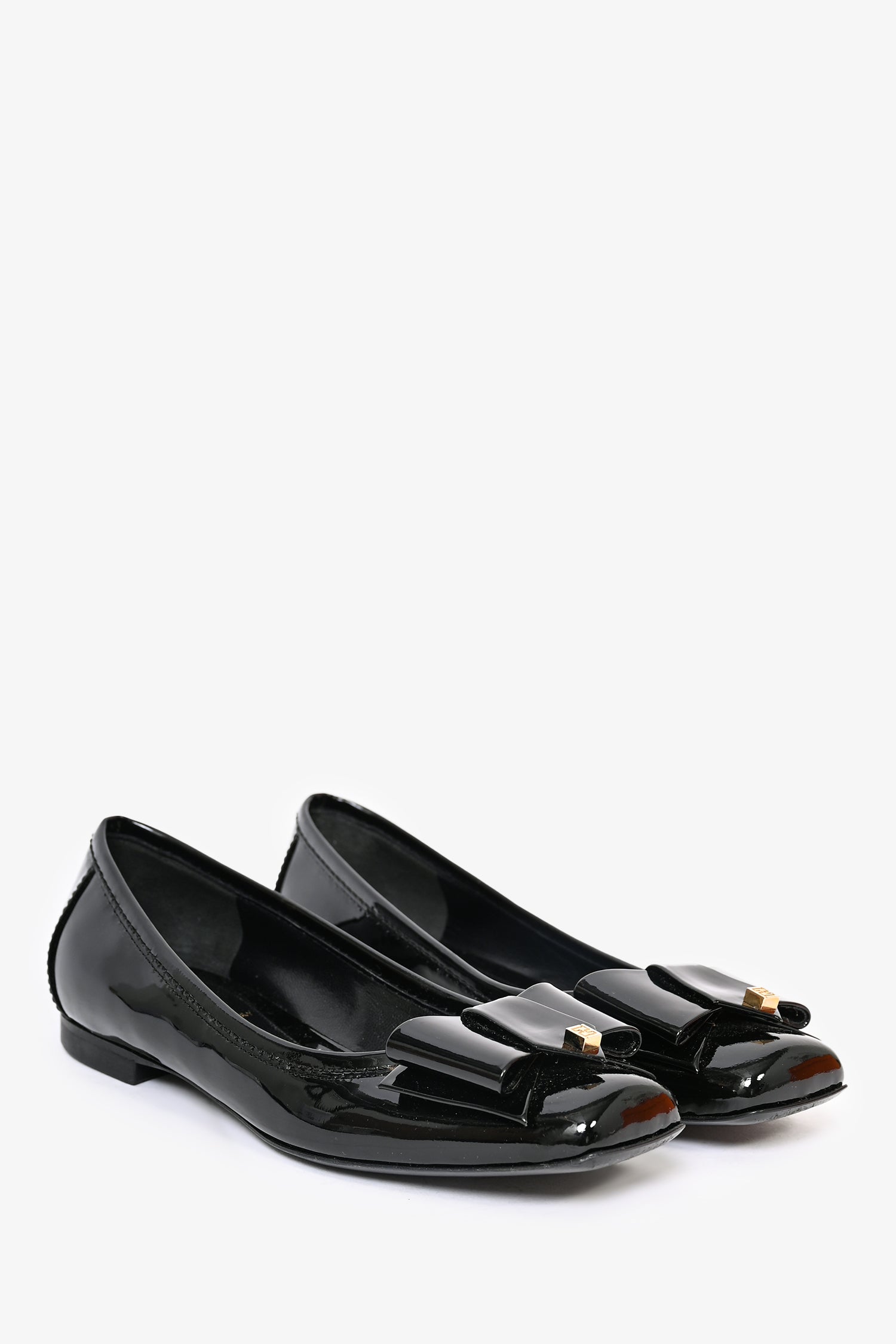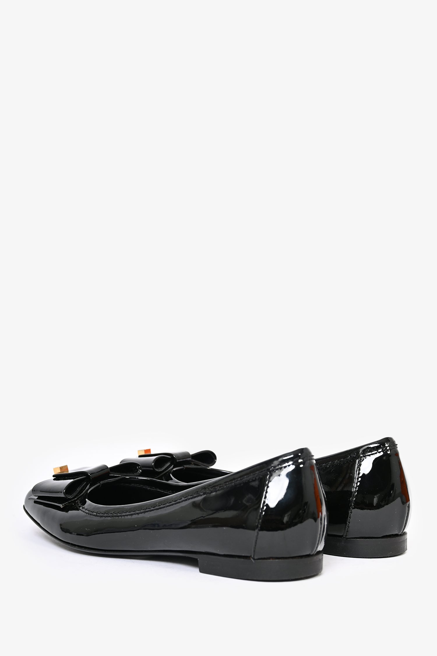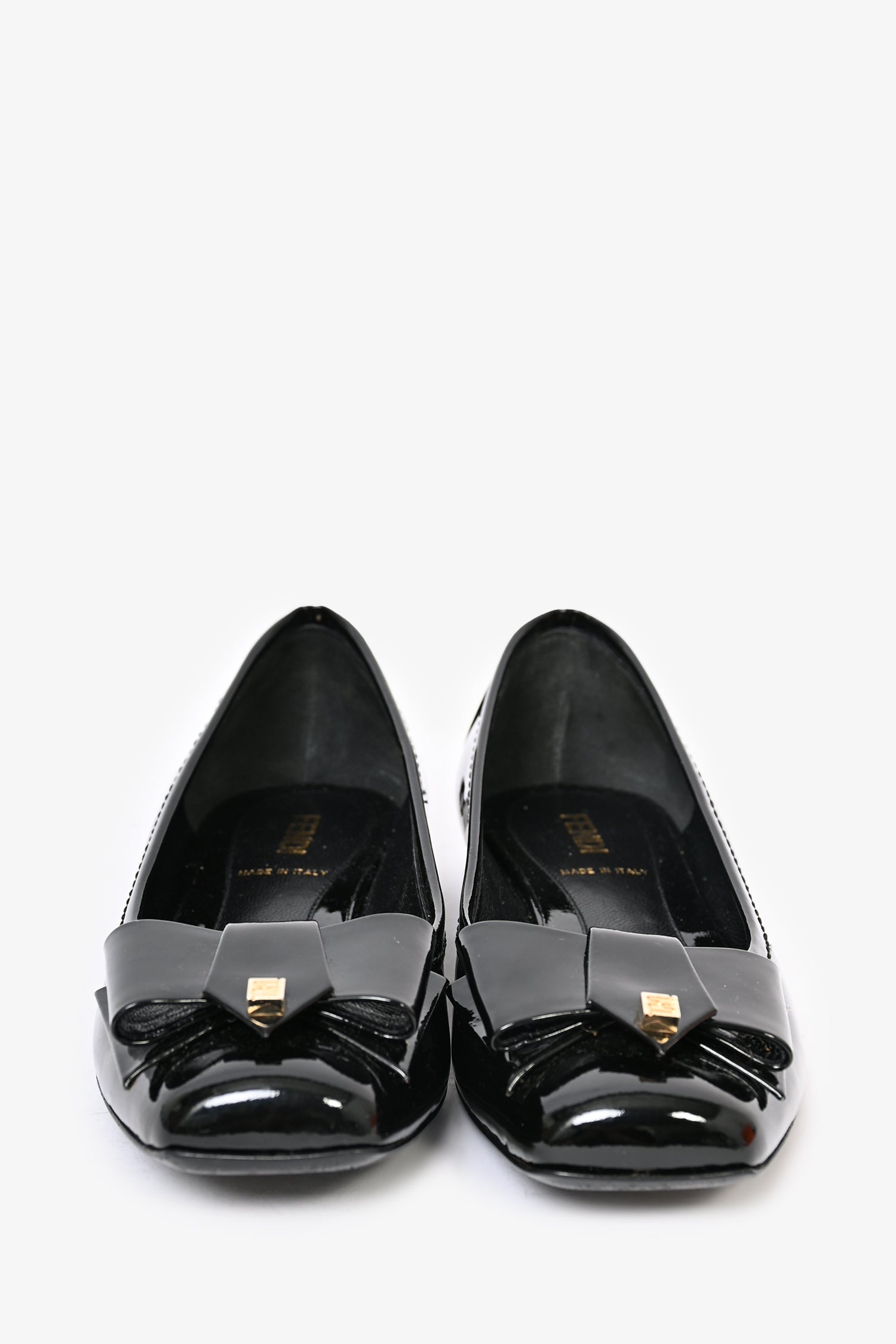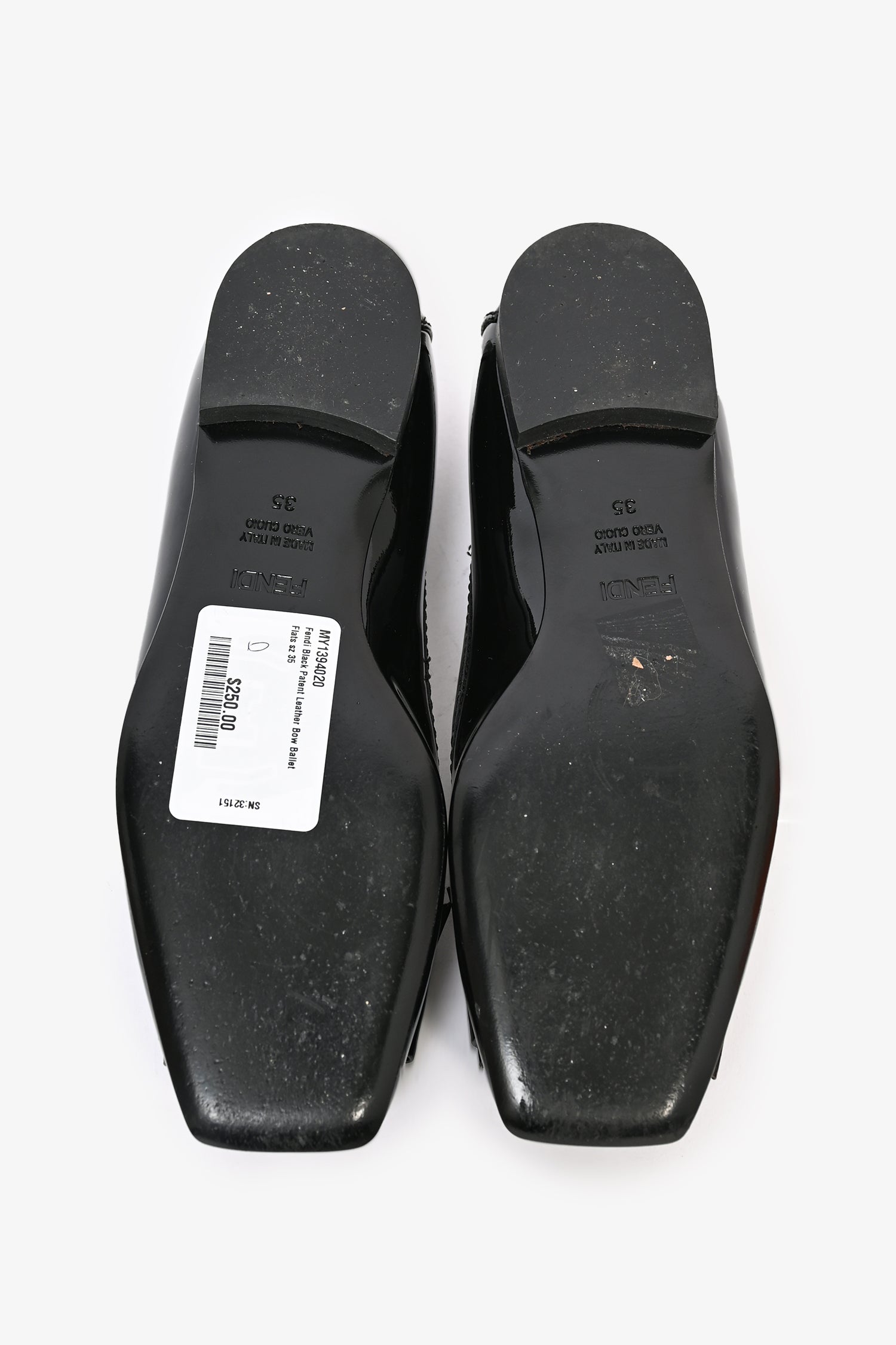 Refresh availabilityFendi Black Patent Leather Bow Ballet Flats. Slip-on. Square toe. Glossy finish.