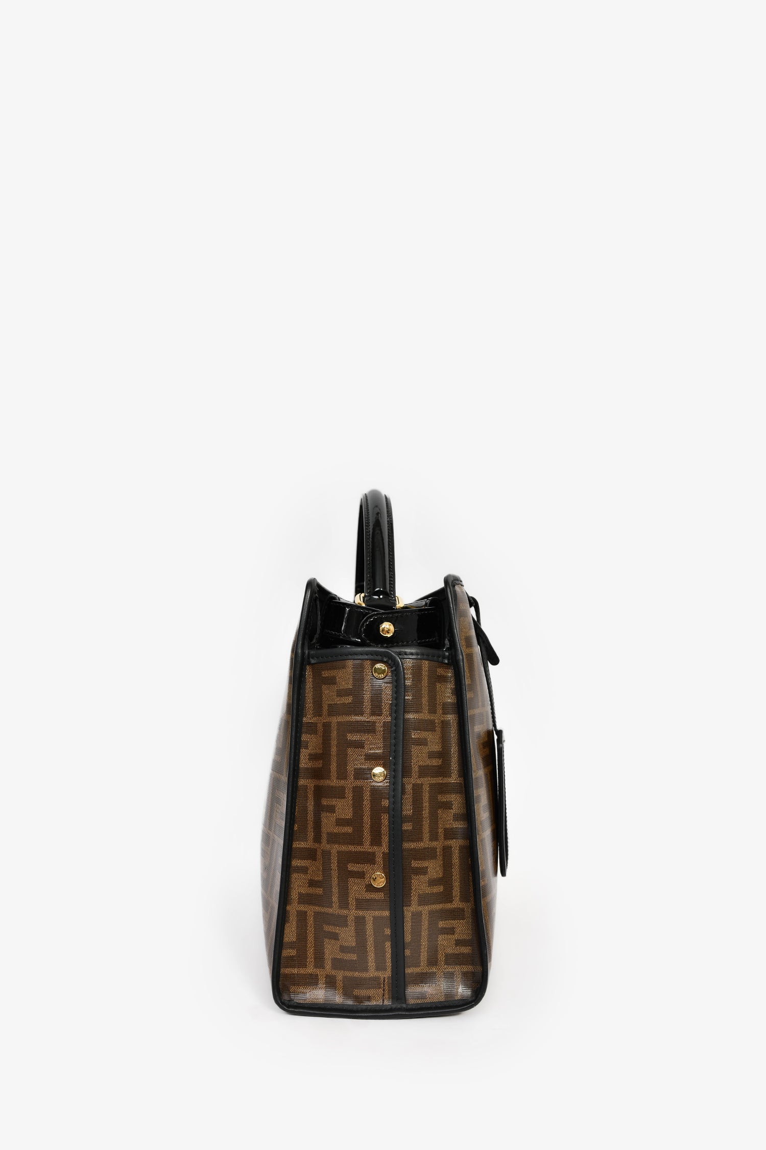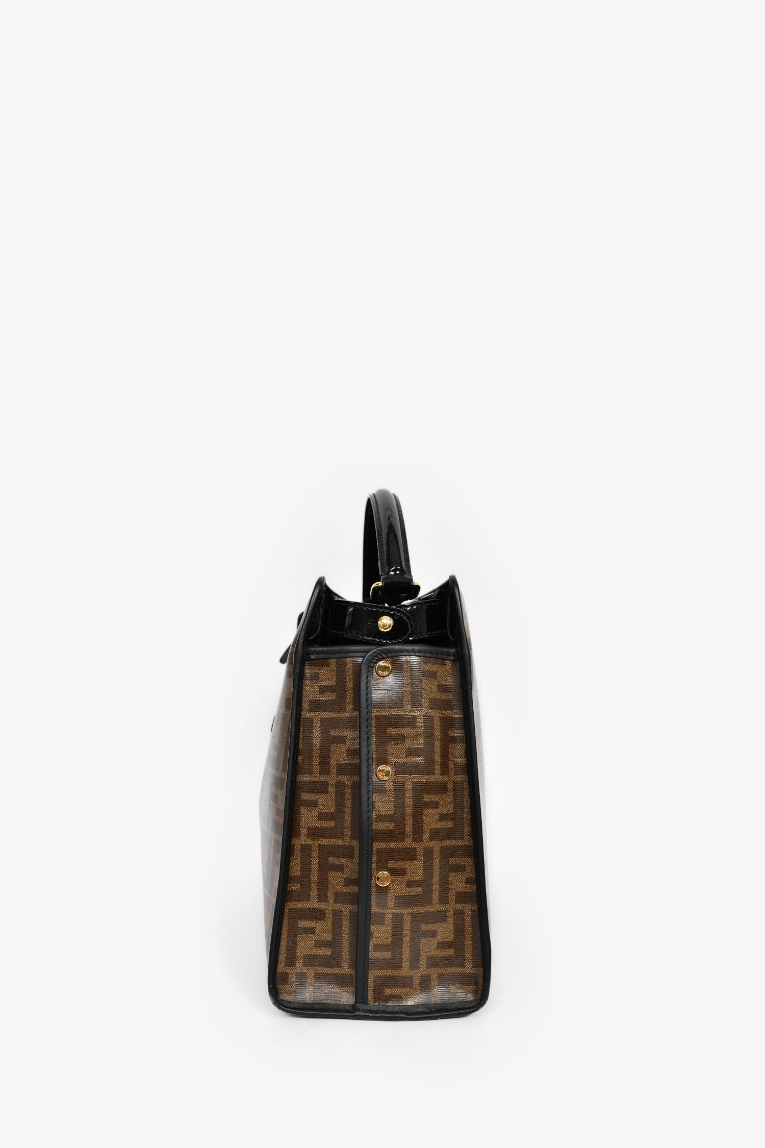 Fendi Black Patent Medium 'Peekaboo' Top Handle With Brown Zucca Canvas Defender