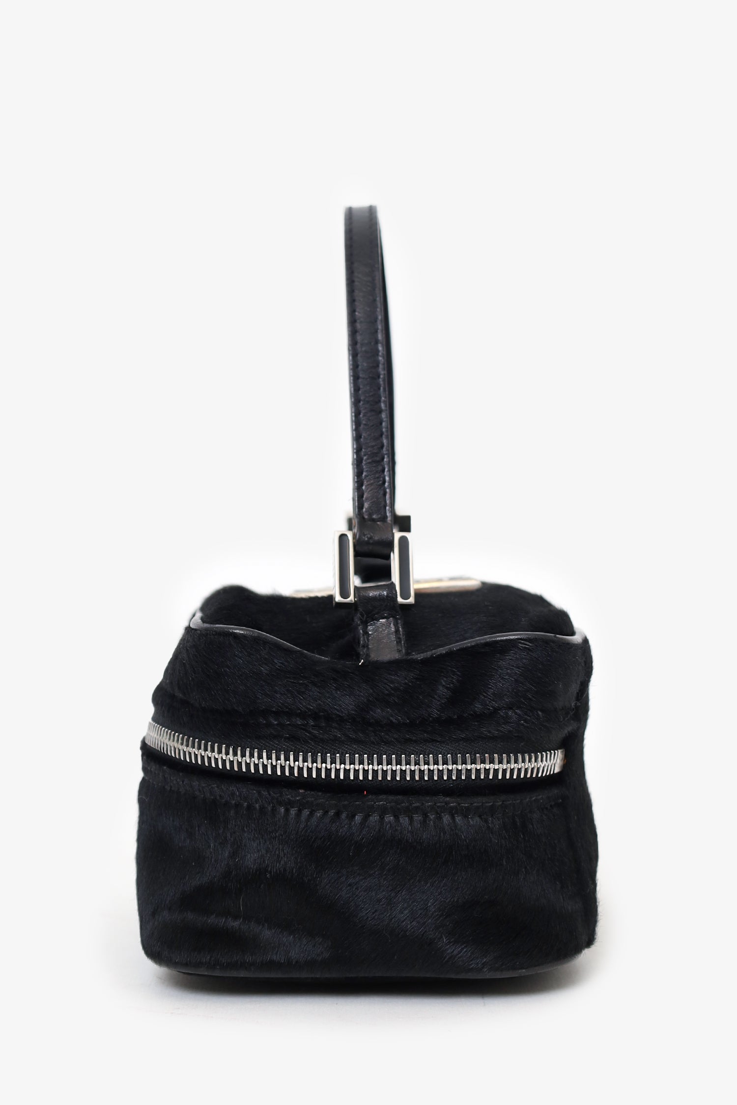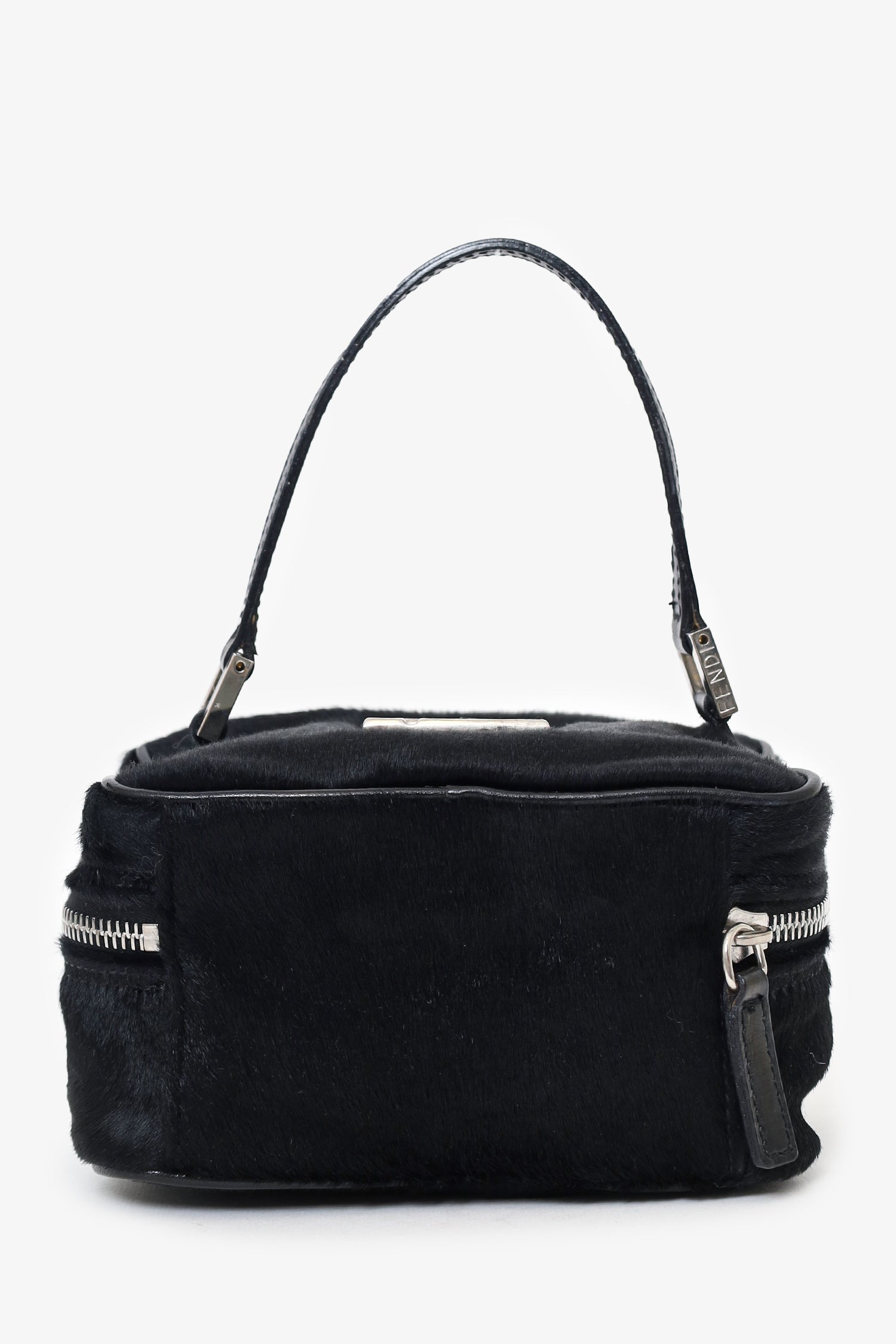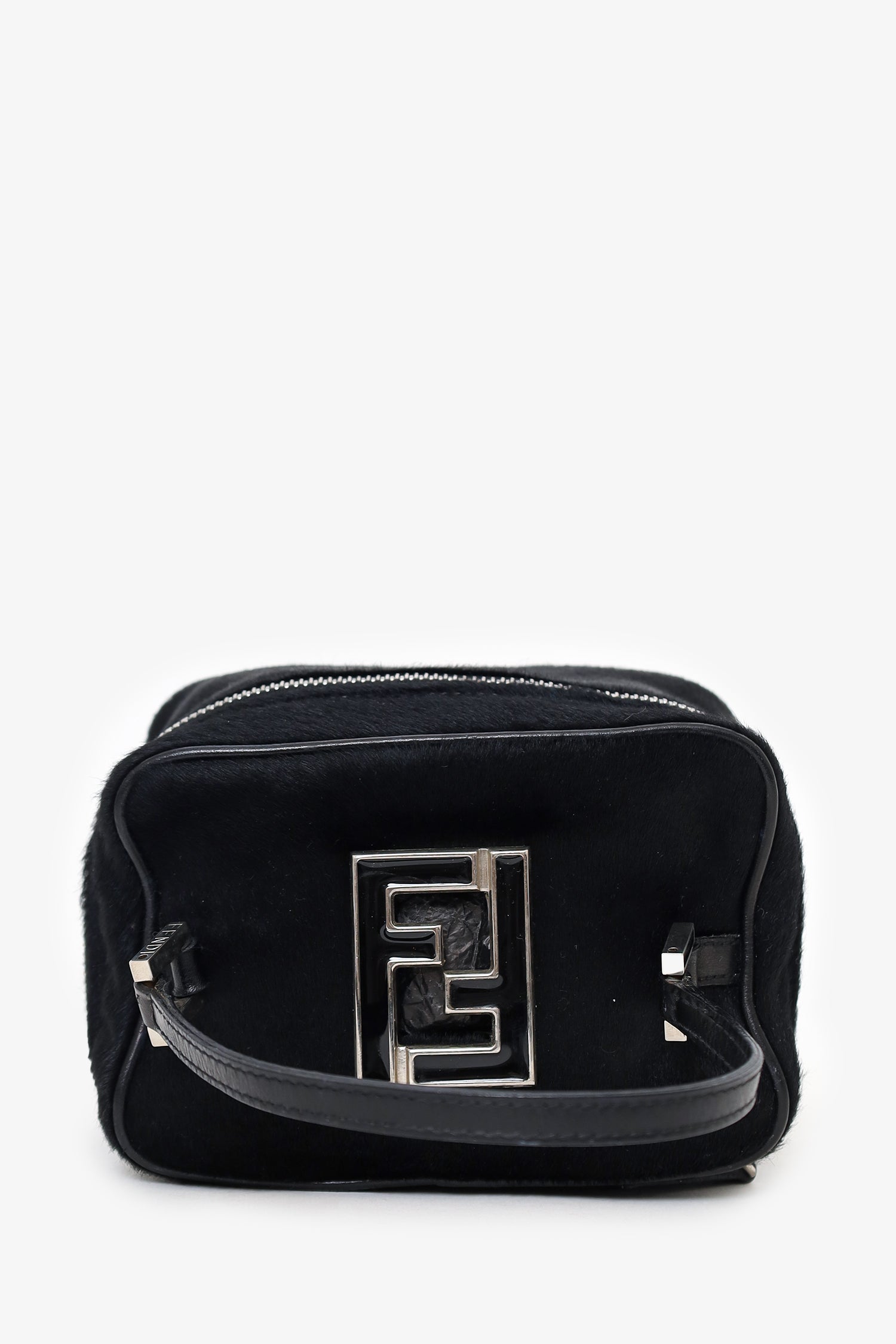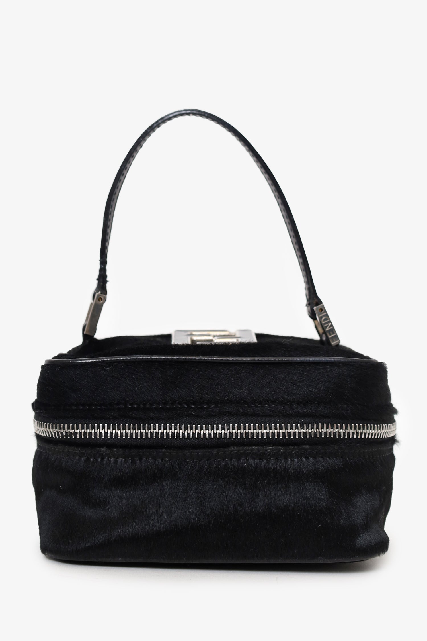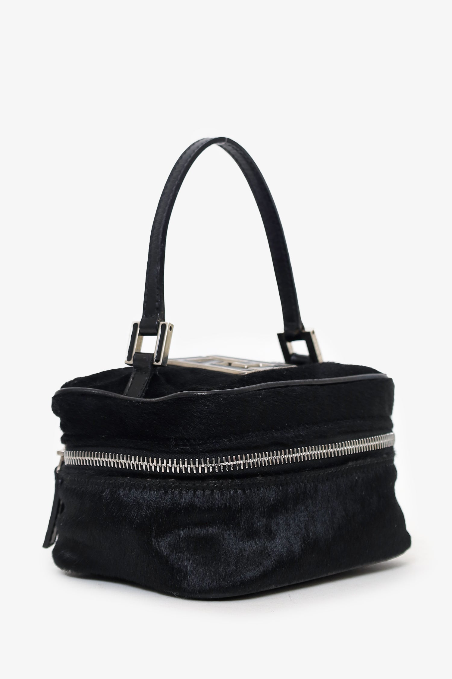 Refresh availabilityFendi Black Pony Hair FF Logo Mini Vanity Bag. Around zip closure. Top handle. Leather-lined interior. Silver-tone hardware. Tonal stitching.