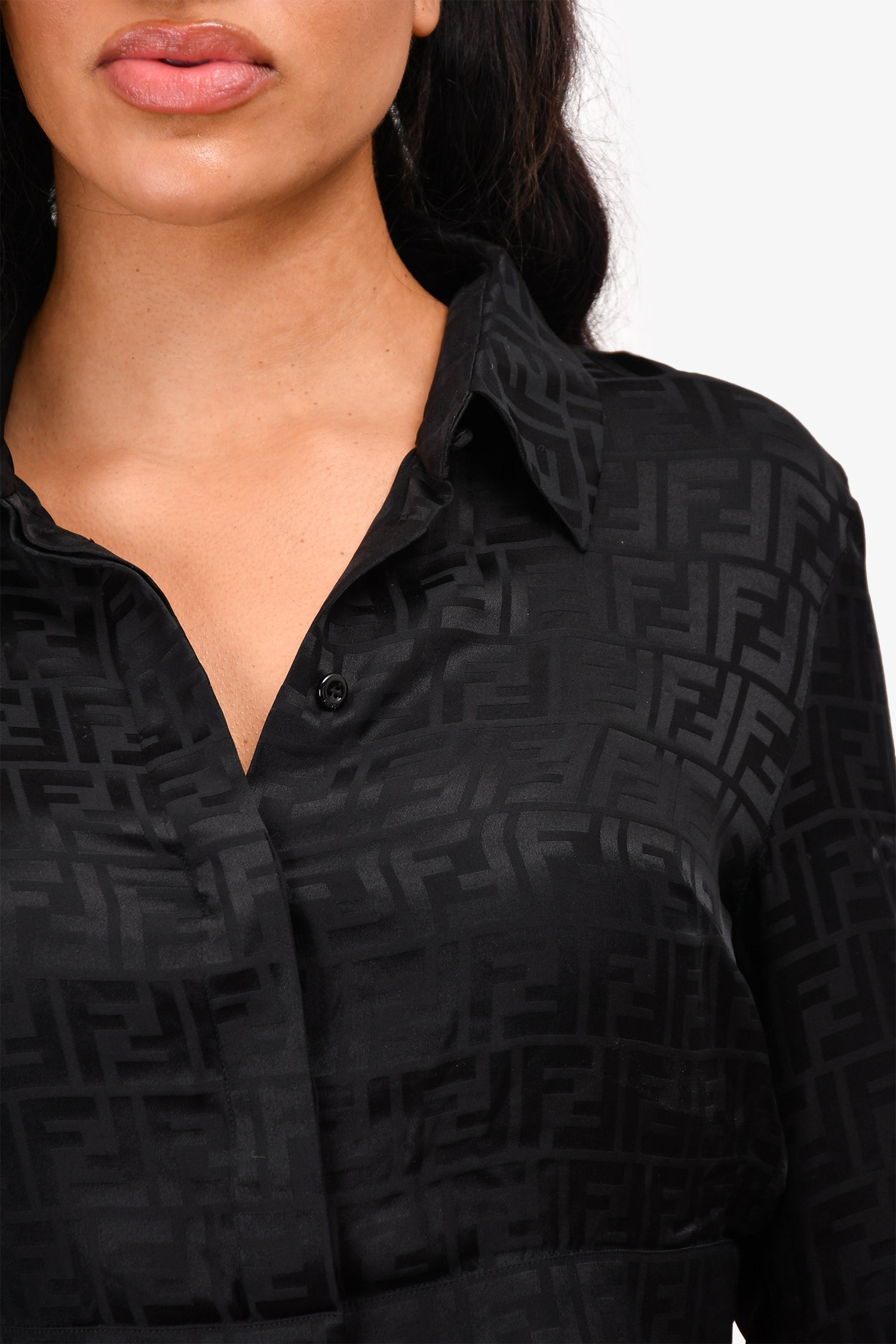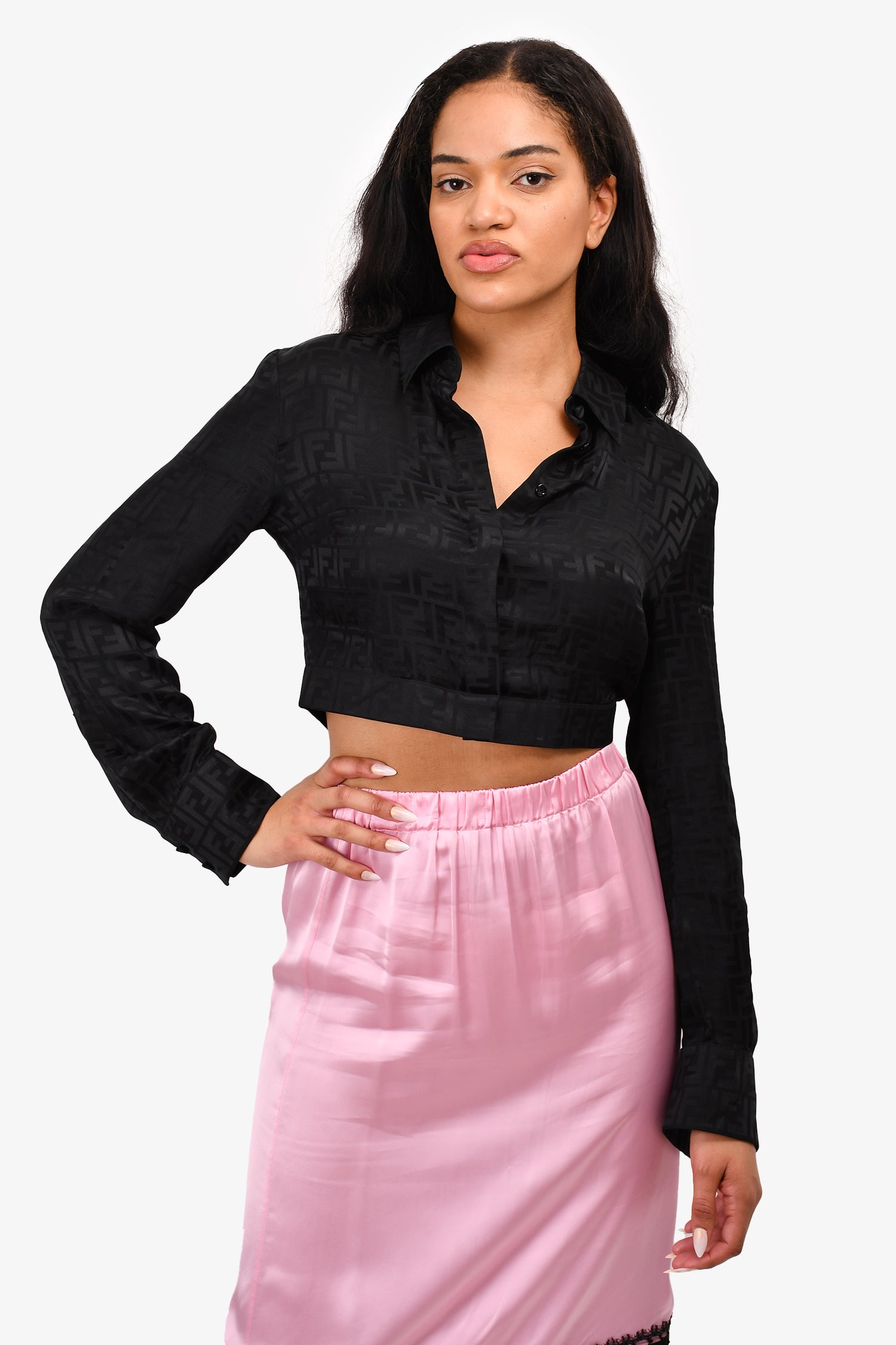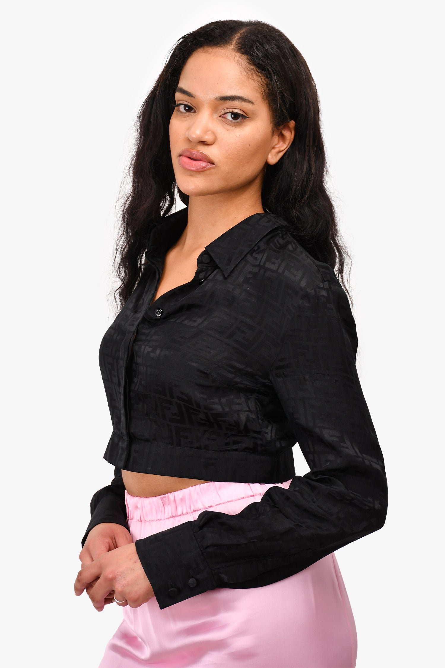 Refresh availabilityFendi Black Silk FF Cropped Button Down Shirt. Button closure on the cuffs.