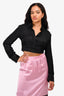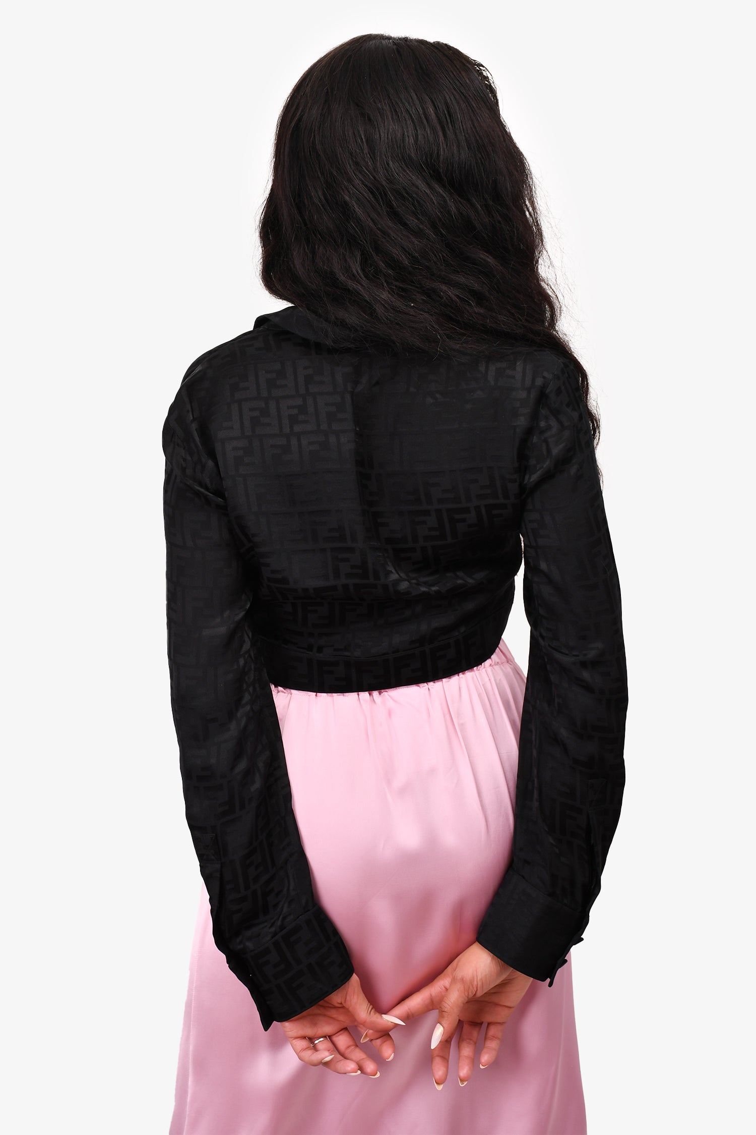 Fendi Black Silk FF Cropped Button Down Shirt Size 42
