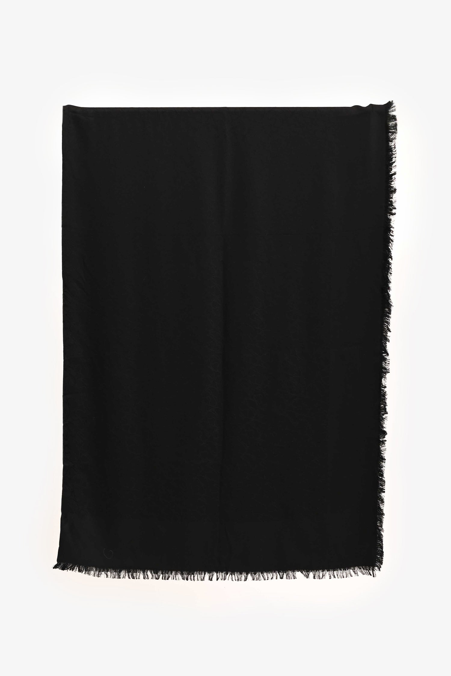 Refresh availabilityFendi Black Silk/Wool/Fox Fur “Karl Lovers” Scarf. Fringe detail. Tonal stitching.