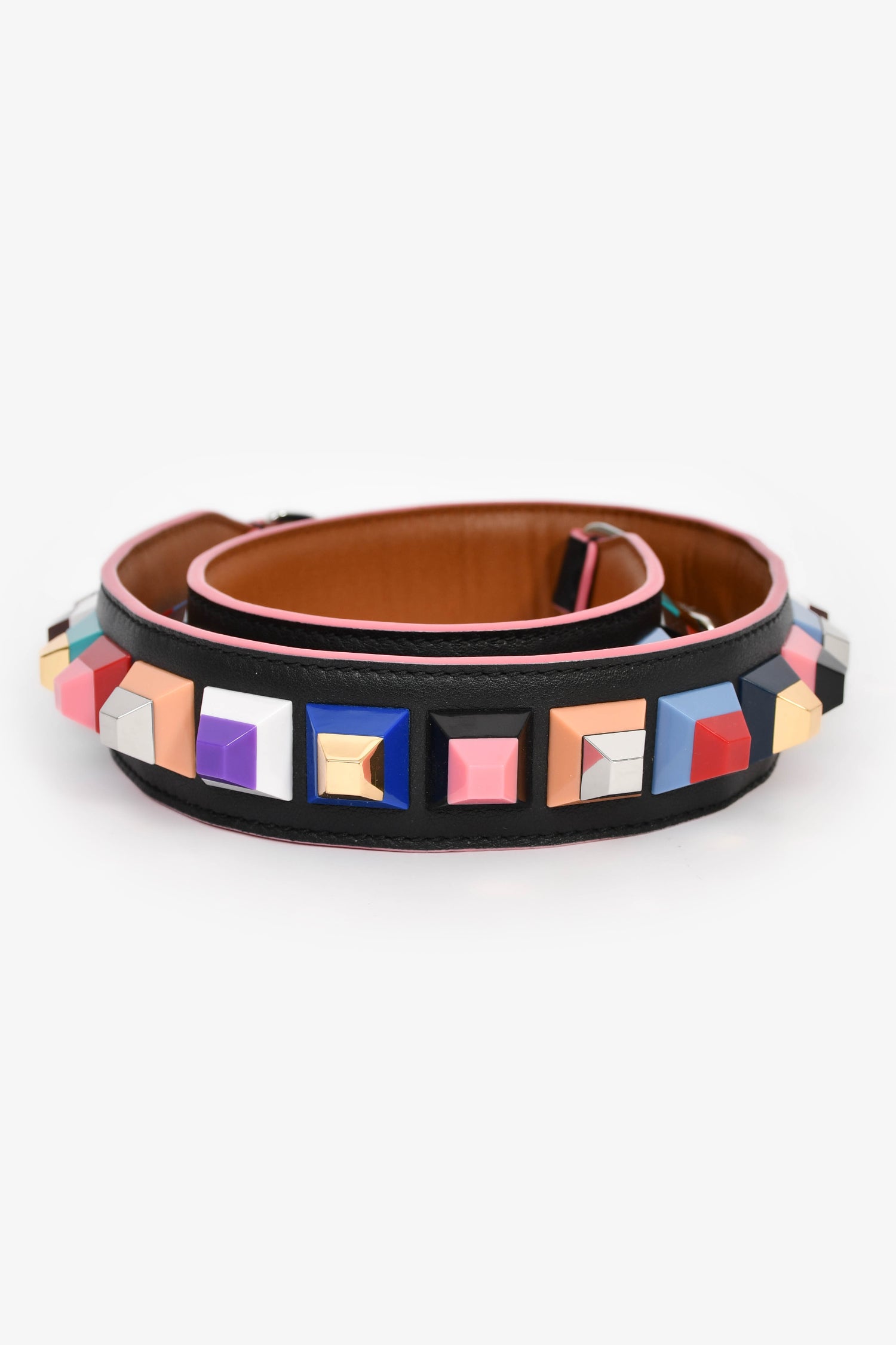 Refresh availabilityFendi Black/Multicolour Leather Studded Bag Strap. Clip closures. Silver-tone hardware. Tonal stitching.