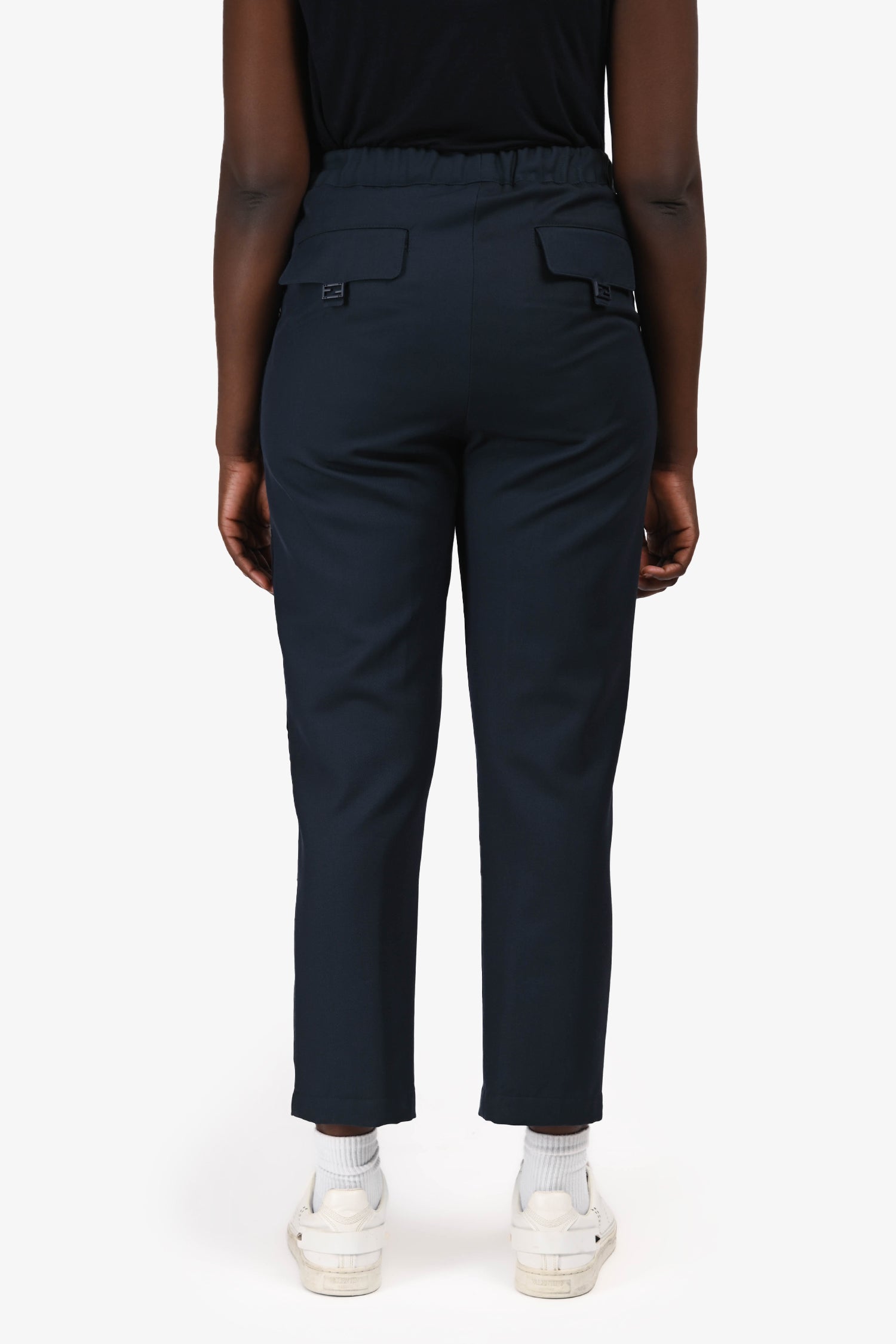 Refresh availabilityFendi Blue Wool Blend Baguette Trousers. Pull-on. Hidden zip closure in the front. Elasticized waistband with adjustable drawstrings. 2 slip pockets on the sides. 2 welt pockets in the back. 2 zip pockets. Tonal hardware. Tonal stitching.