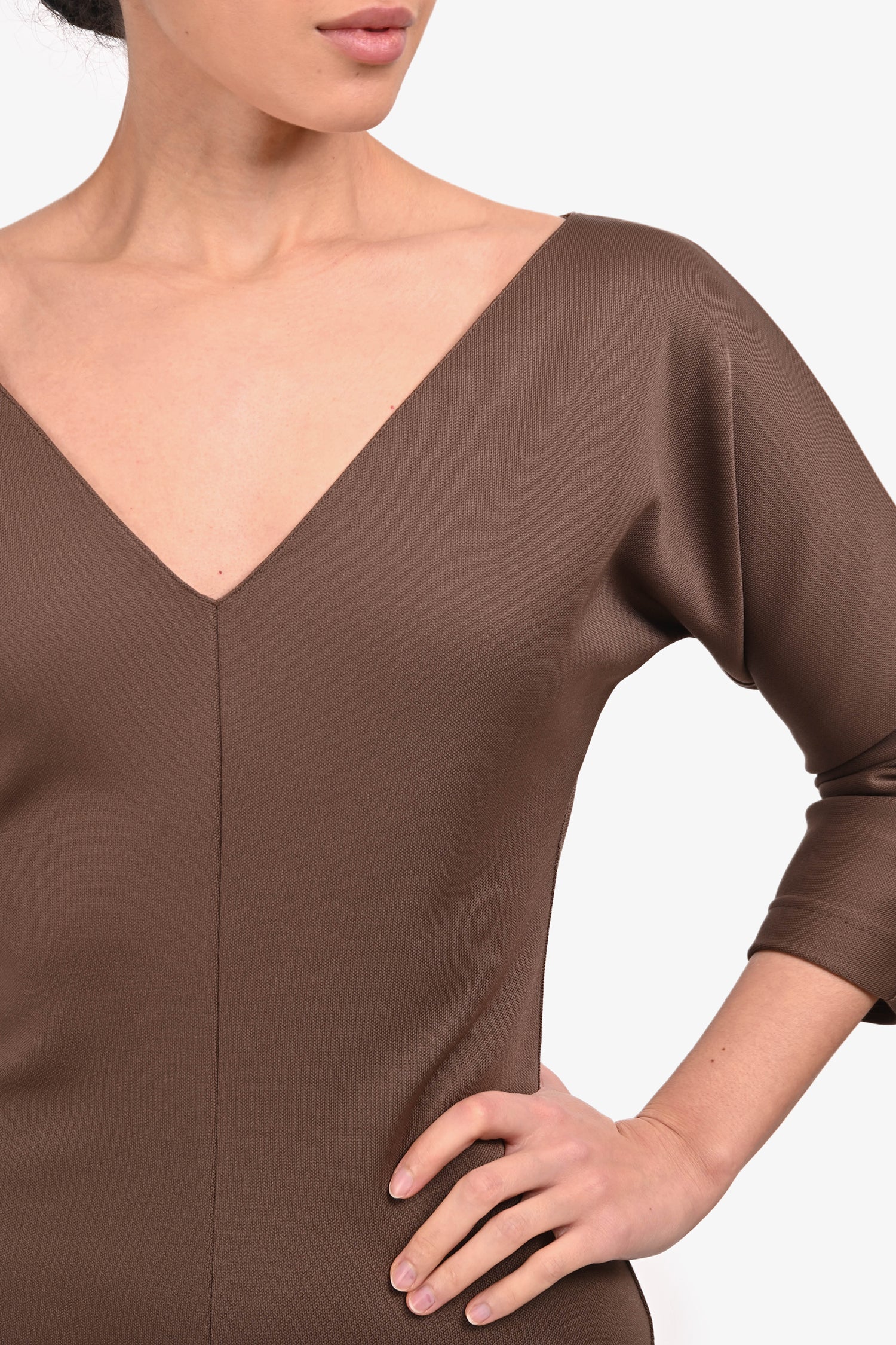 Fendi Brown 3/4 Sleeve V-Neck Midi Dress Size 40