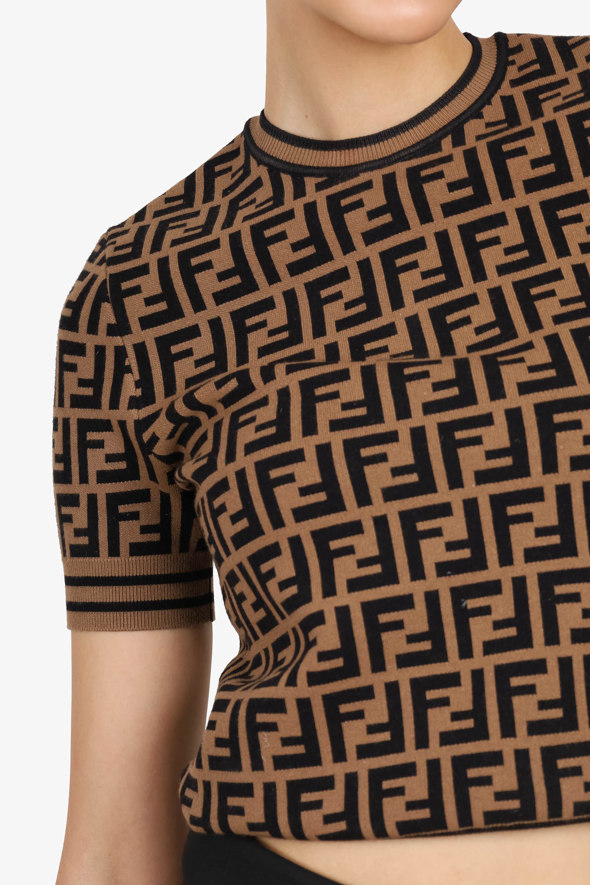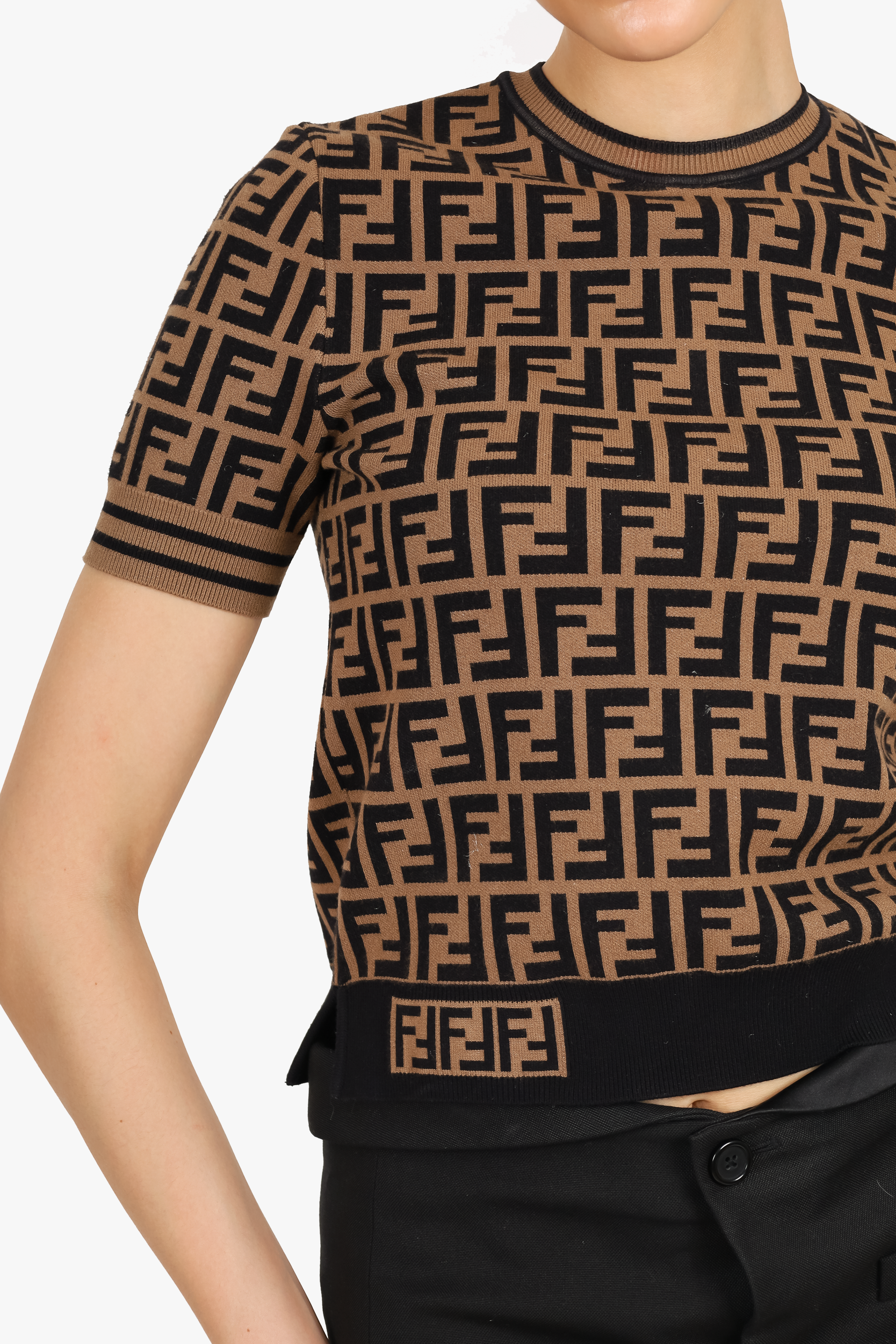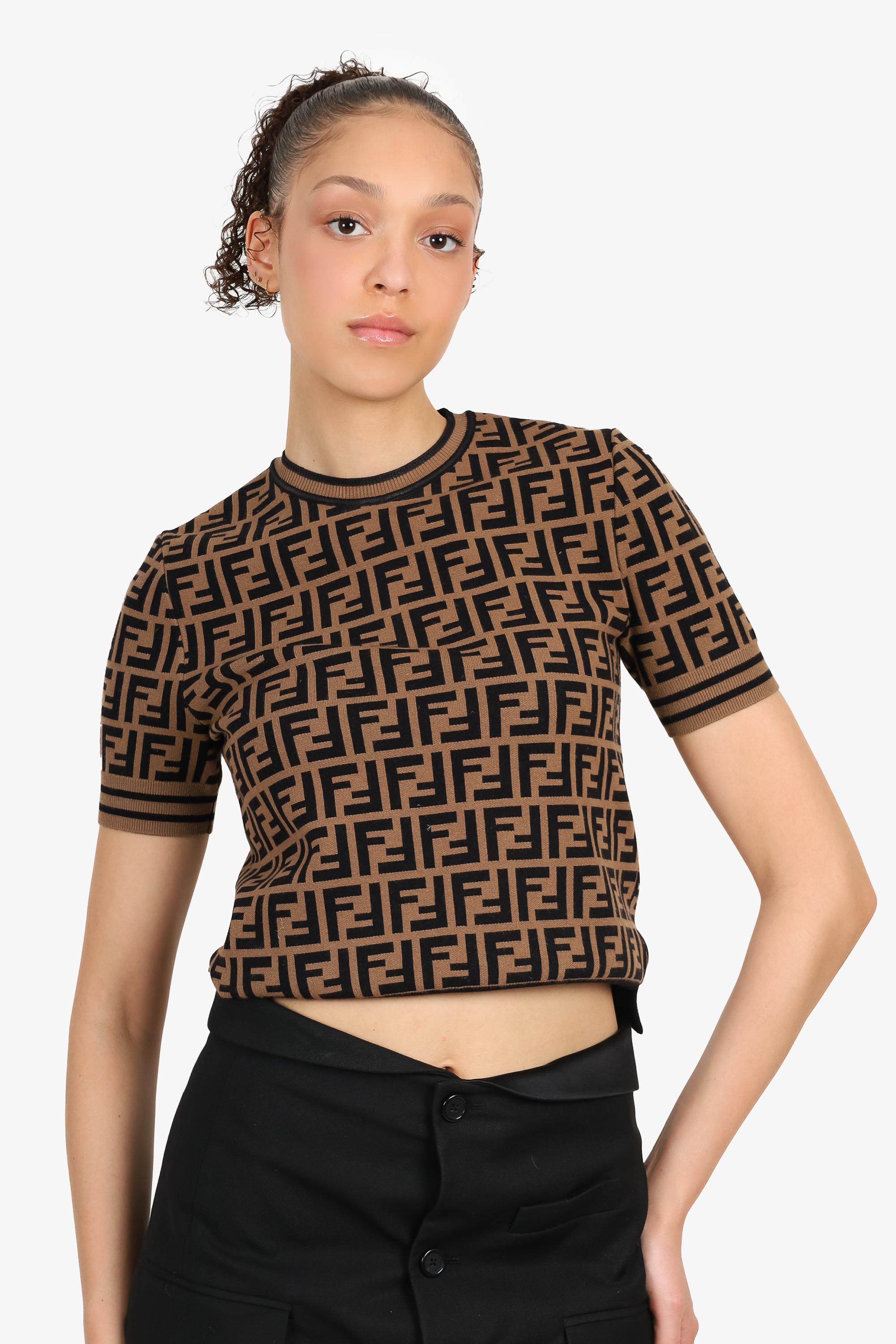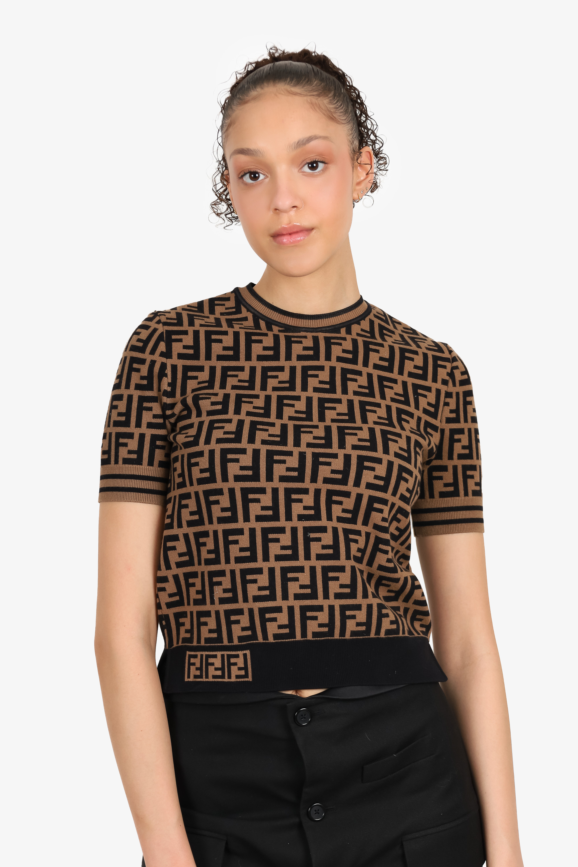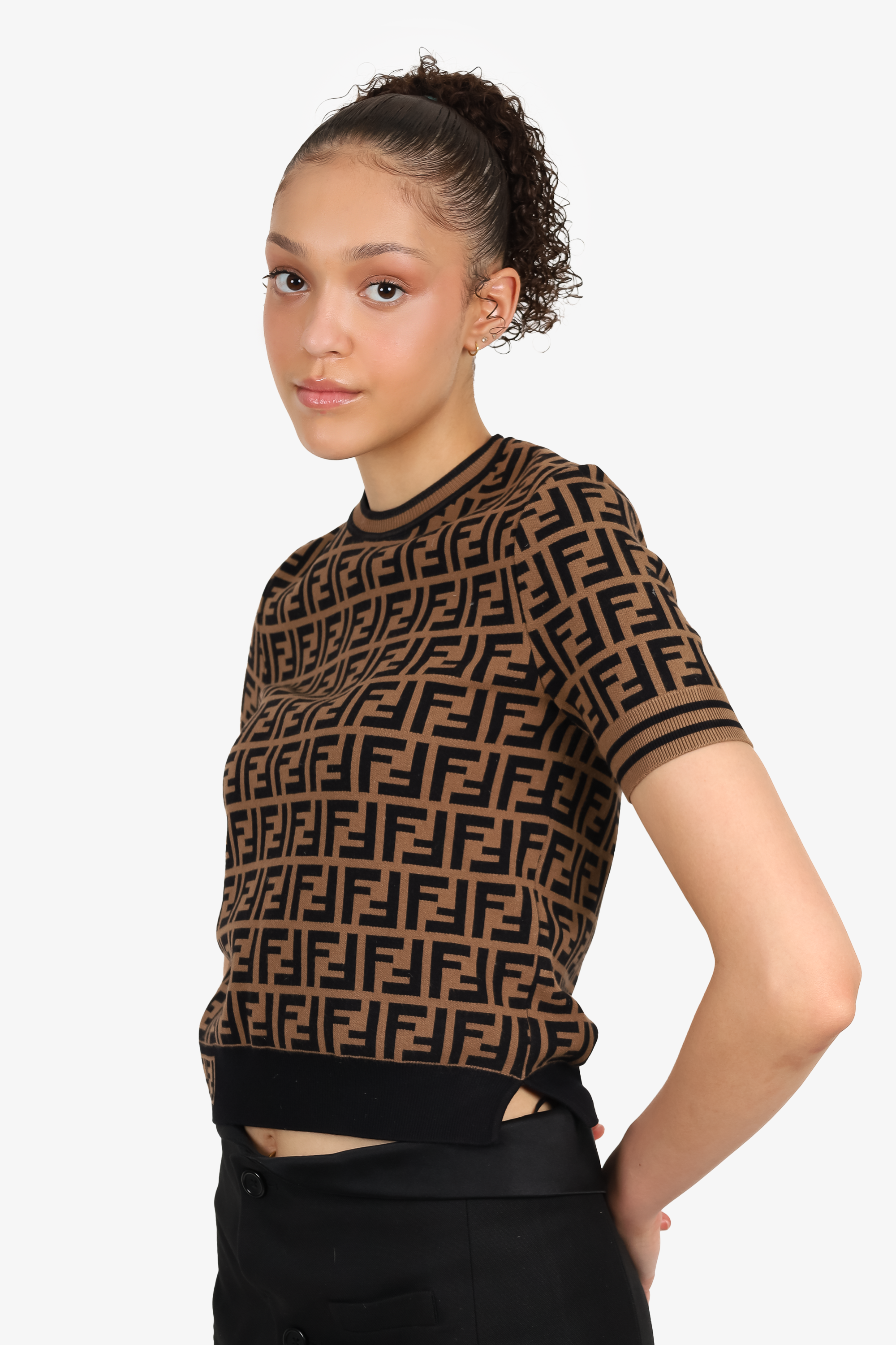 Fendi Brown/Black Short-Sleeve Zucca Sweater Size 38
