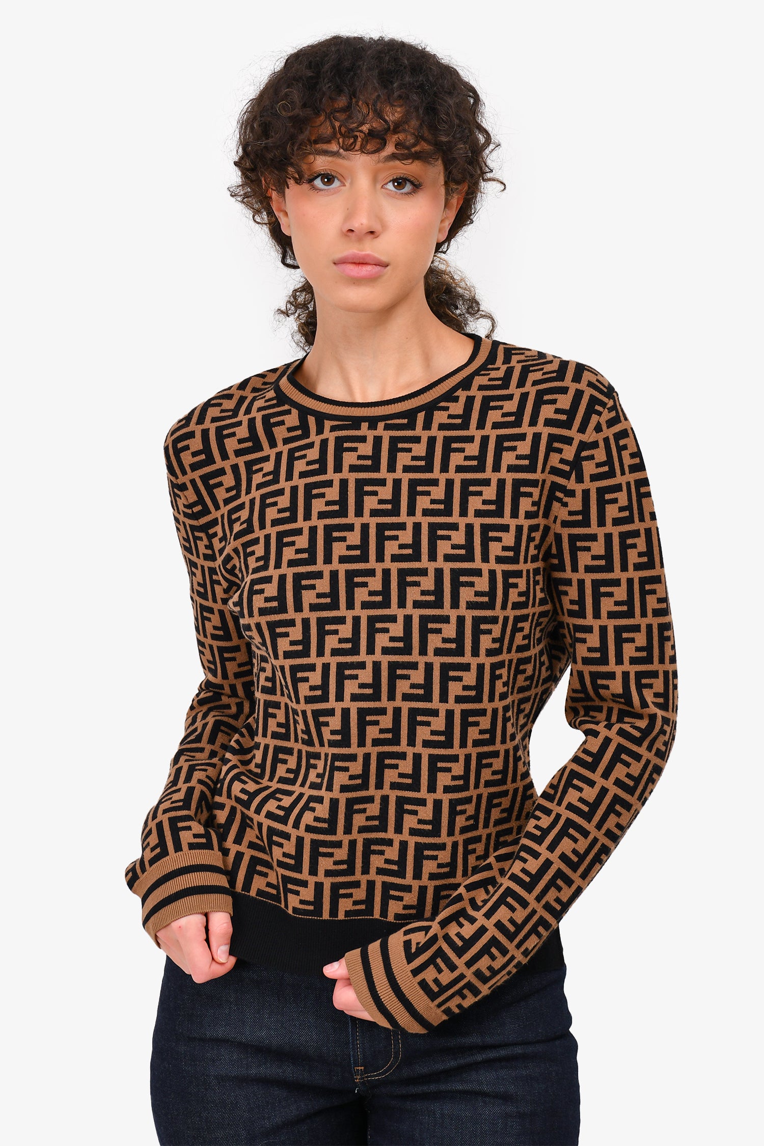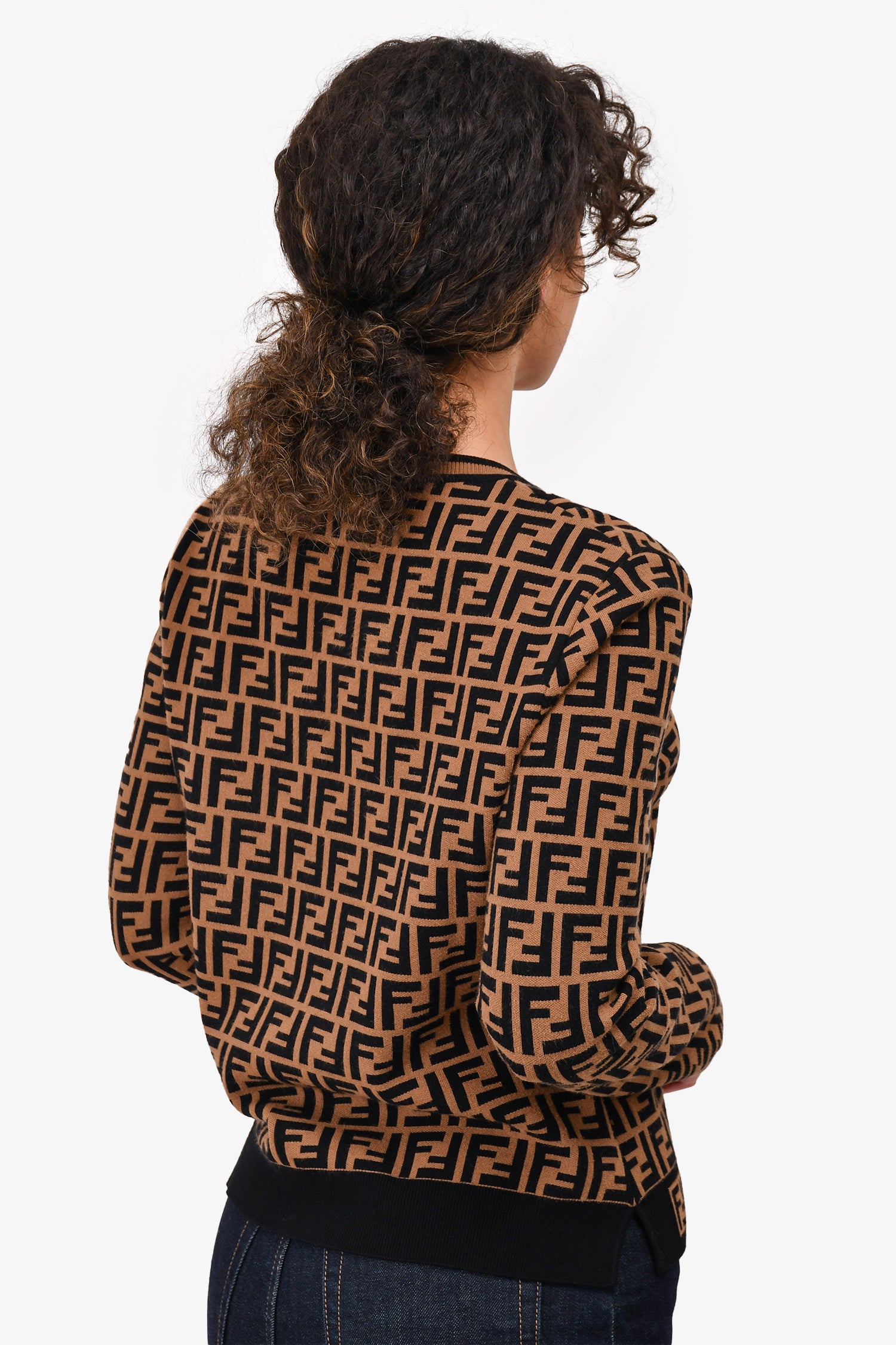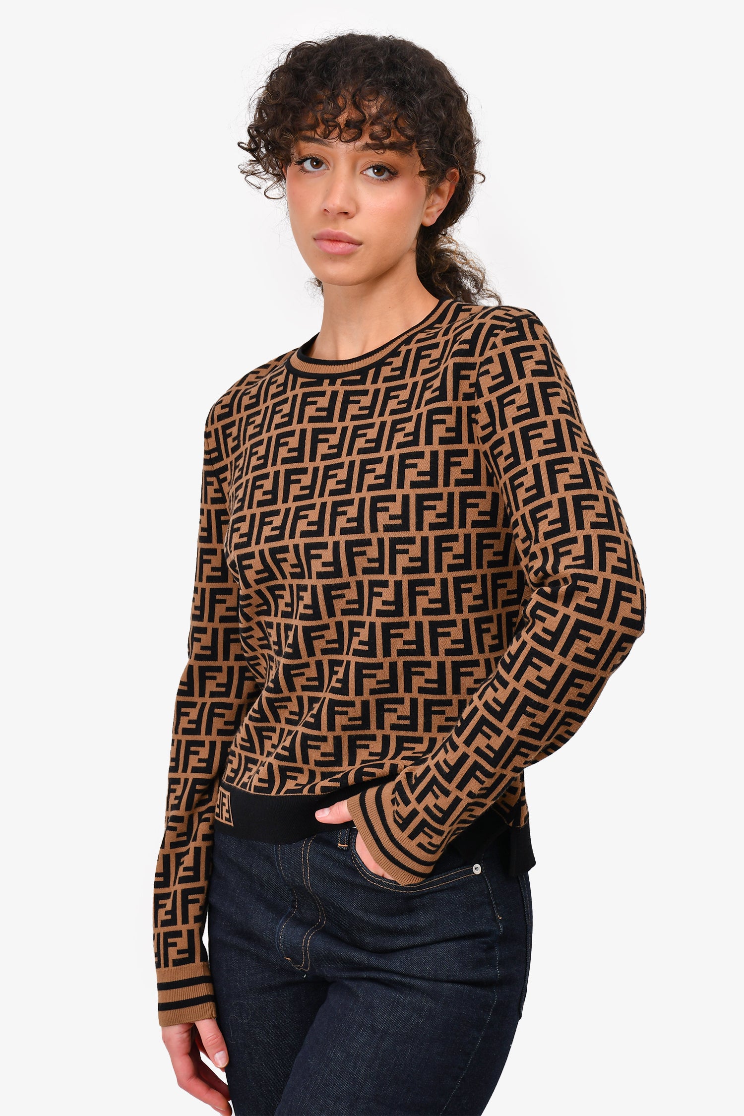 Refresh availabilityFendi Brown/Black Zucca Print Sweater. Round neck. Pull-on. Ribbed neck, cuffs and hem.
