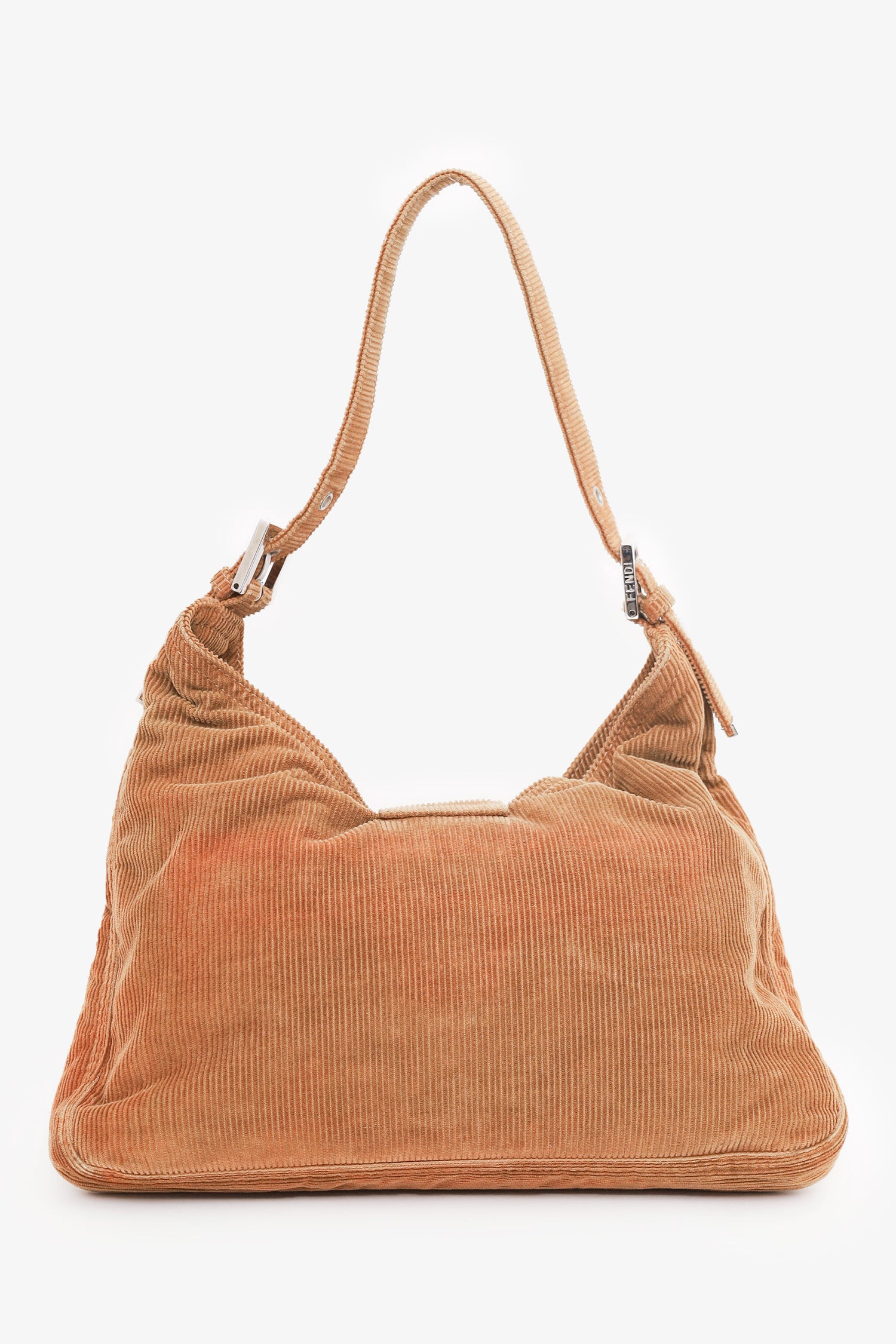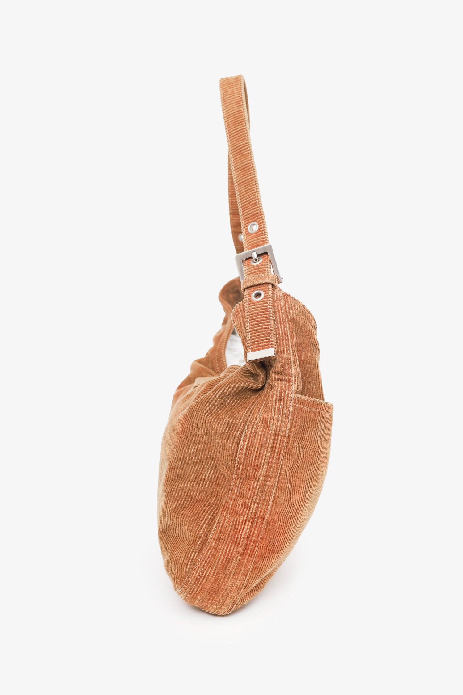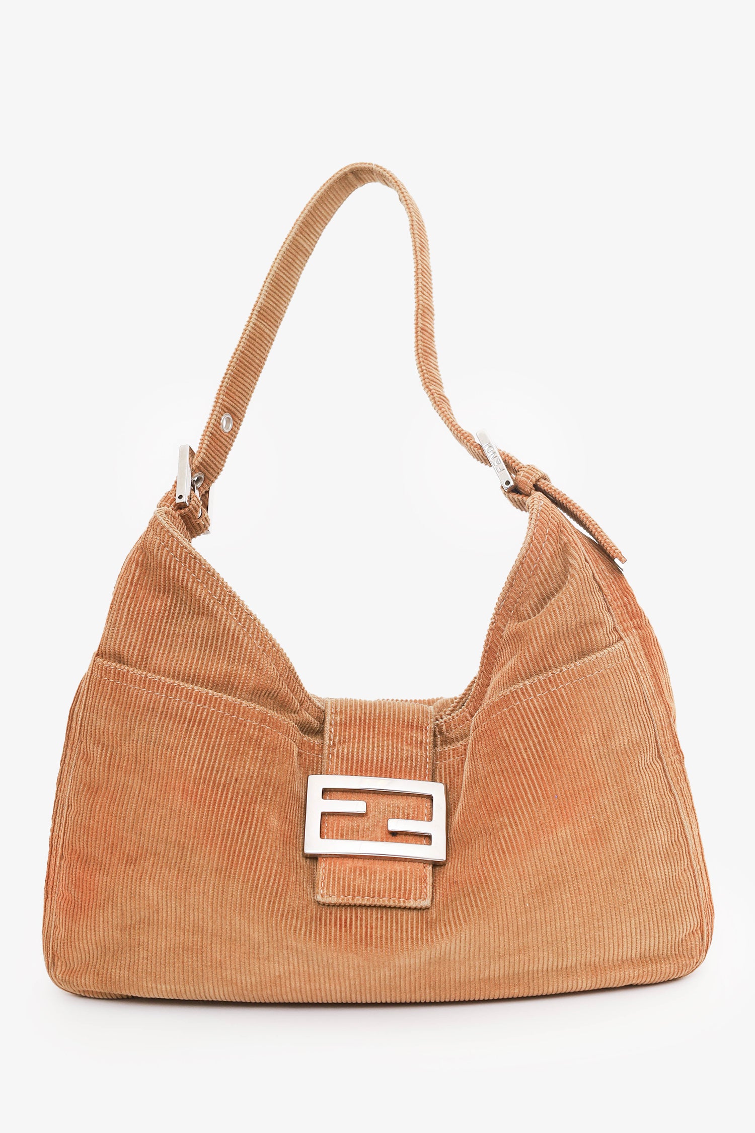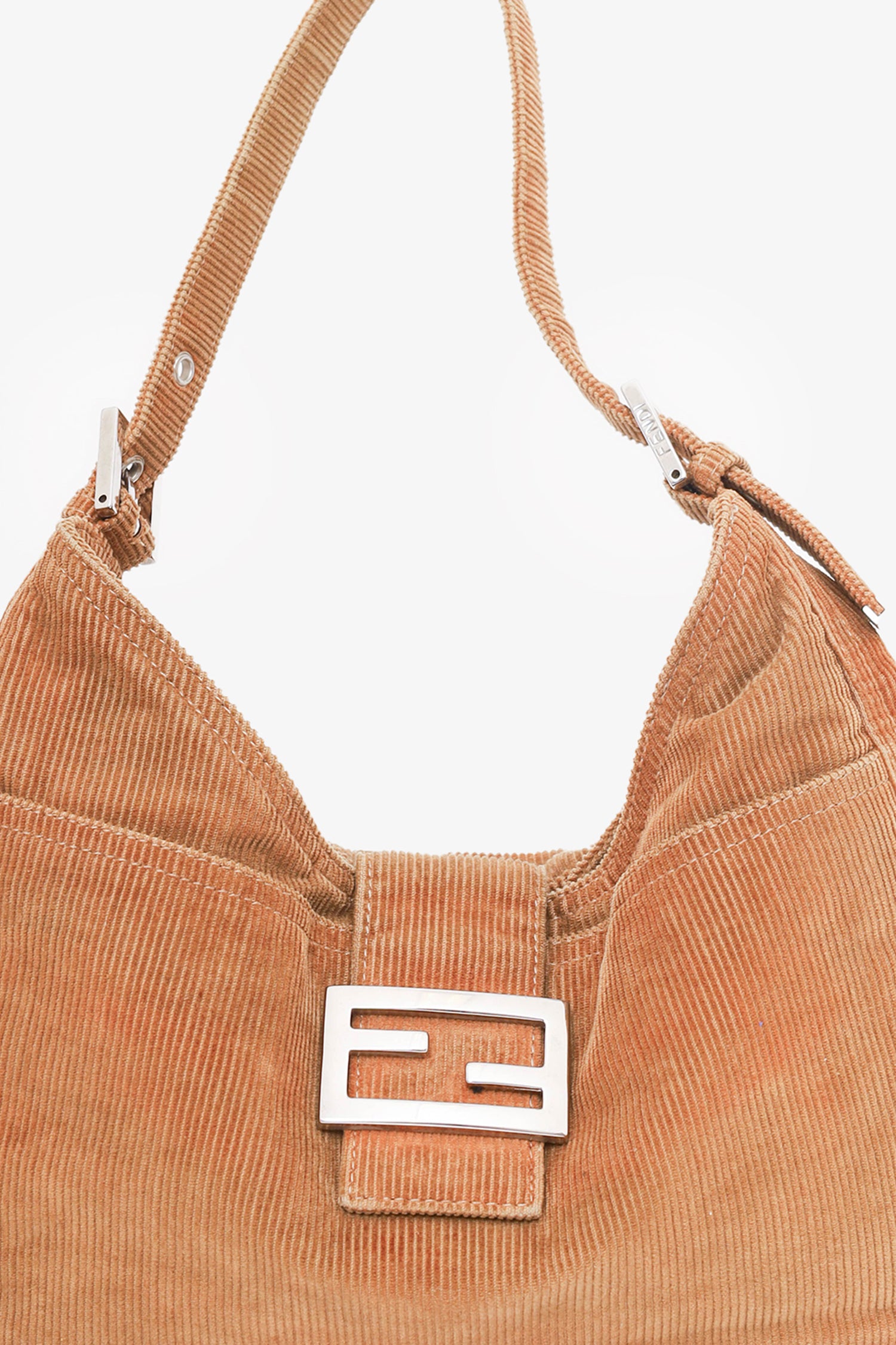 Refresh availabilityFendi Brown Corduroy Mamma Baguette Bag. Front fold-over strap with magnetic closure. Adjustable shoulder strap. 2 interior compartments with single zip closure pocket in larger compartment. Silver-tone hardware. Tonal stitching.