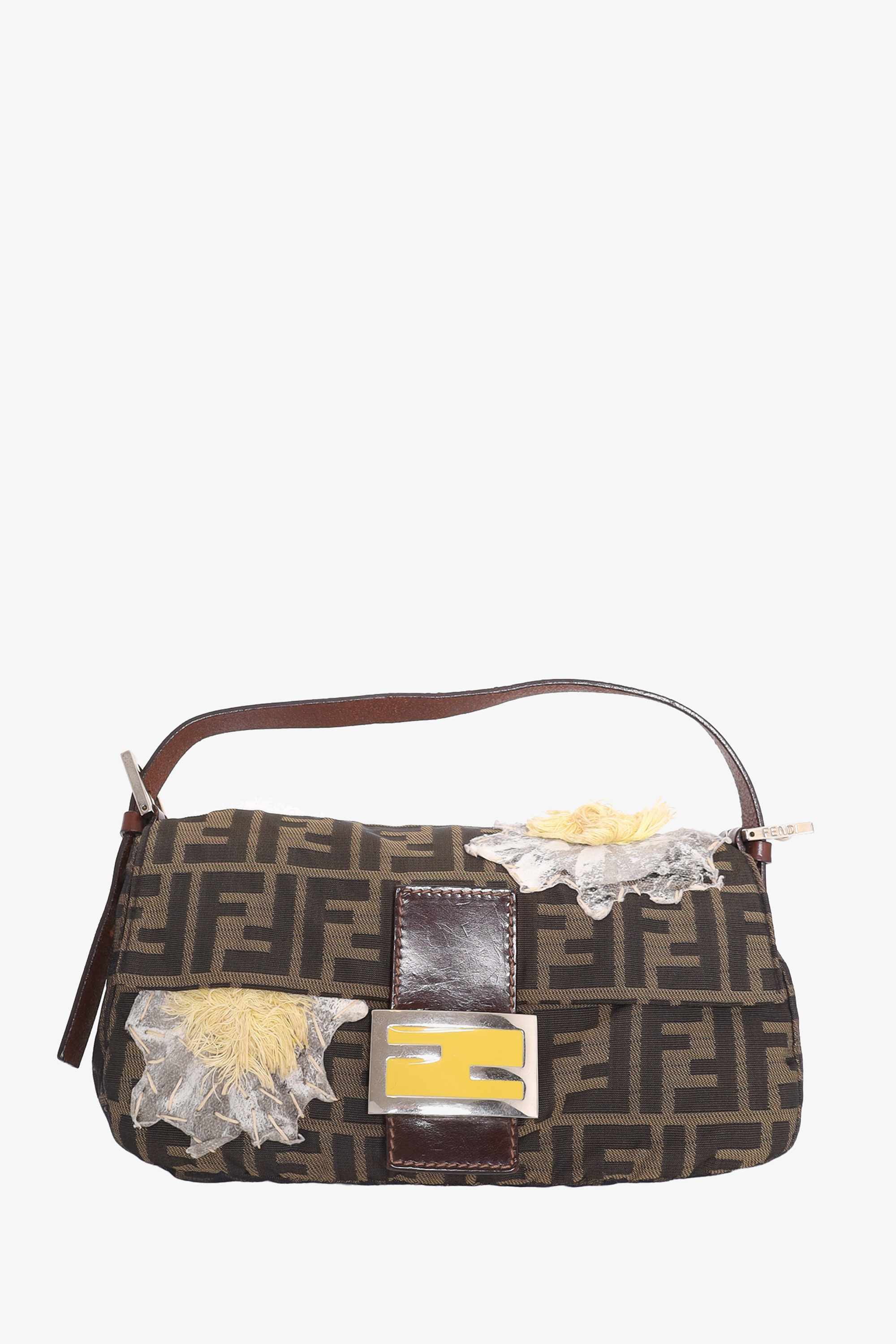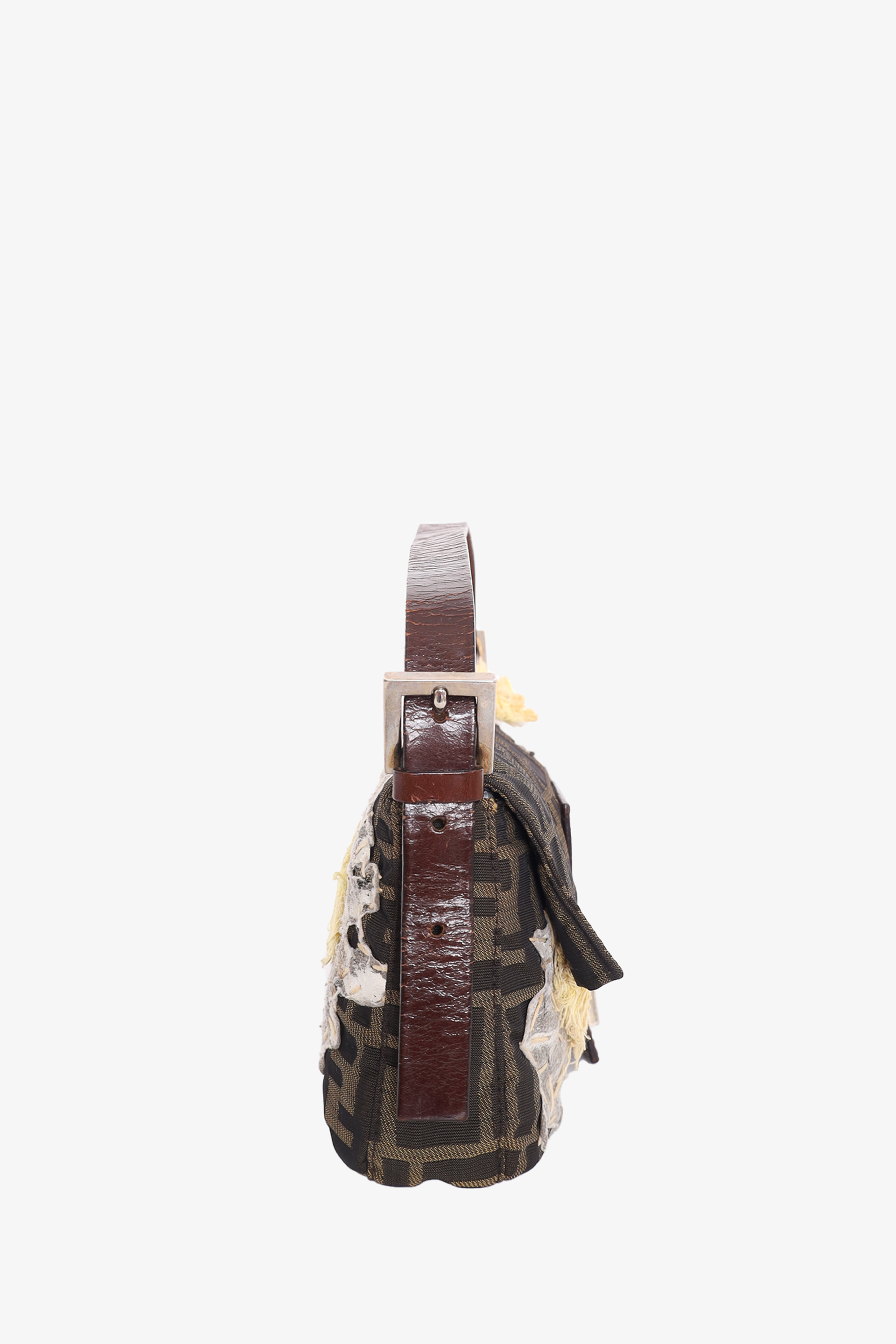 Fendi Brown Embroidered Zucca Baguette Shoulder Bag