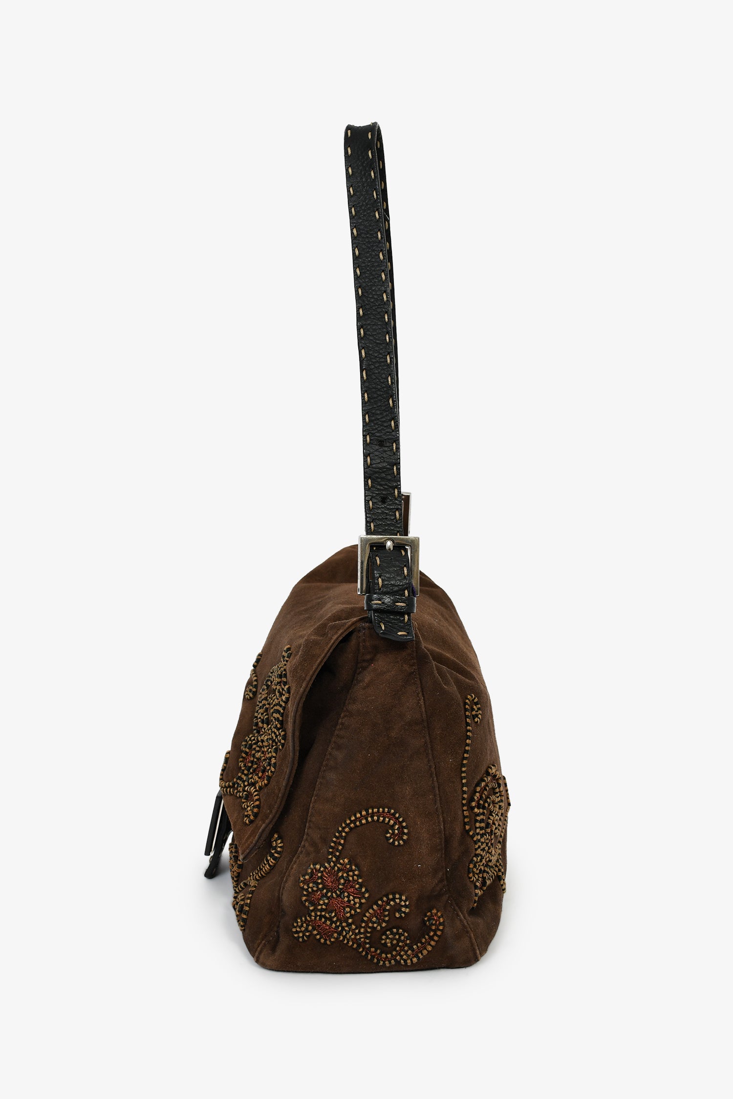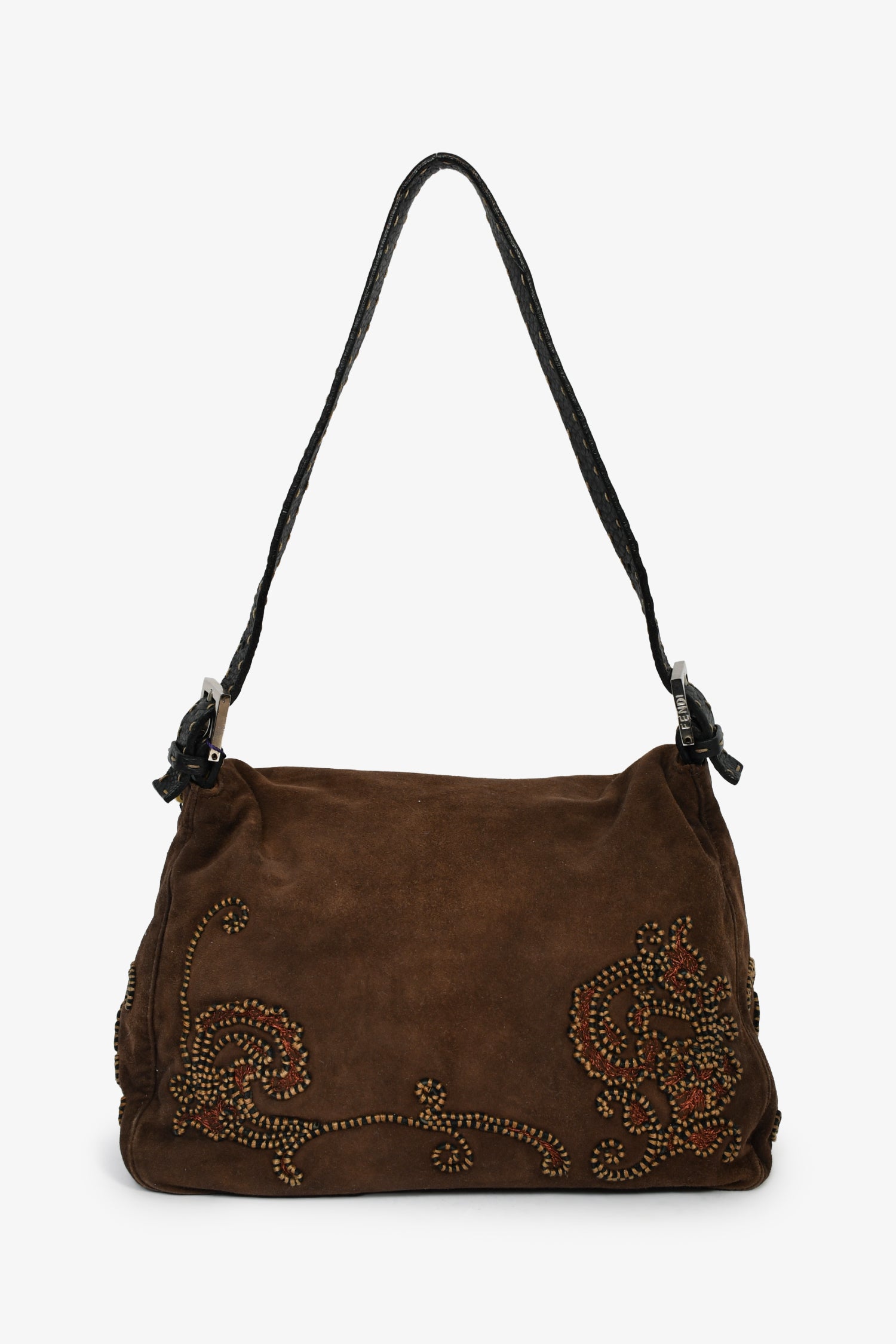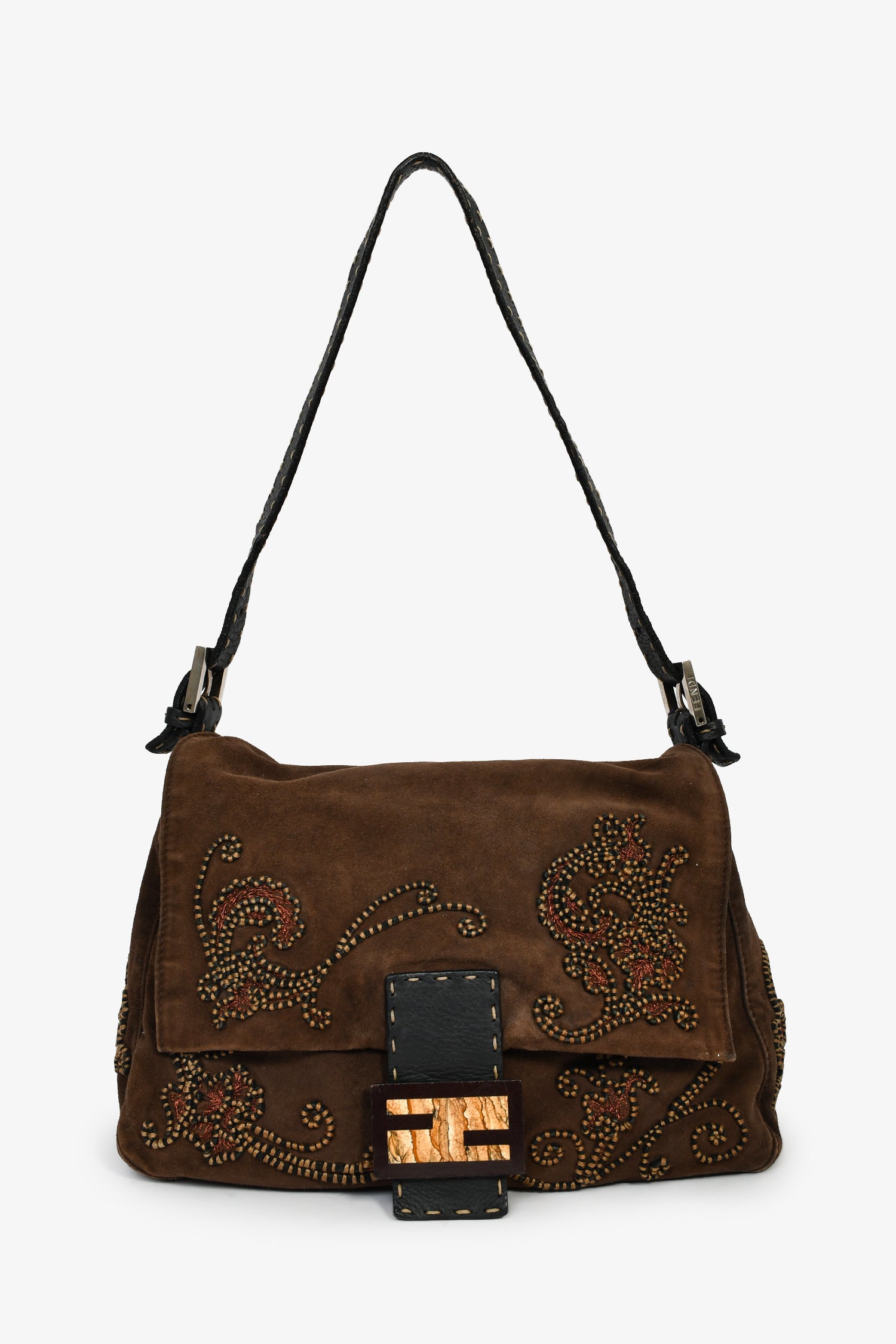 Fendi Brown Suede Selleria Mama Baguette Shoulder Bag