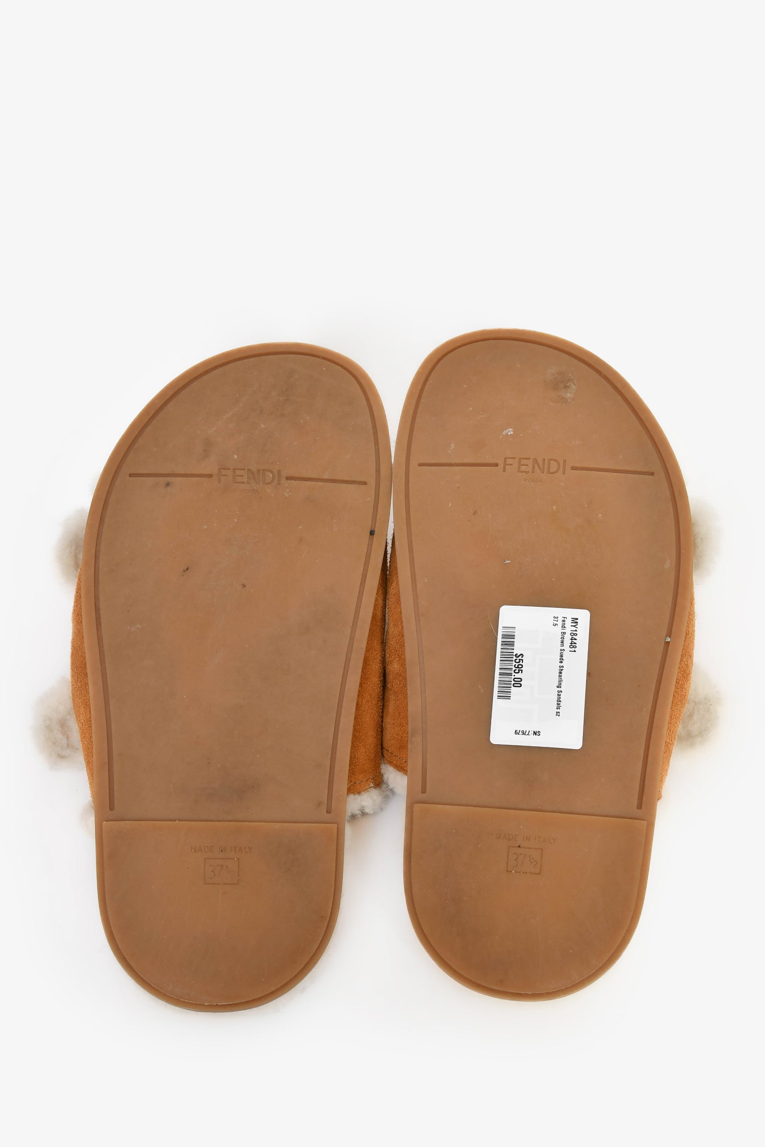 Fendi Brown Suede Shearling Sandals Size 37.5