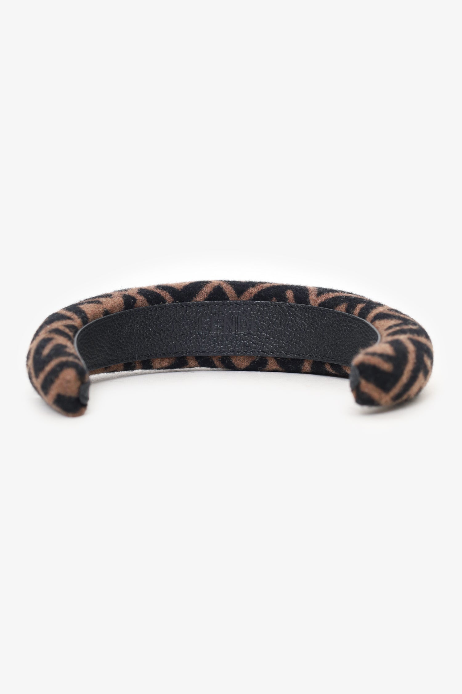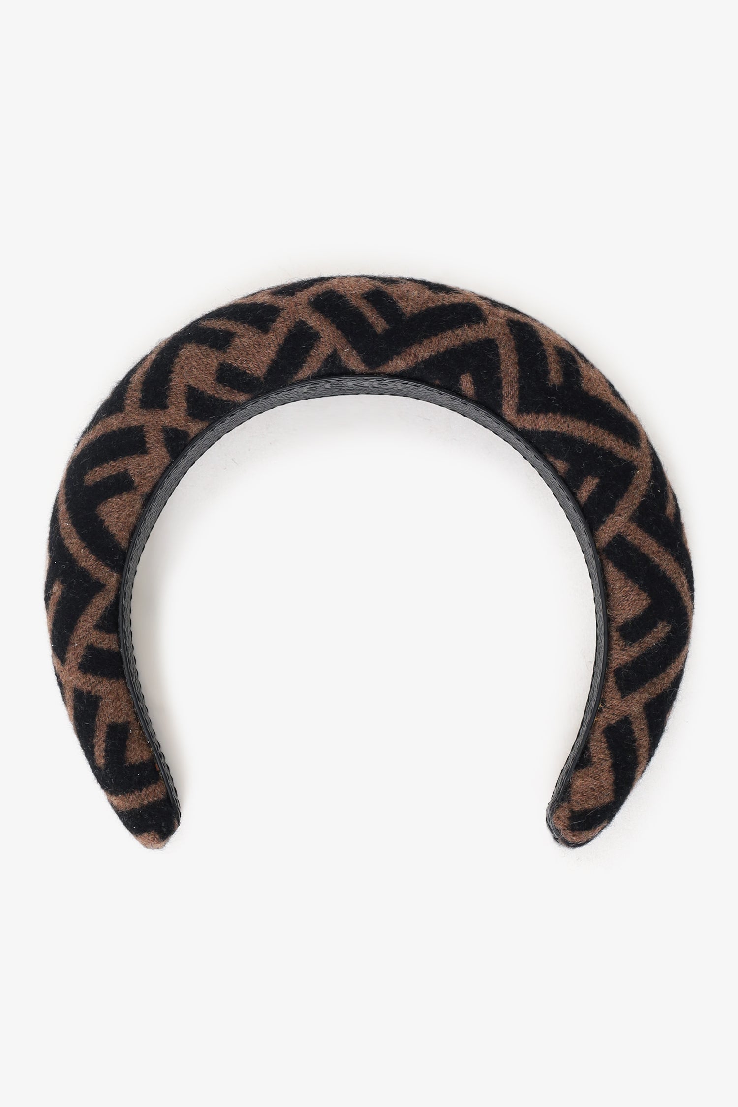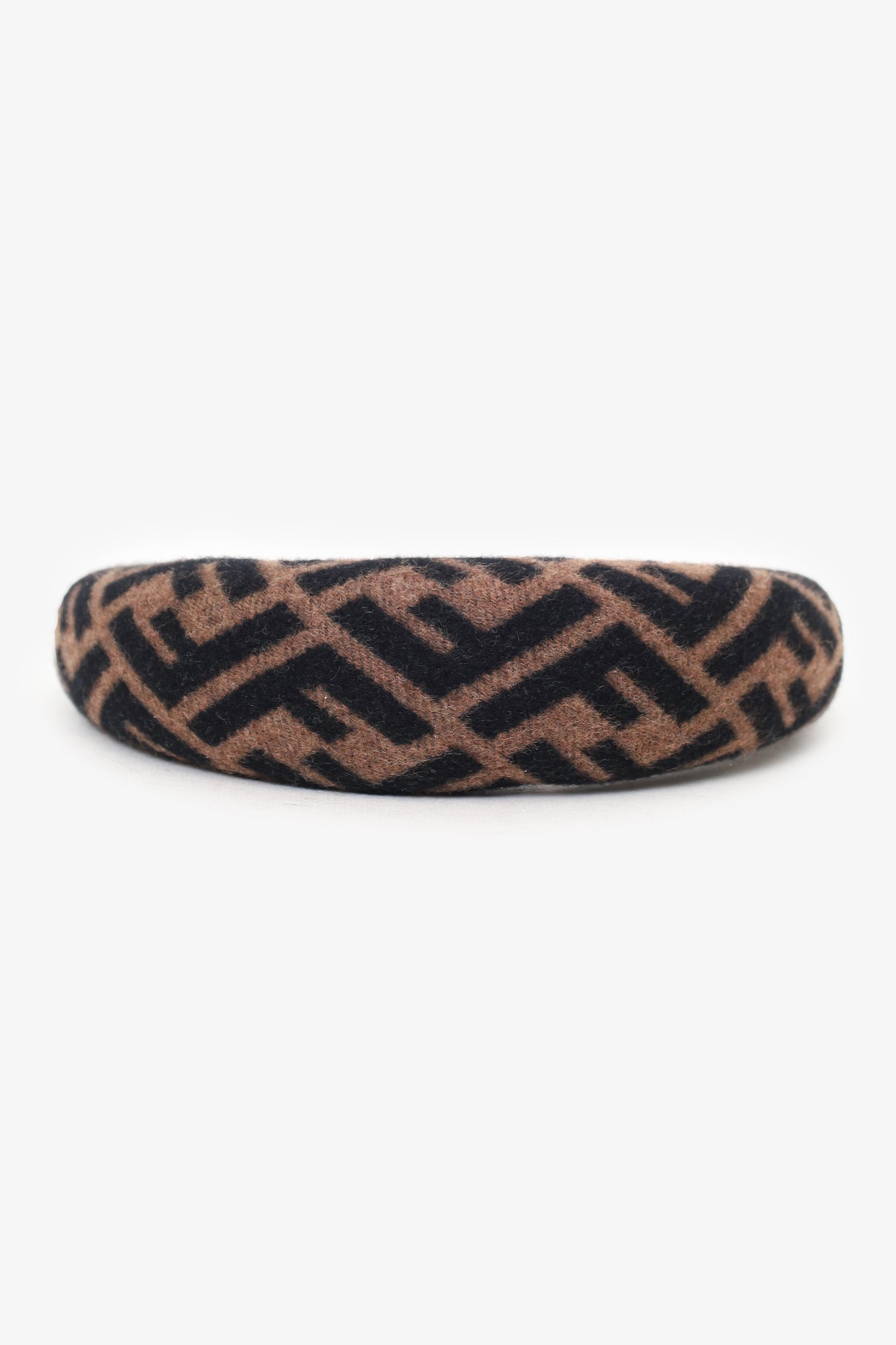 Refresh availabilityFendi Brown Wool FF Zucca Pattern Hairband. Tonal stitching.