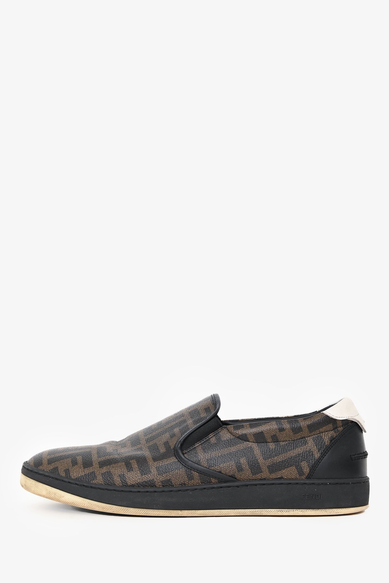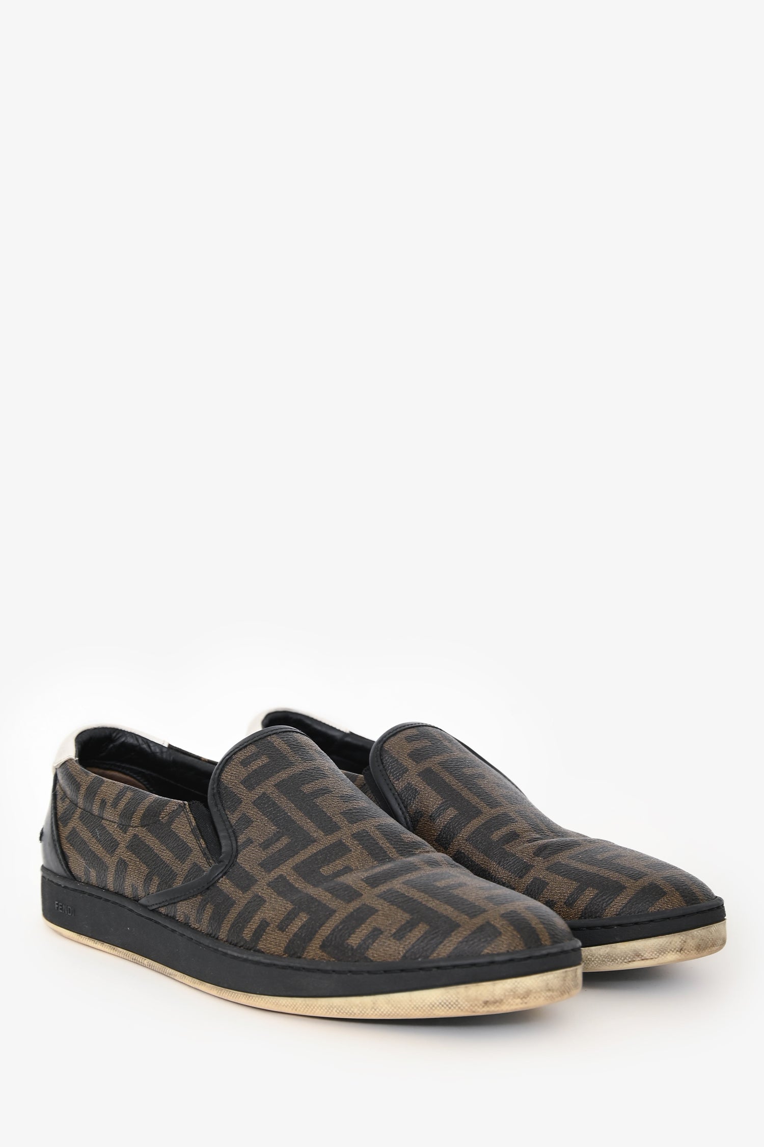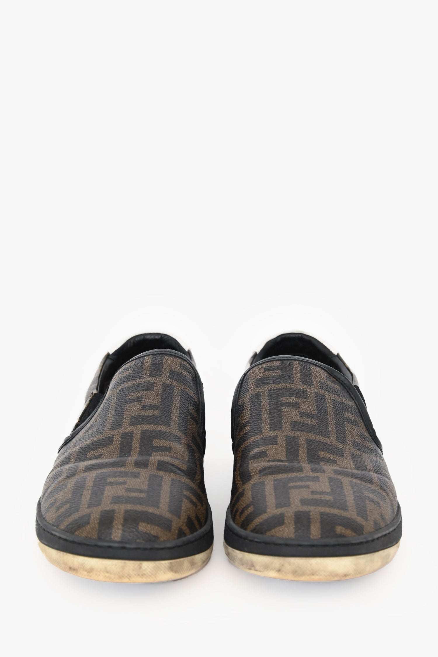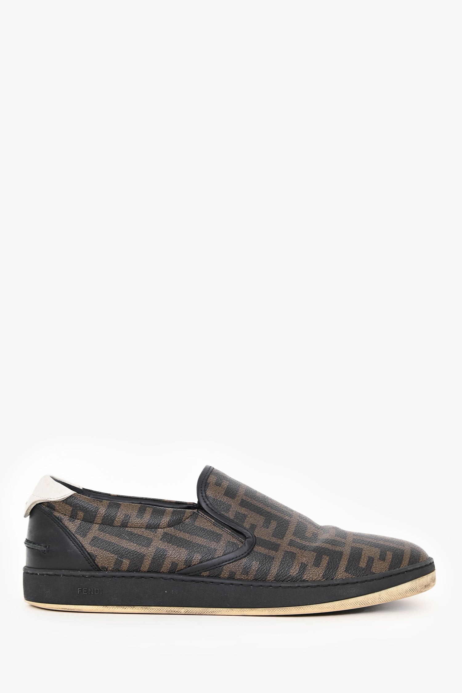 Refresh availabilityFendi Brown Zucca Leather Sneakers. Slip-on. Round toe. Tonal stitching.
