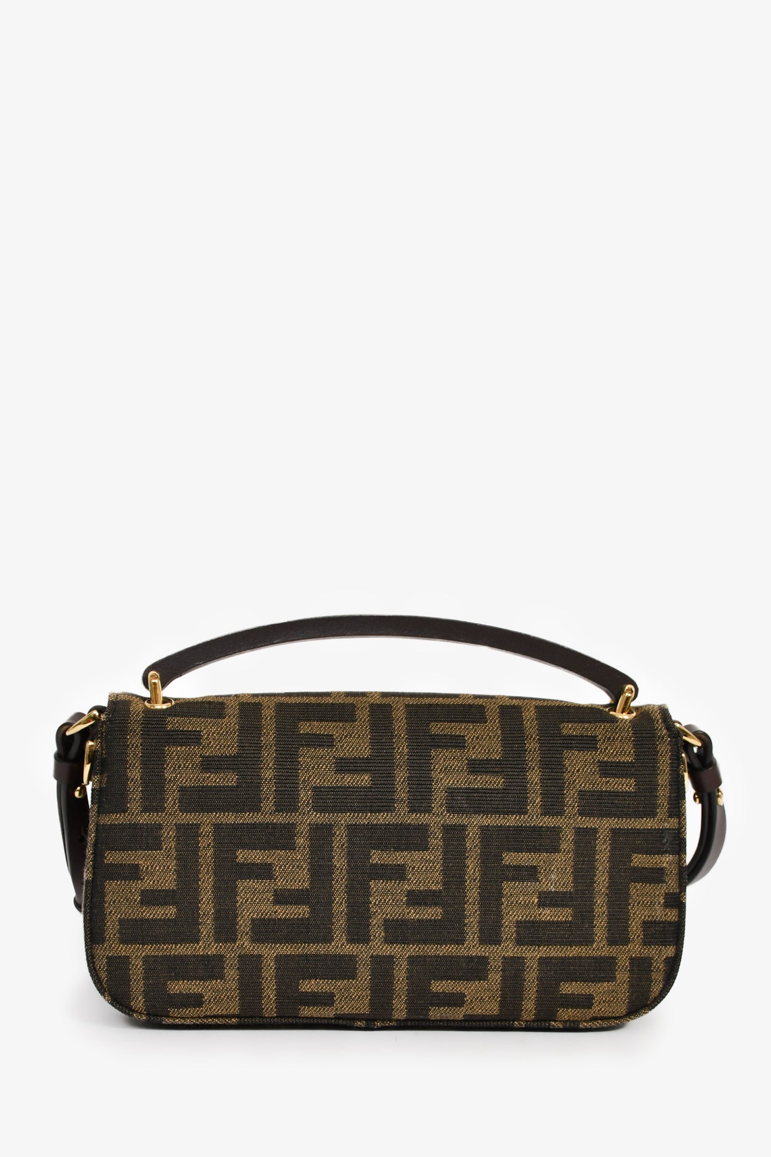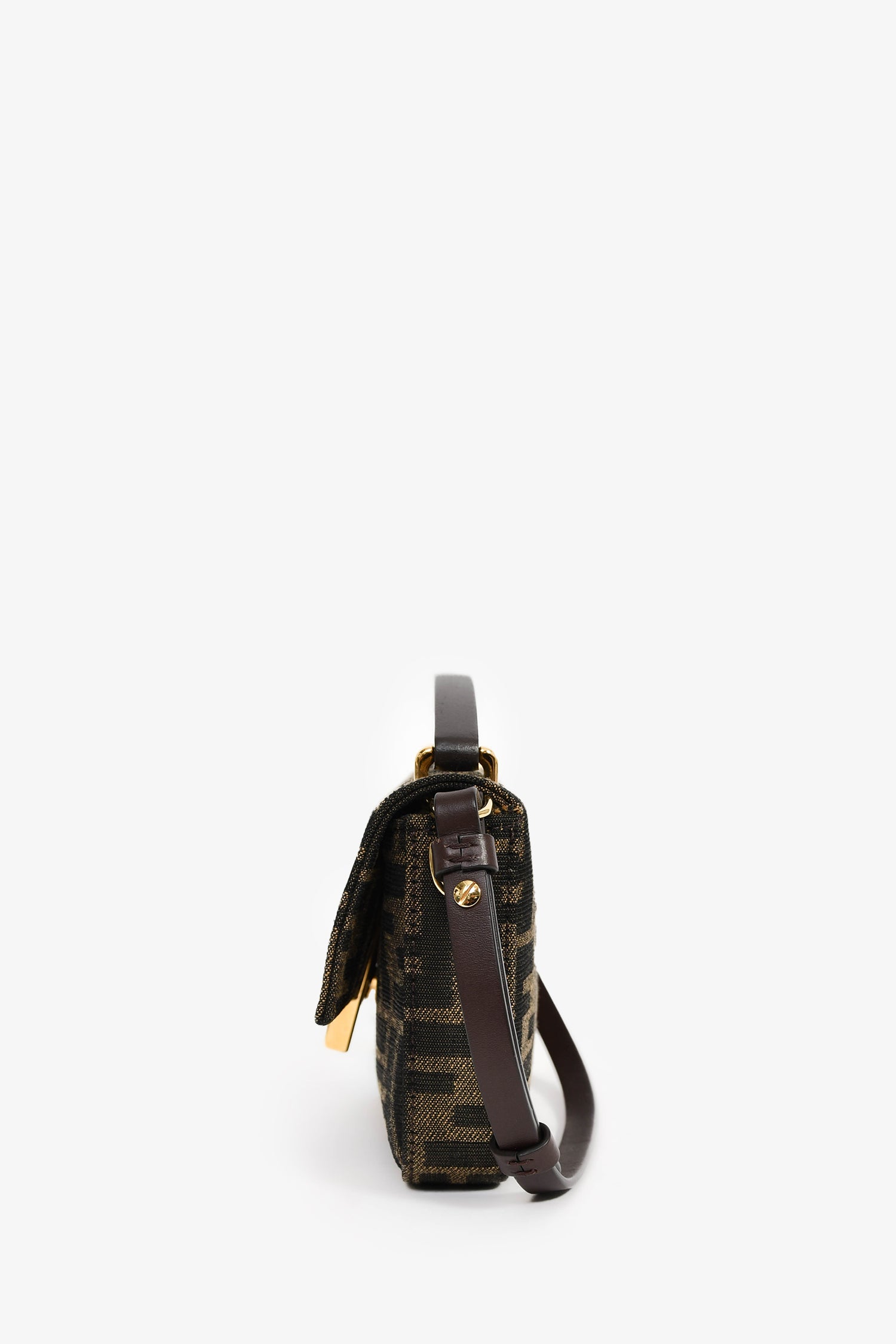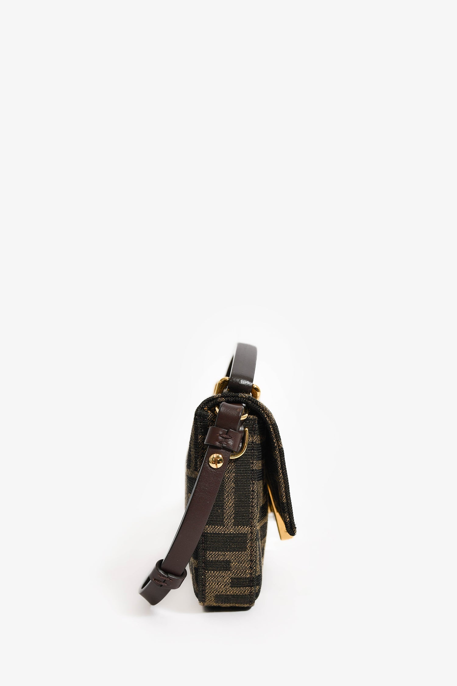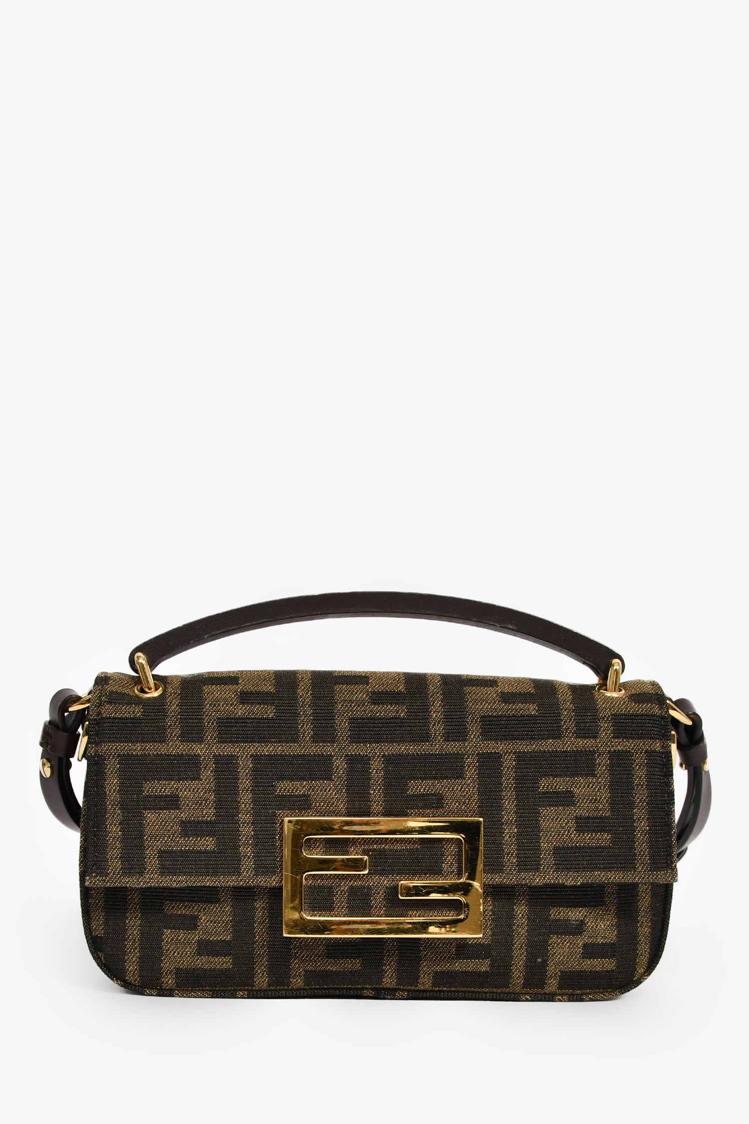 Refresh availabilityFendi Brown Zucca Phone Pouch Crossbody Bag. Top handle. Front fold-over flap with a magnetic closure. Detachable and adjustable crossbody strap. Single interior compartment with a wall slip pocket.