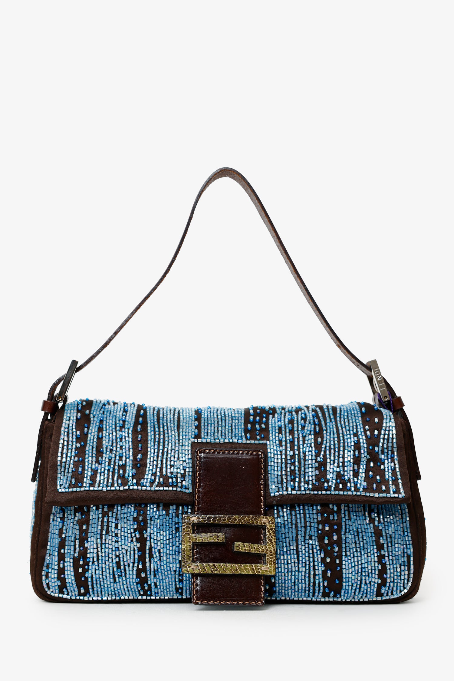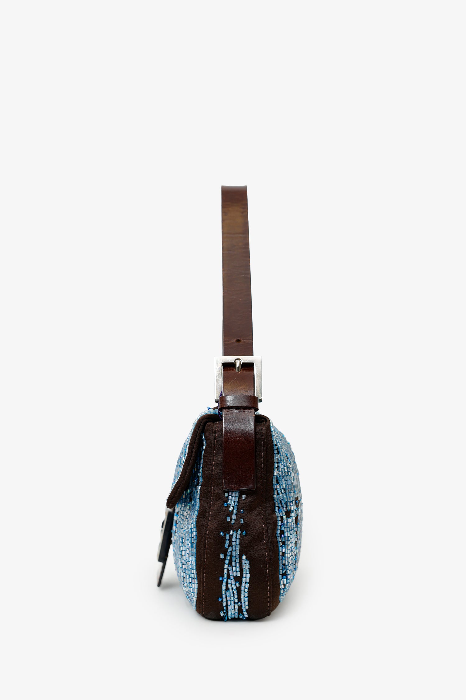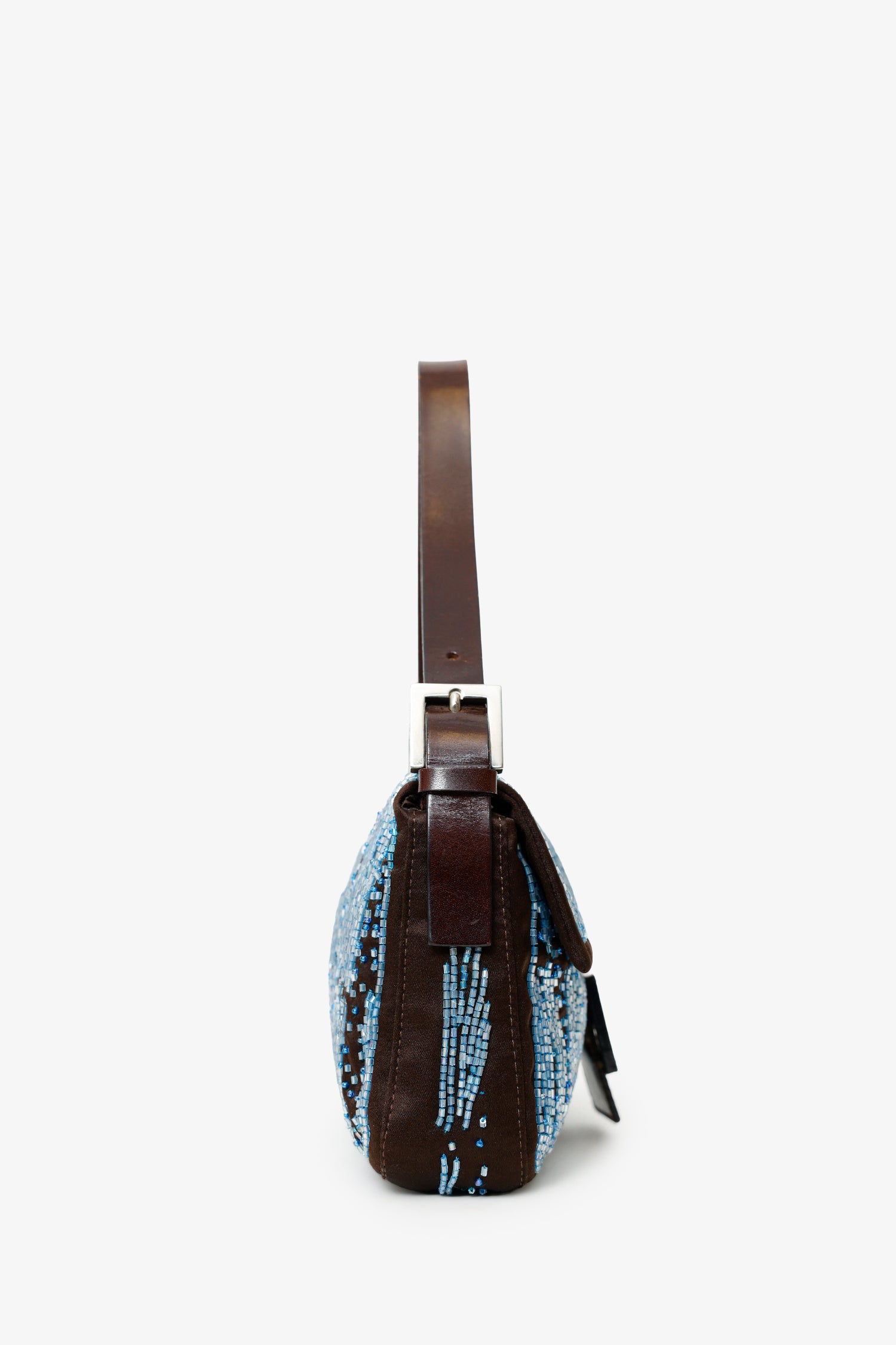 Fendi Brown/Blue Satin Beaded Baguette Shoulder Bag