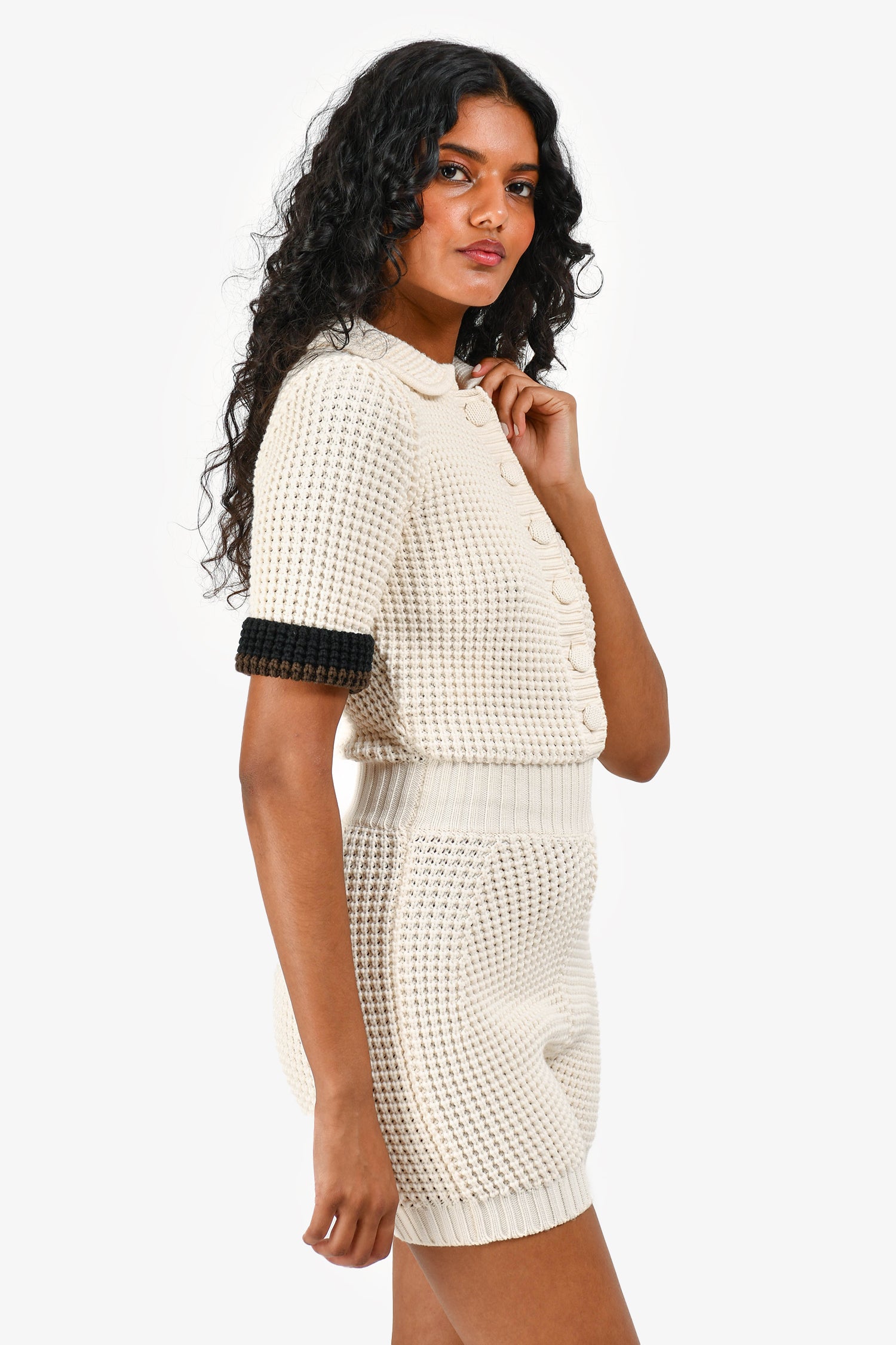 Fendi Cream Cotton Blend Knit Short Sleeve Playsuit Size 38