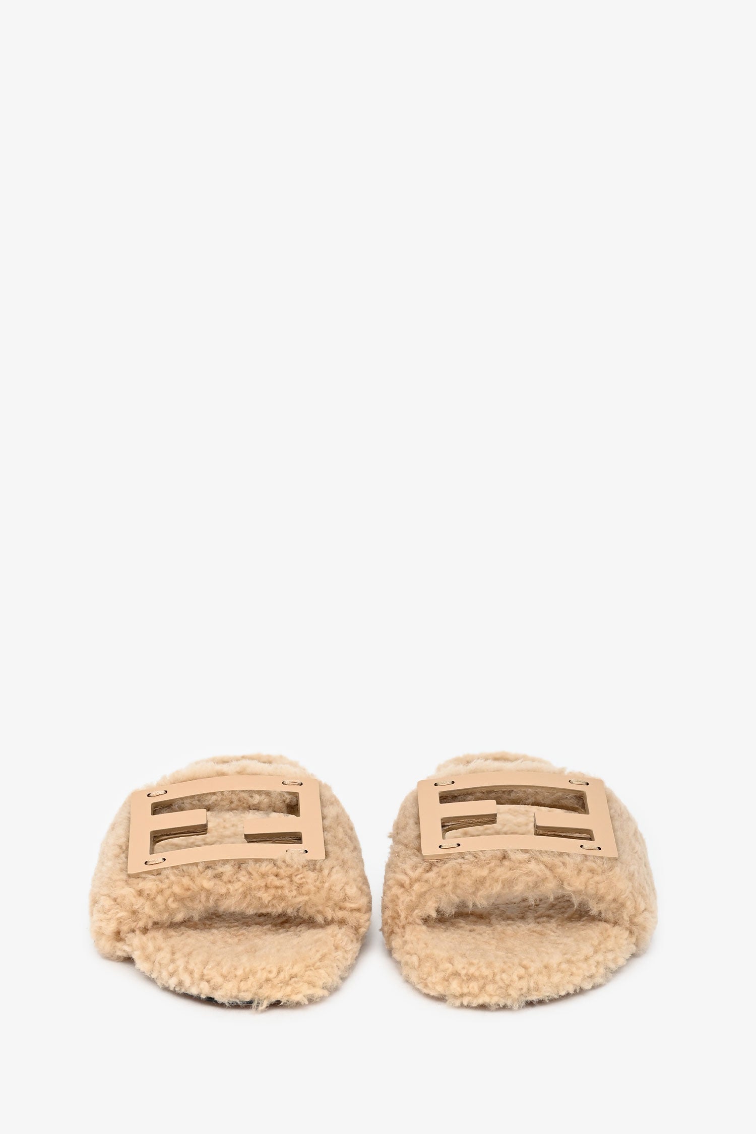 Refresh availabilityFendi Cream Shearling Slides. Slip-on. Open toe.