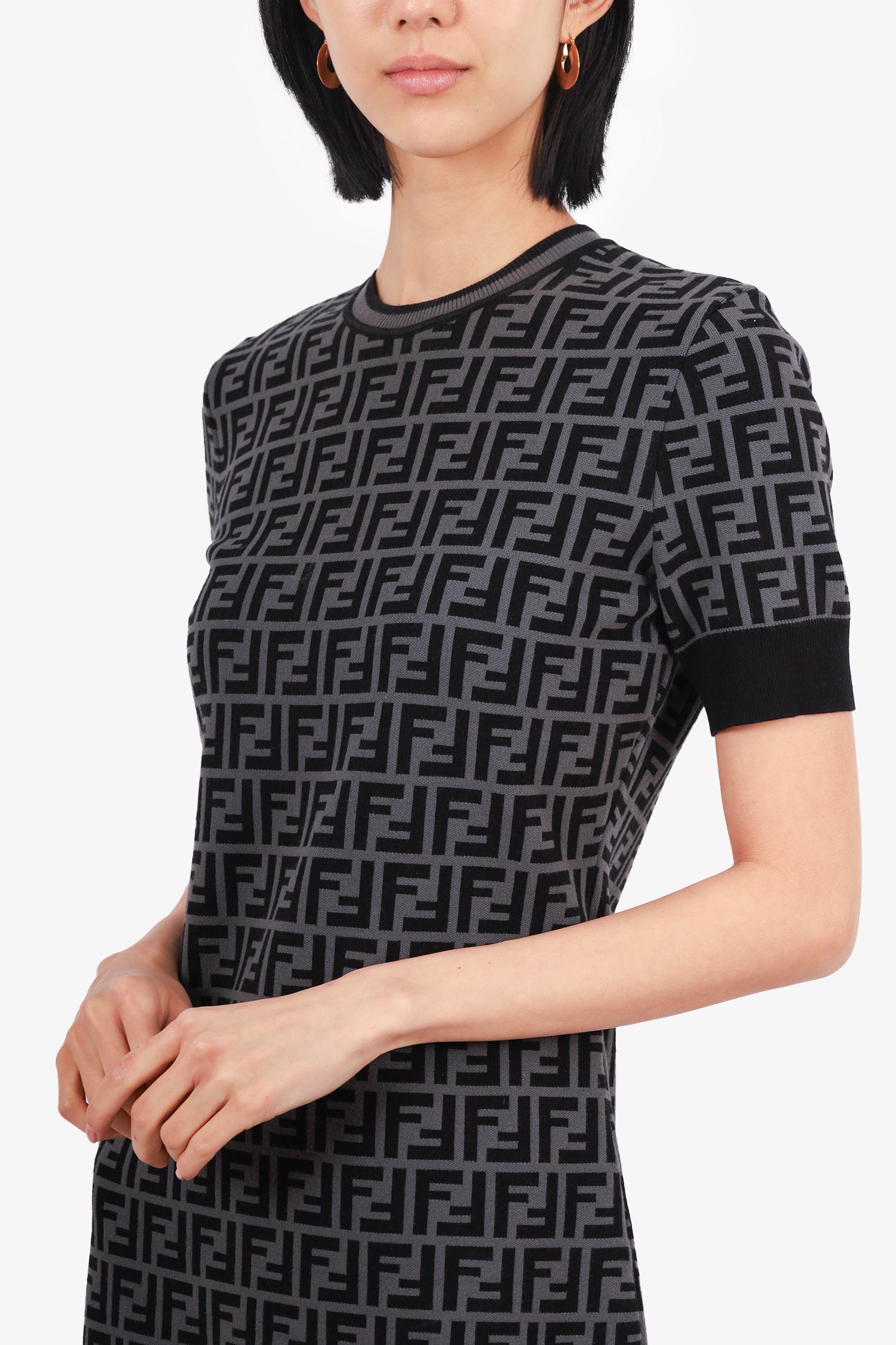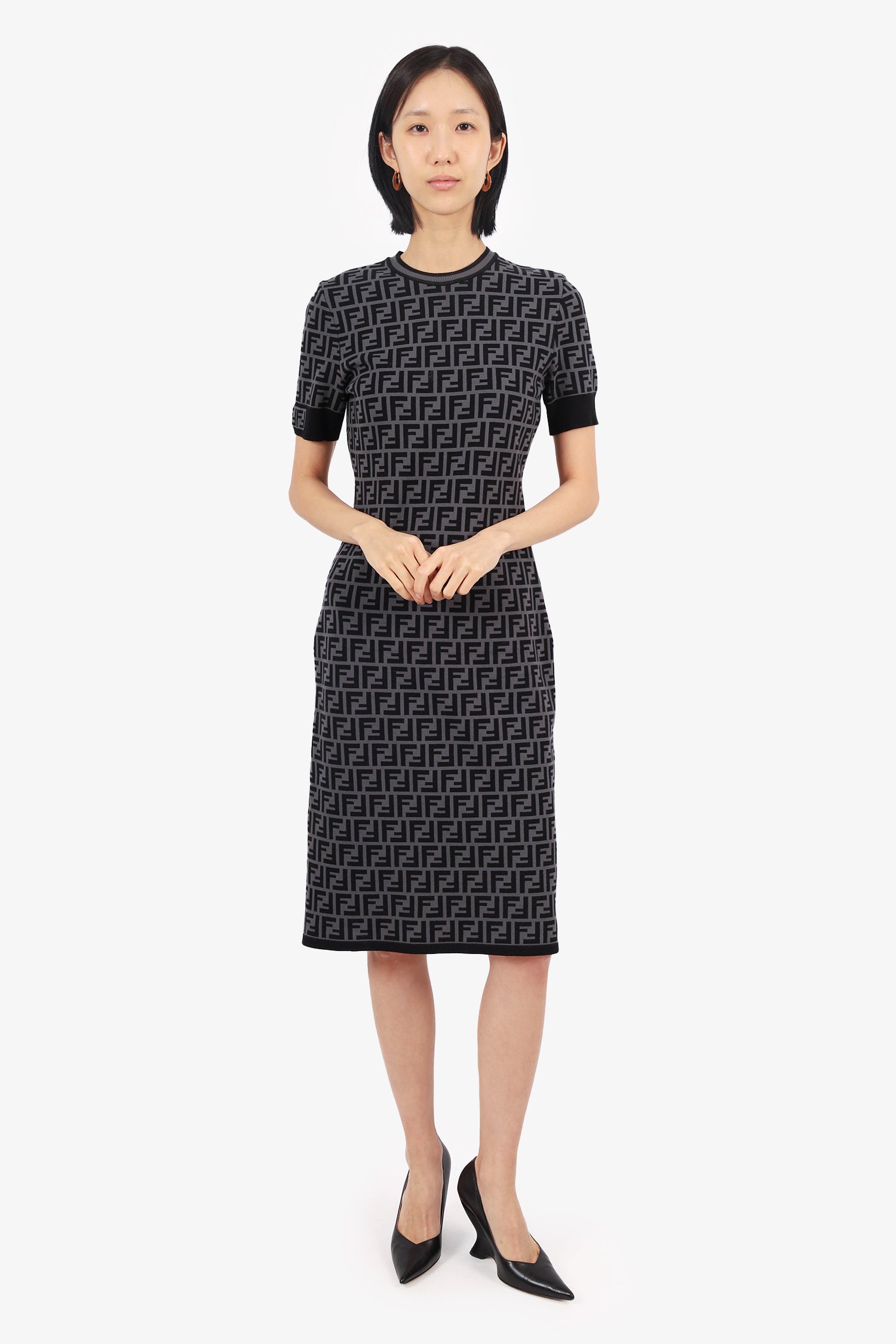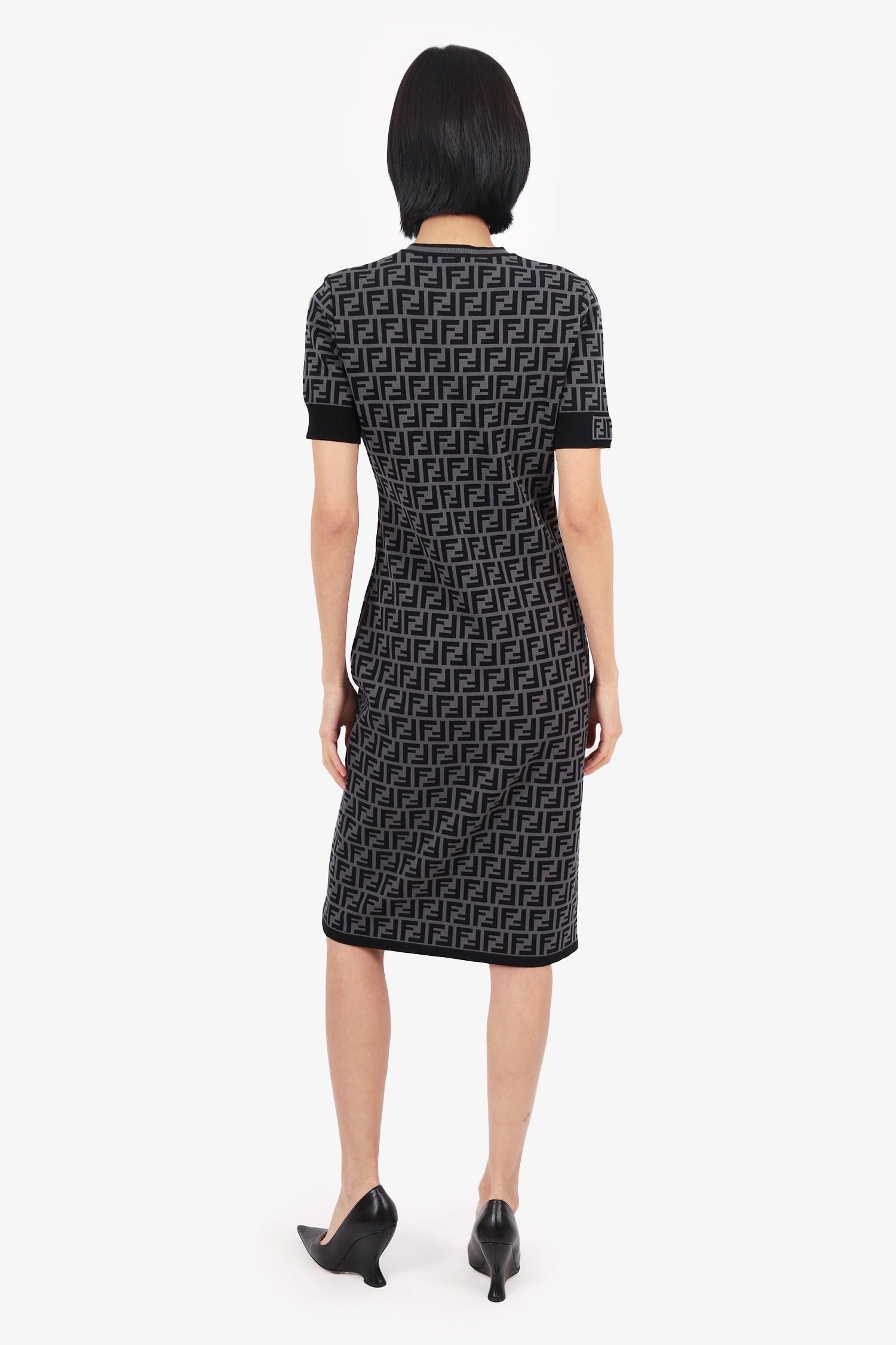 Refresh availabilityFendi Grey Knit Zucca Print Short-Sleeve Midi Dress. Pull-on. Round neckline. Tonal stitching.