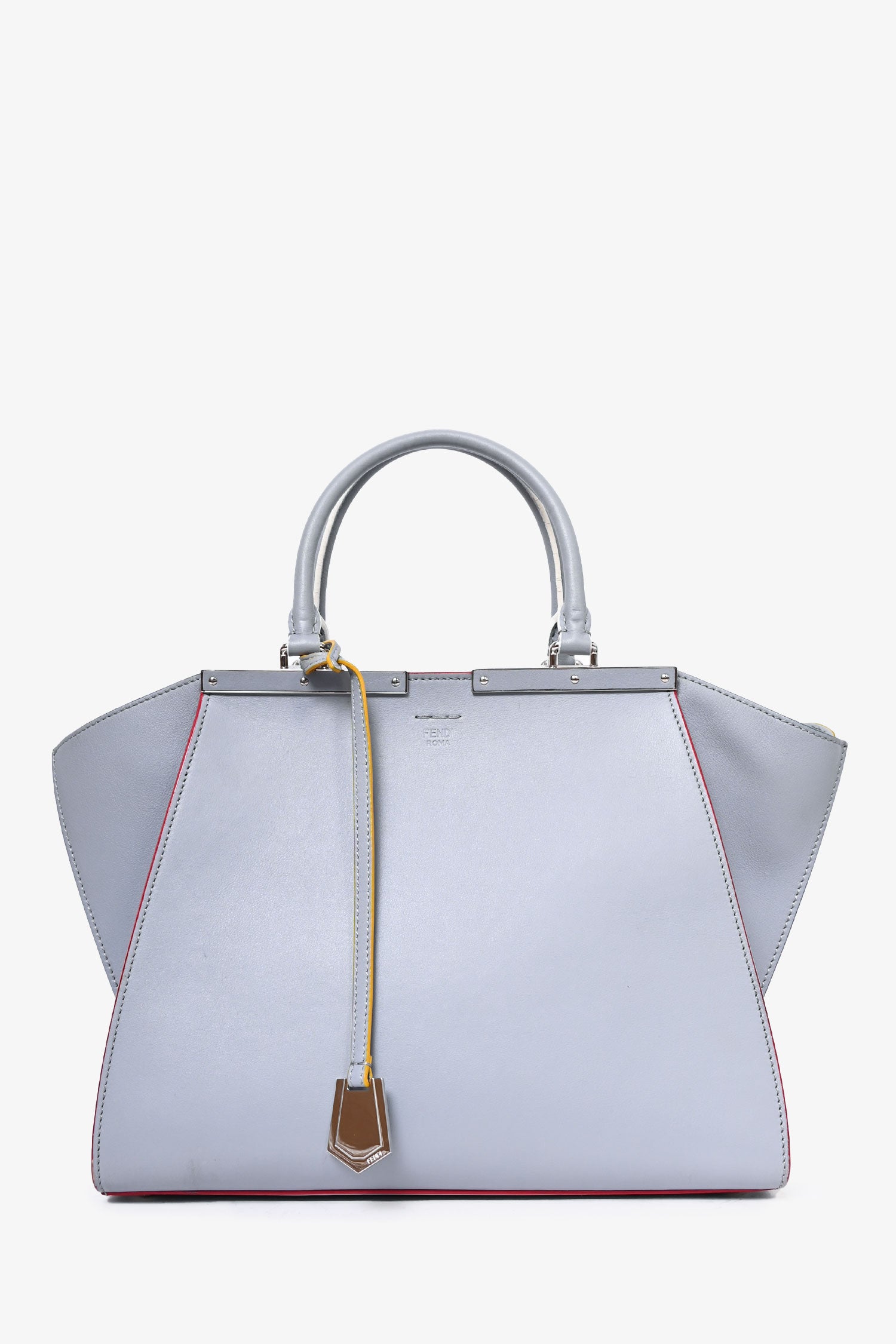 Refresh availabilityFendi Grey Leather 3Jours Bag with Strap. Dual rolled handles. Top zip closure. 2 interior wall slip pockets. Detachable strap. Protective metal bottom. Detachable clochette. Silver-tone hardware.