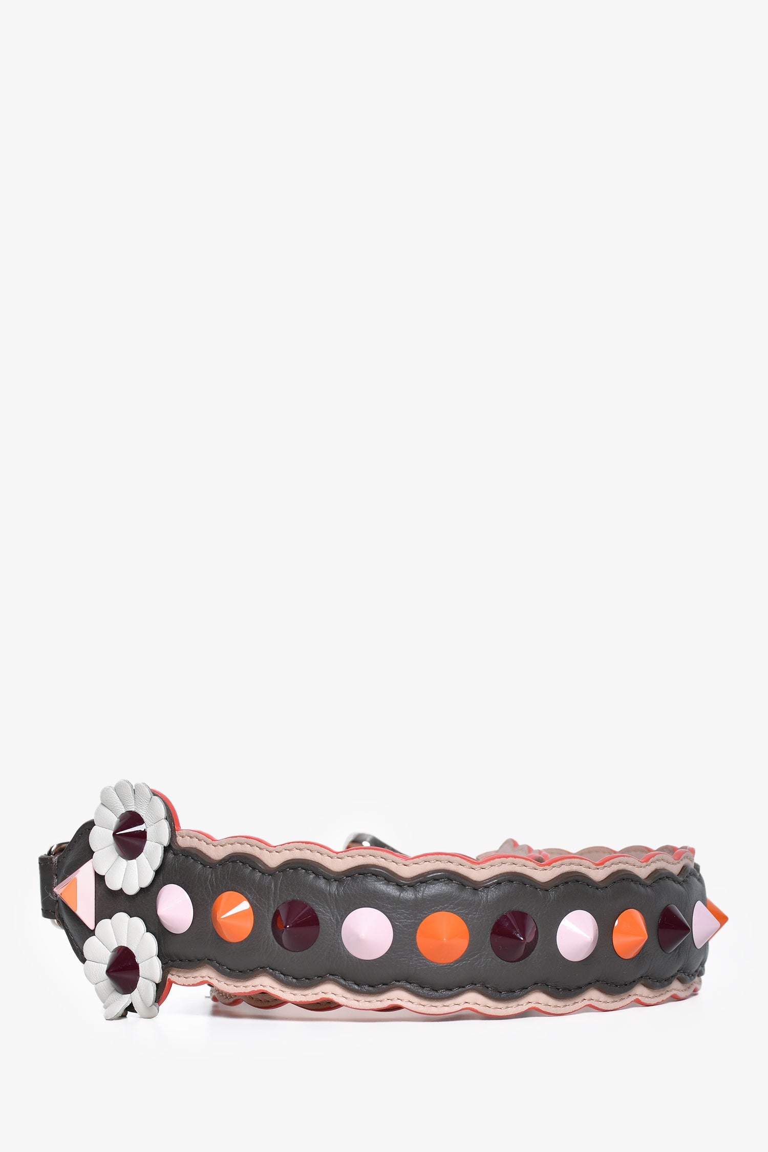 Refresh availabilityFendi Grey/Orange Studded Bag Strap. Lobster clasp closure. Silver-toned hardware. Tonal stitching.