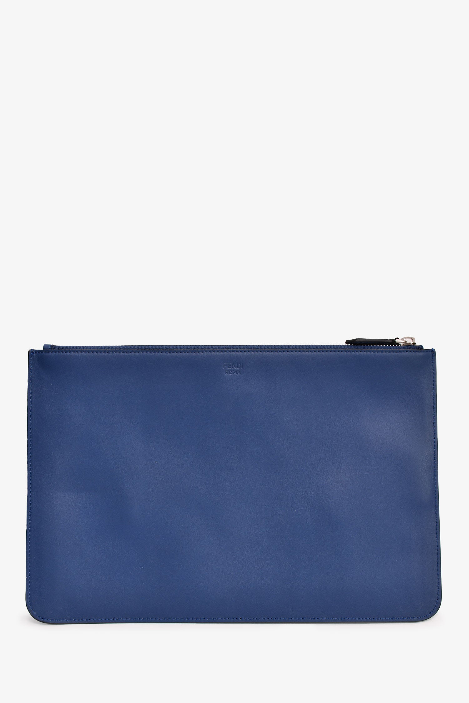 Refresh availabilityFendi Grey/Red/Navy Monster Zip Pouch. Black textile interior lining. Open interior. Silver-tone hardware.
