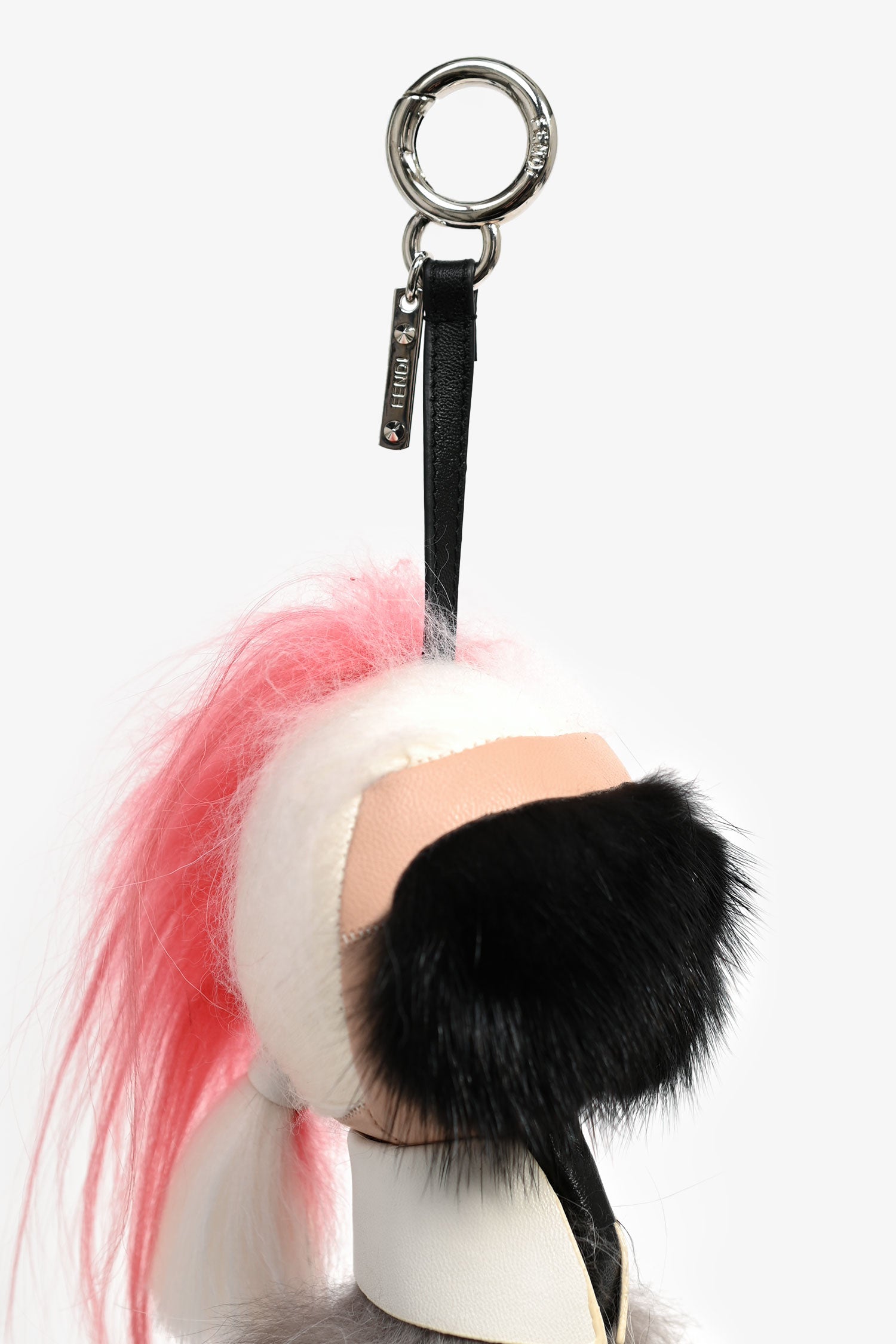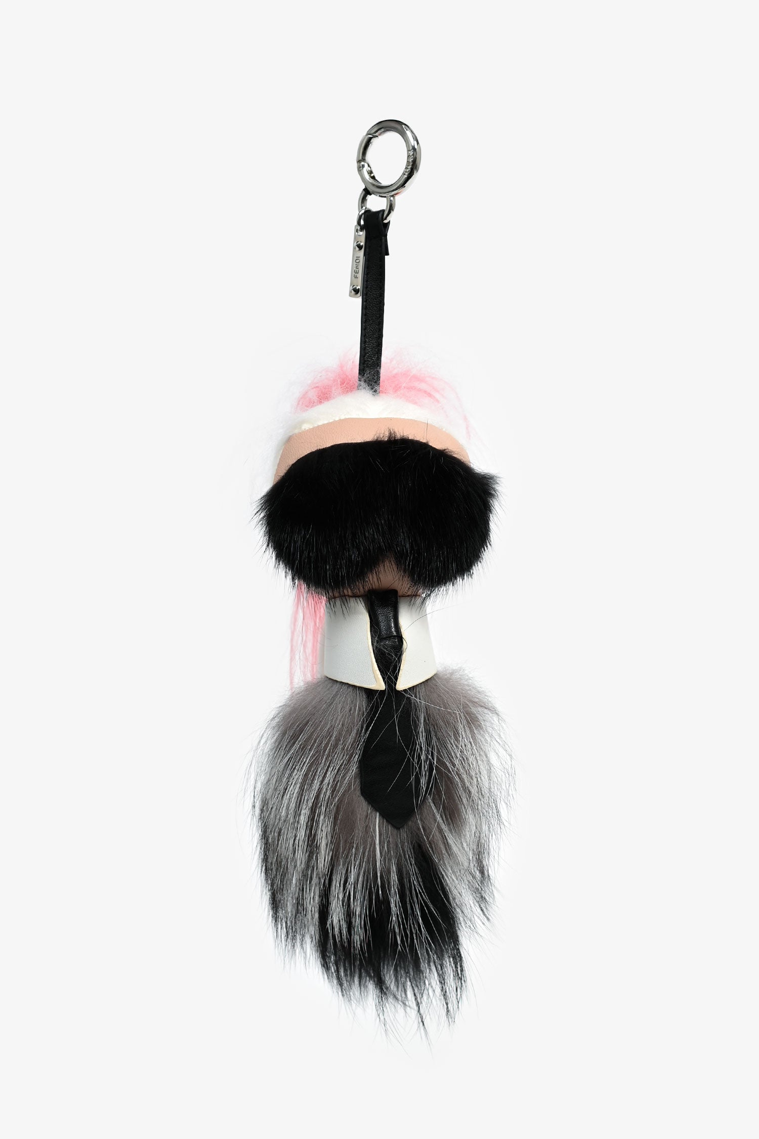Refresh availabilityFendi 'Karlito' Black/Pink Fur Bag Charm. Silver-tone hardware. Tonal stitching.