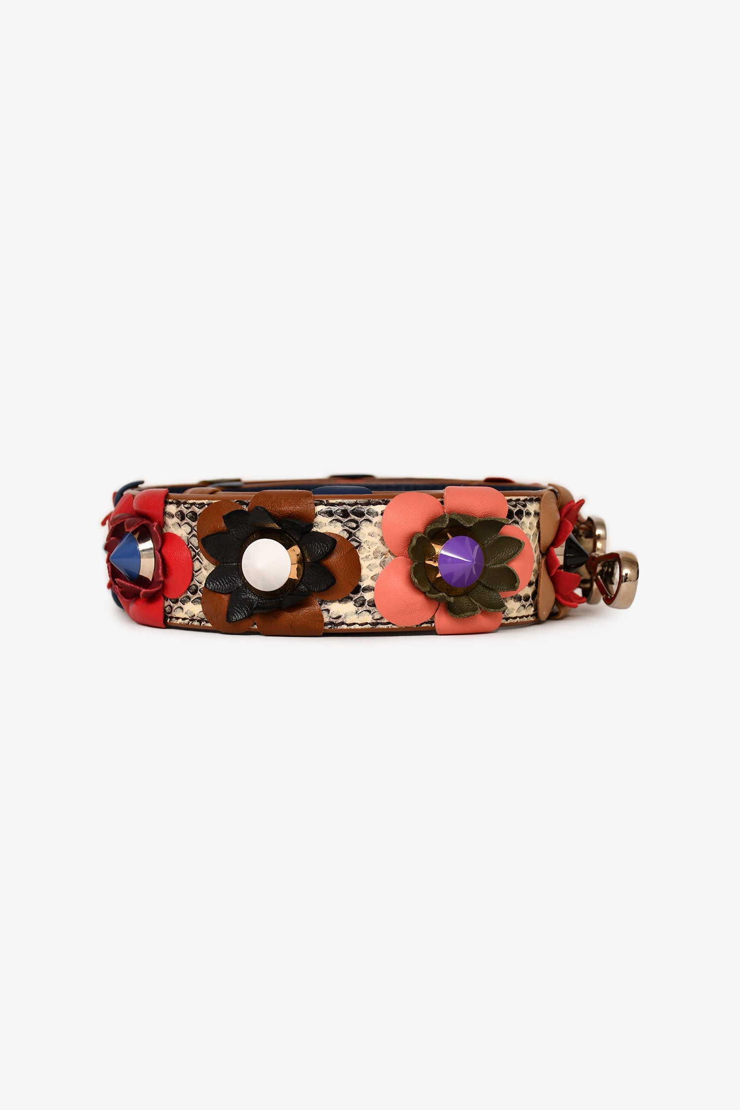 Refresh availabilityFendi Leather Multicolour Floral Studded Strap. Tonal stitching. Blue leather interior.