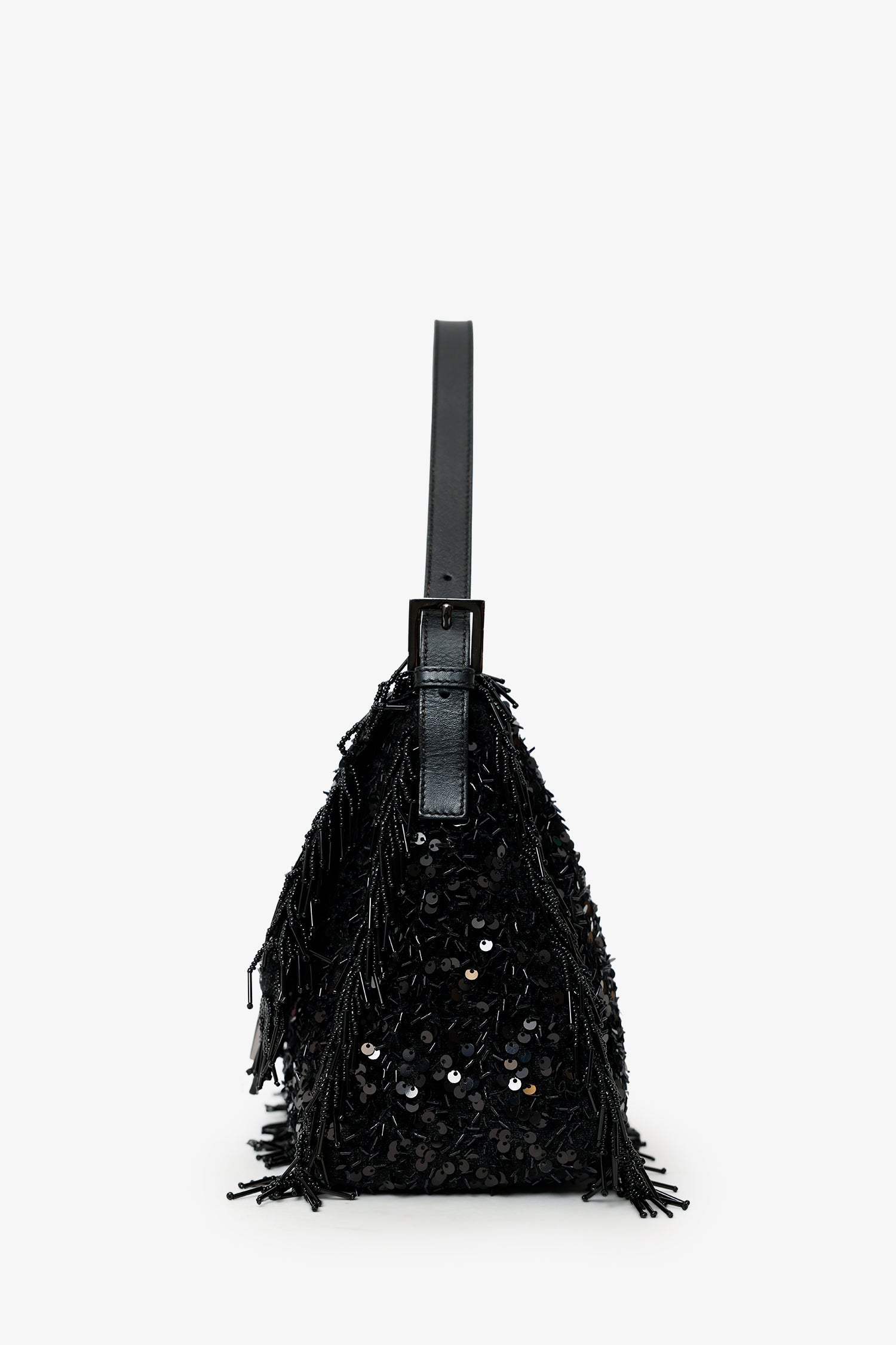 Fendi Limited Edition (1/30) Black Sequin Beaded Fringed Mama Baguette Shoulder Bag