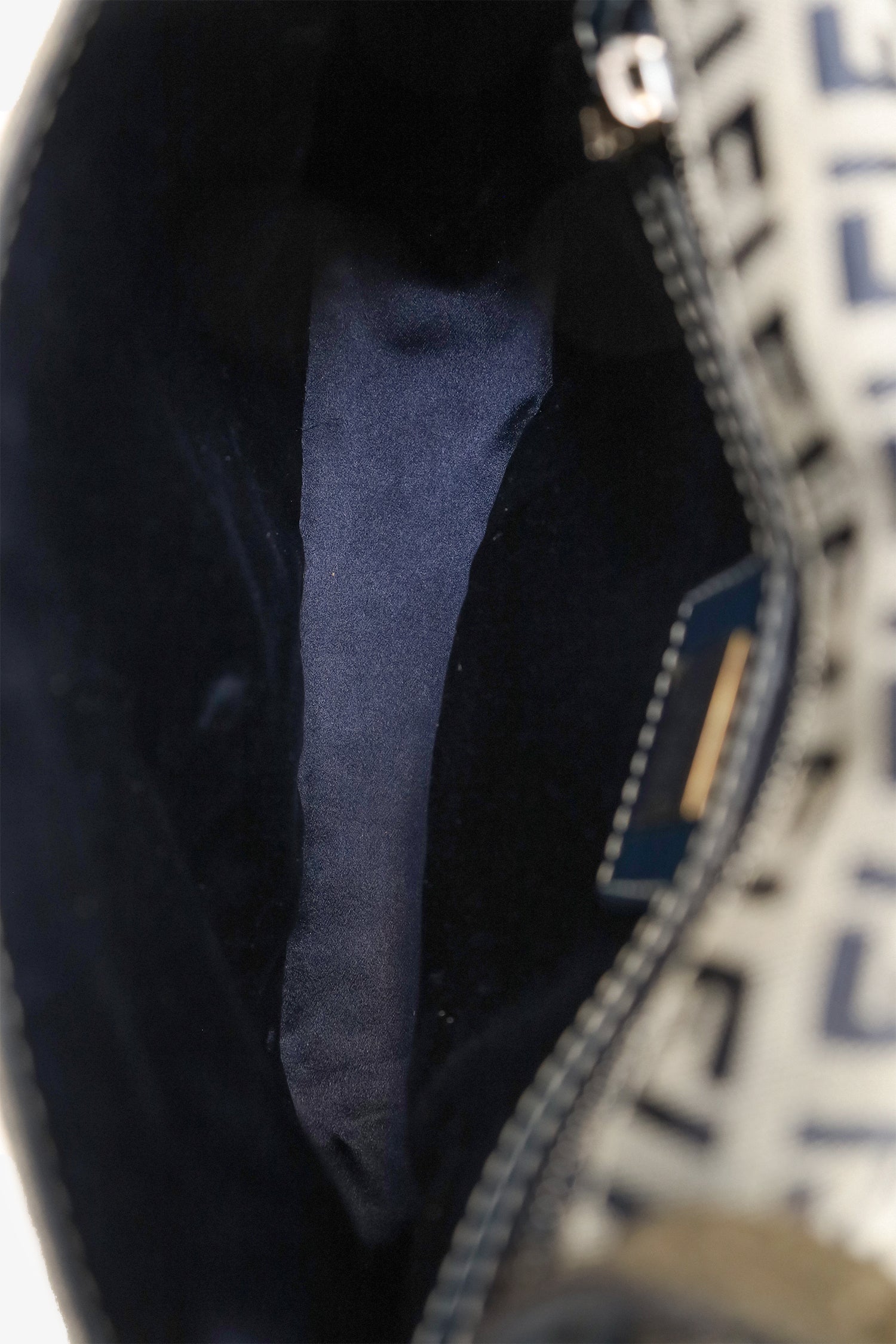 Condition: This item is in good pre-loved condition with scratches throughout hardware. Creasing throughout shoulder strap and front navy panel. Shoulder strap is somewhat peeling. Interior Fendi logo hardware still has plastic protection.