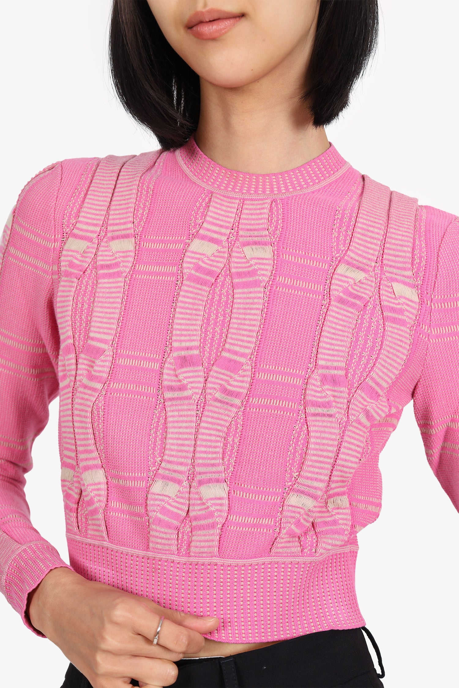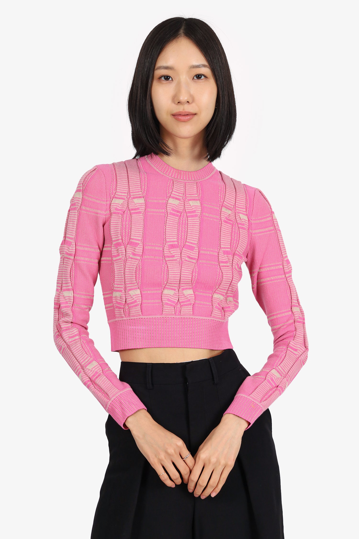 Refresh availabilityFendi Pink/Beige Cropped Long Sleeve Sweater. Pull-on. Round-neckline. Tonal stitching.