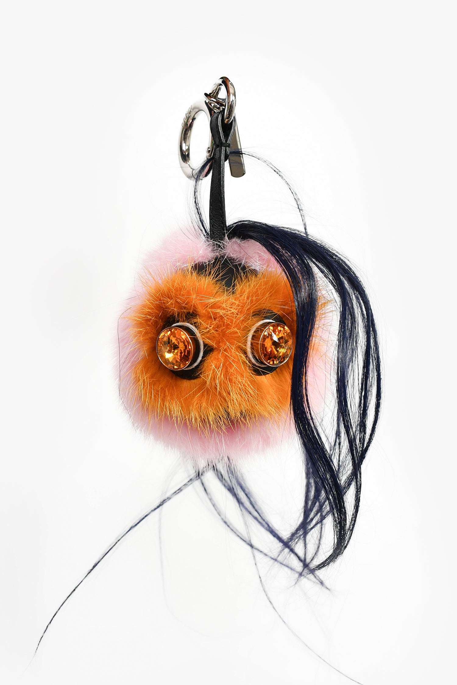 Refresh availabilityFendi Pink/Blue Fur Mini Monster Keychain. Clip closure. Silver-tone hardware.