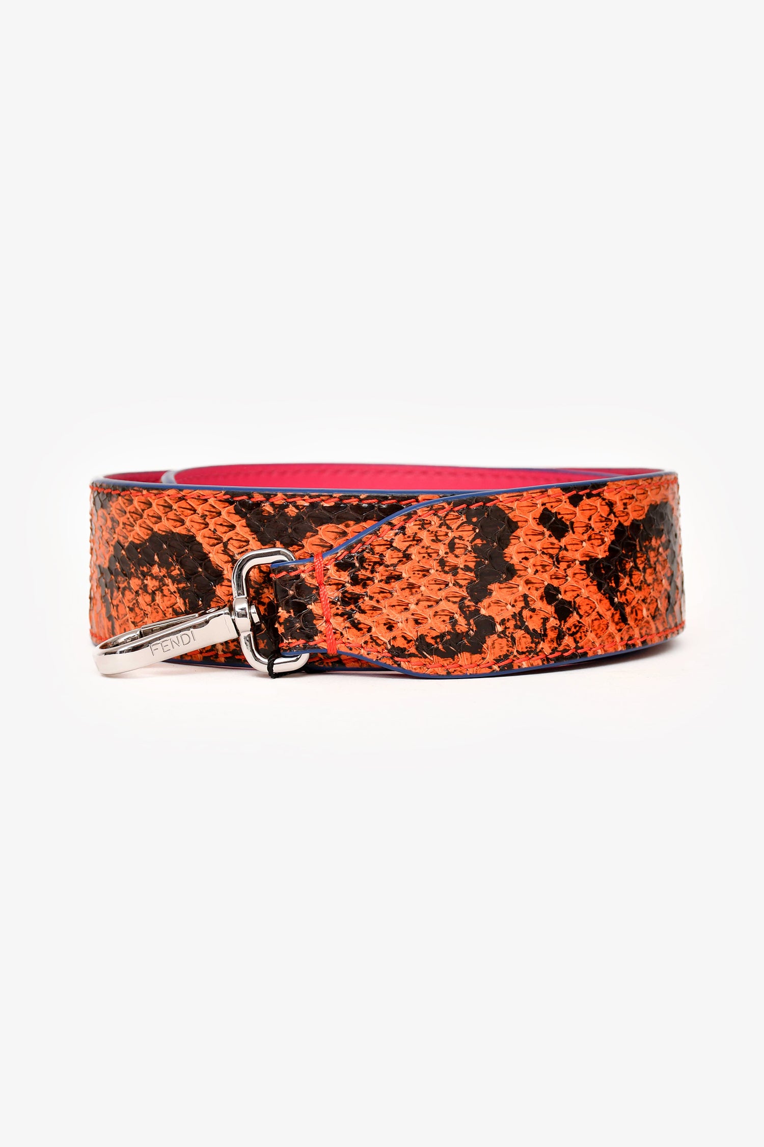 Refresh availabilityFendi Pink/Orange Python/Leather Bag Strap. 2 Silver-tone lobster clasp closures. Coated trimming. Tonal stitching.