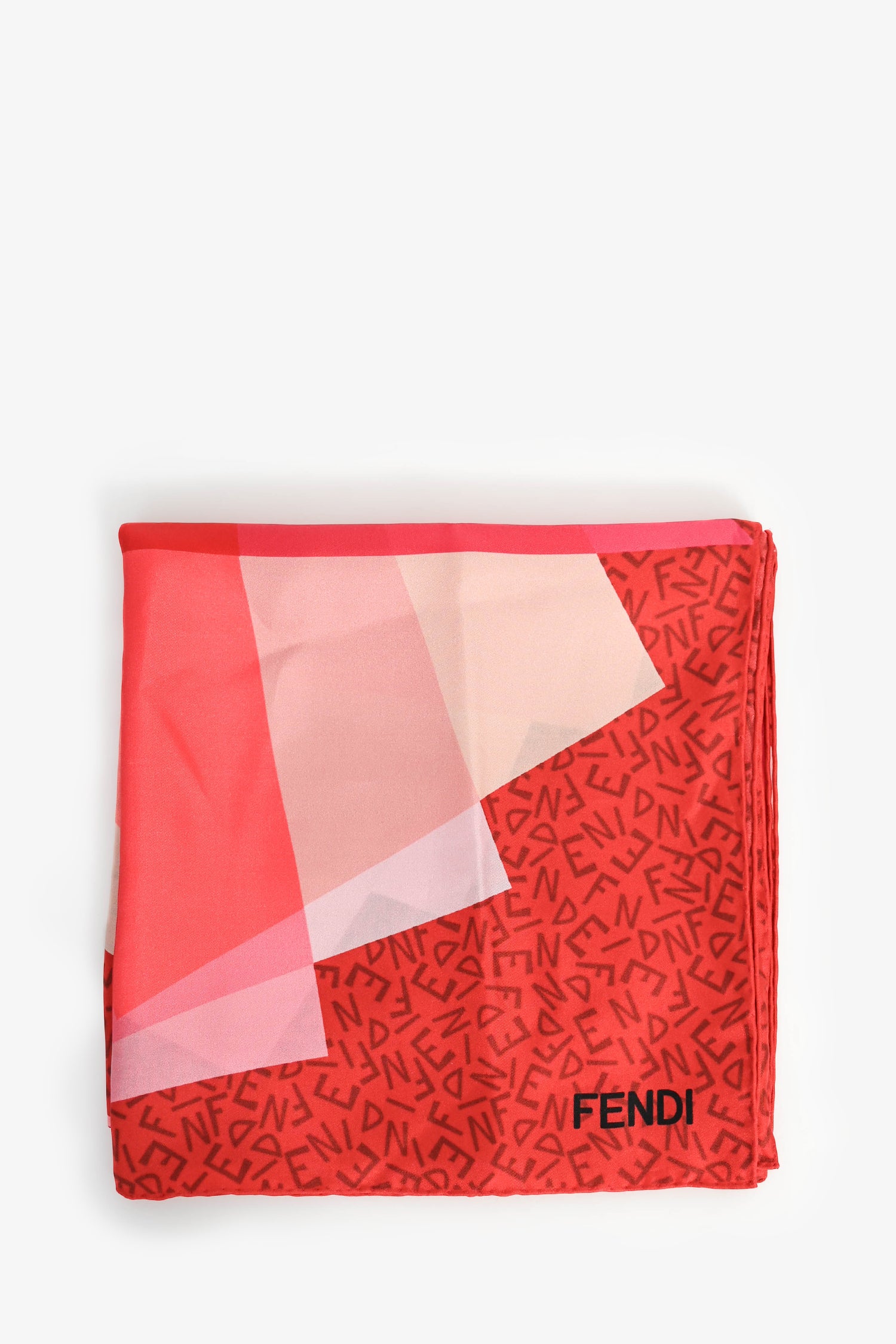 Refresh availabilityFendi Pink/Red Graphic Print Silk Scarf 90. Tonal stitching.