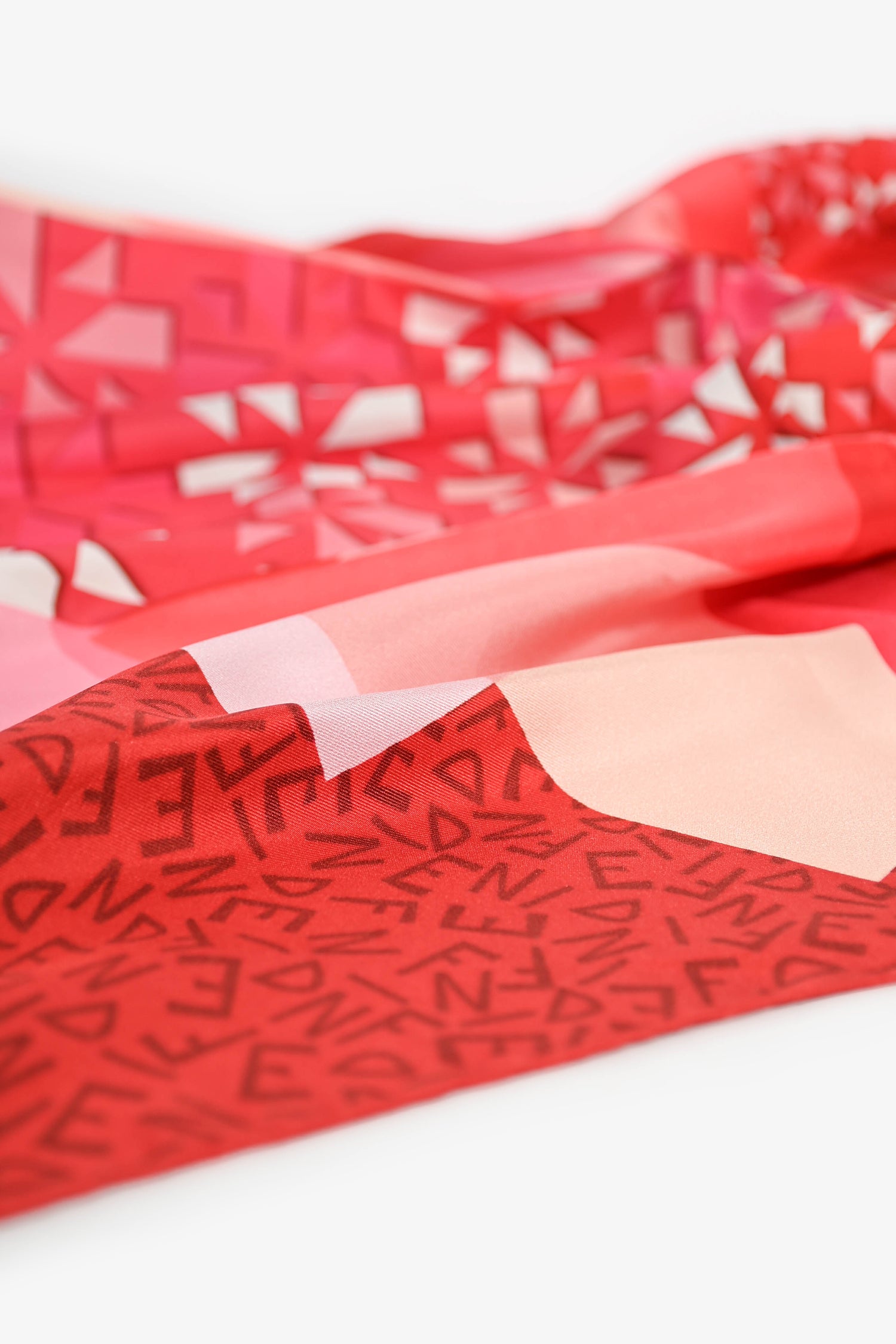 Fendi Pink/Red Graphic Print Silk Scarf 90