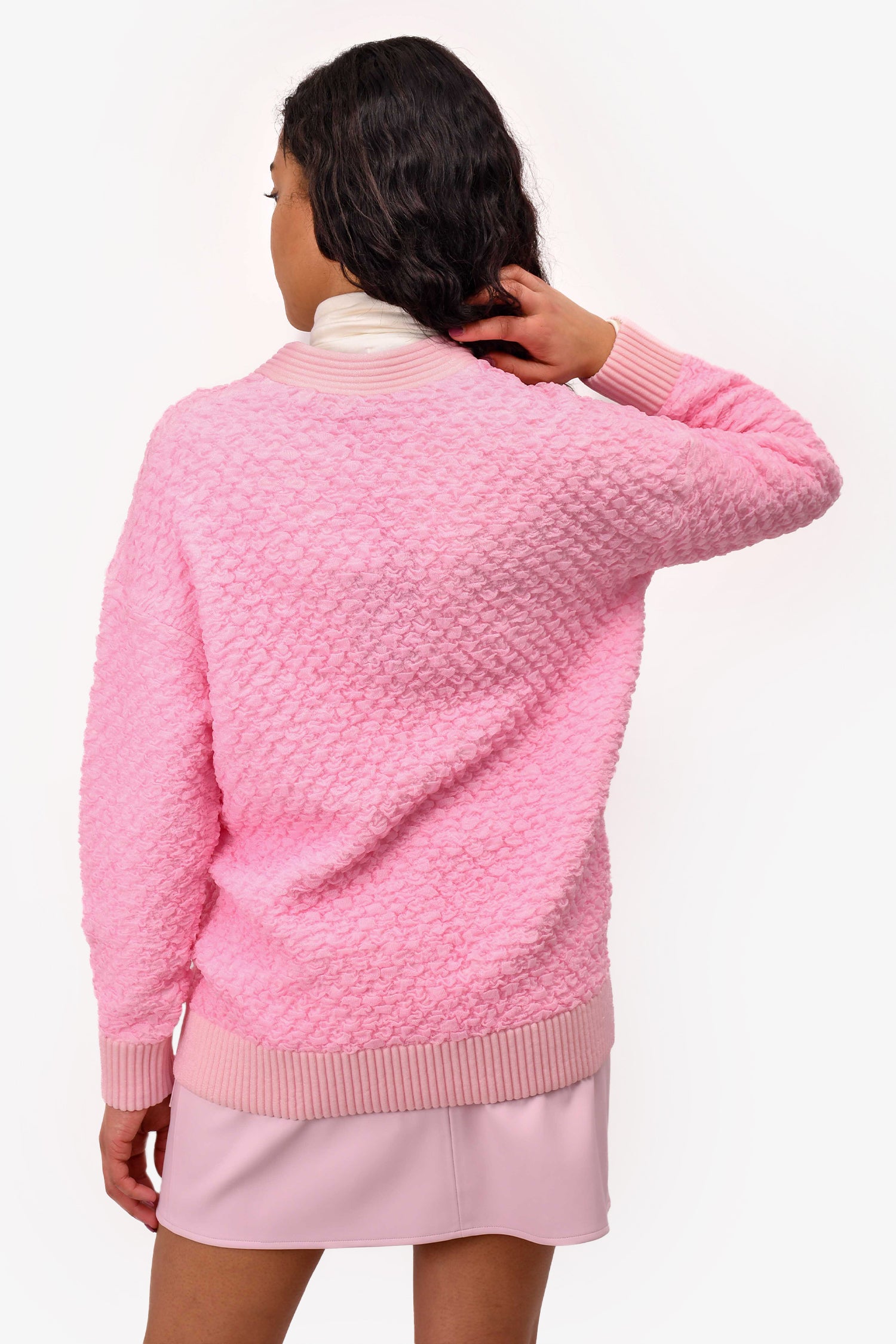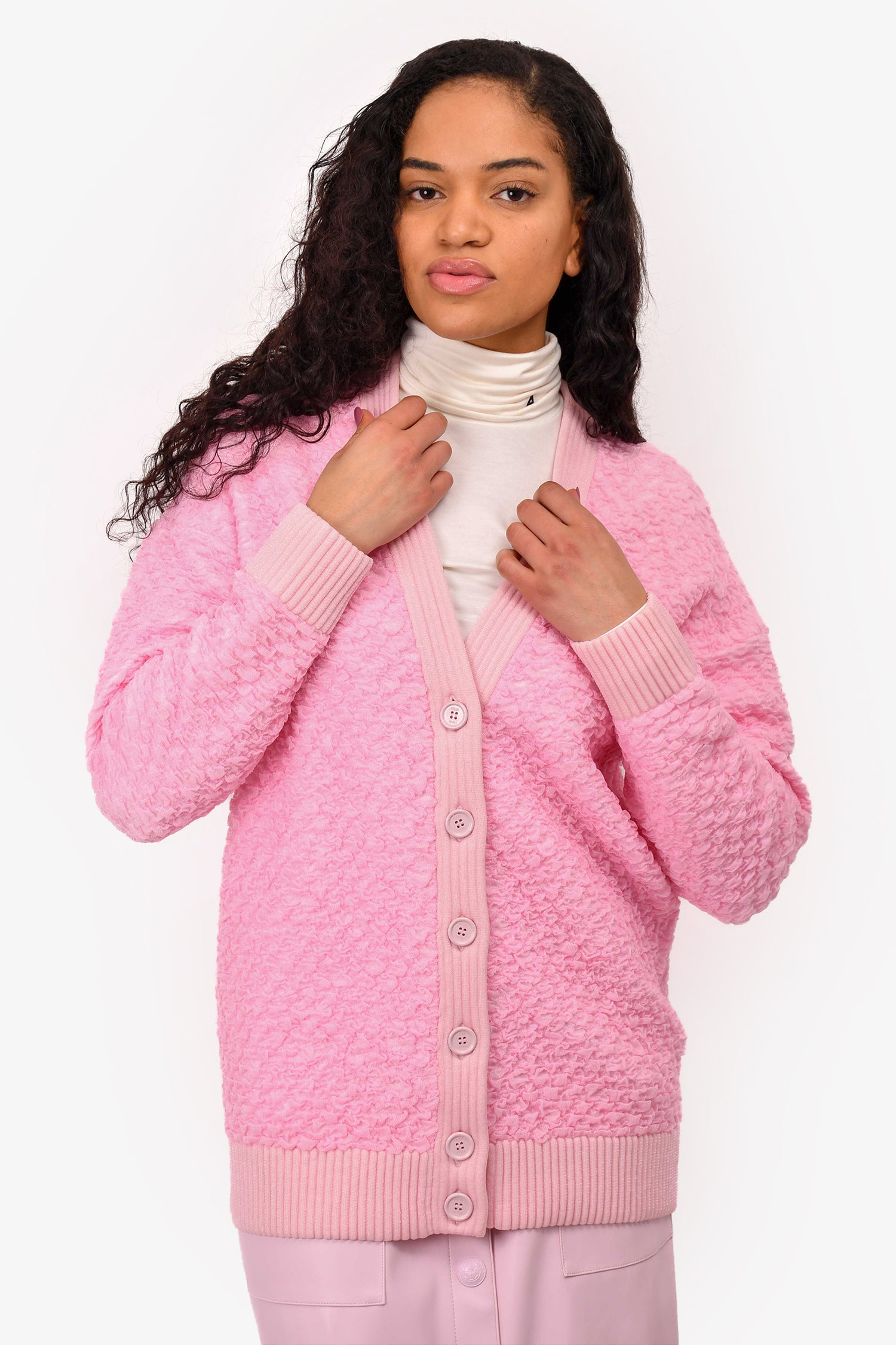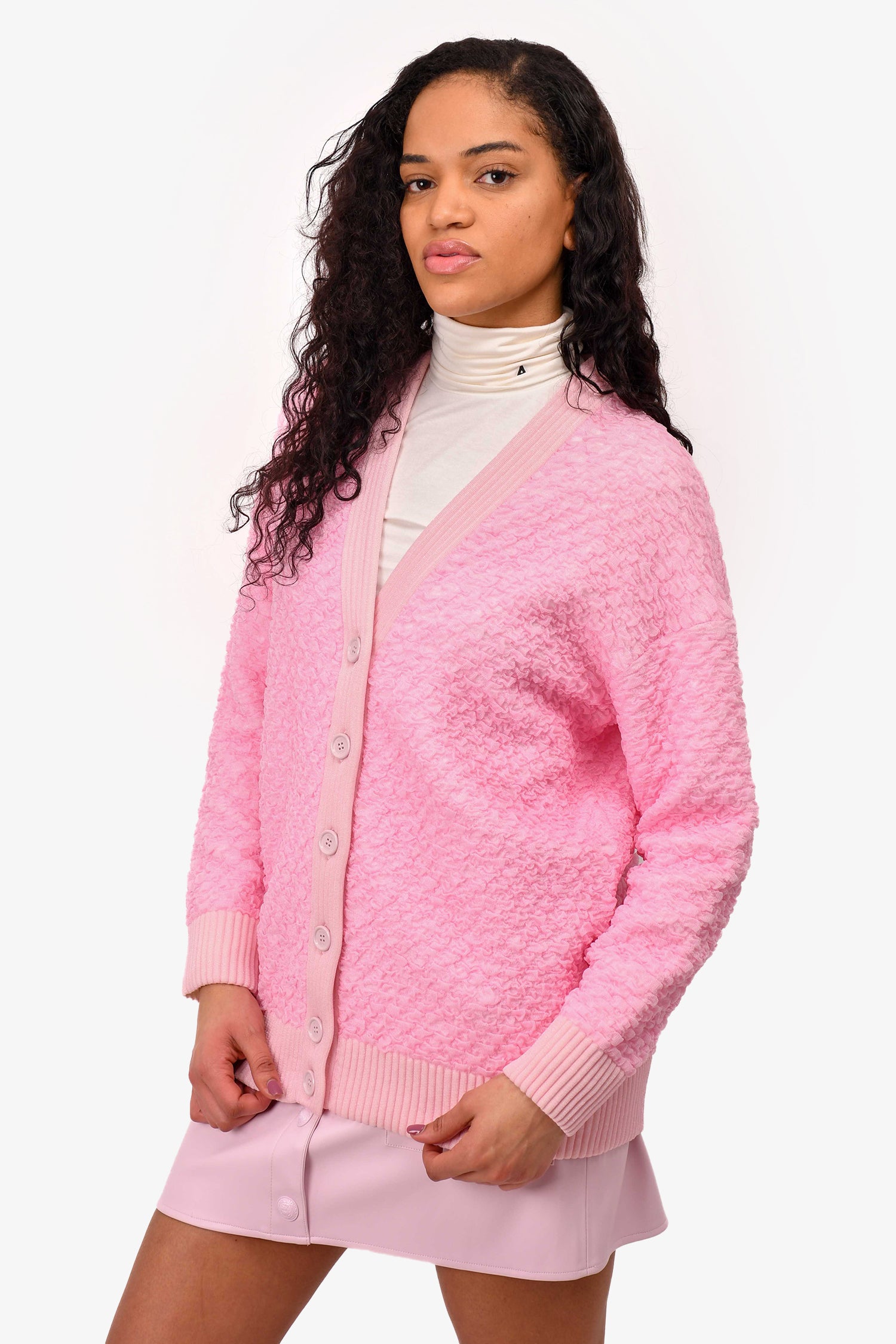 Refresh availabilityFendi Pink Textured Knit Cardigan. Front button closures. Lined. Ribbed trims. Tonal stitching.