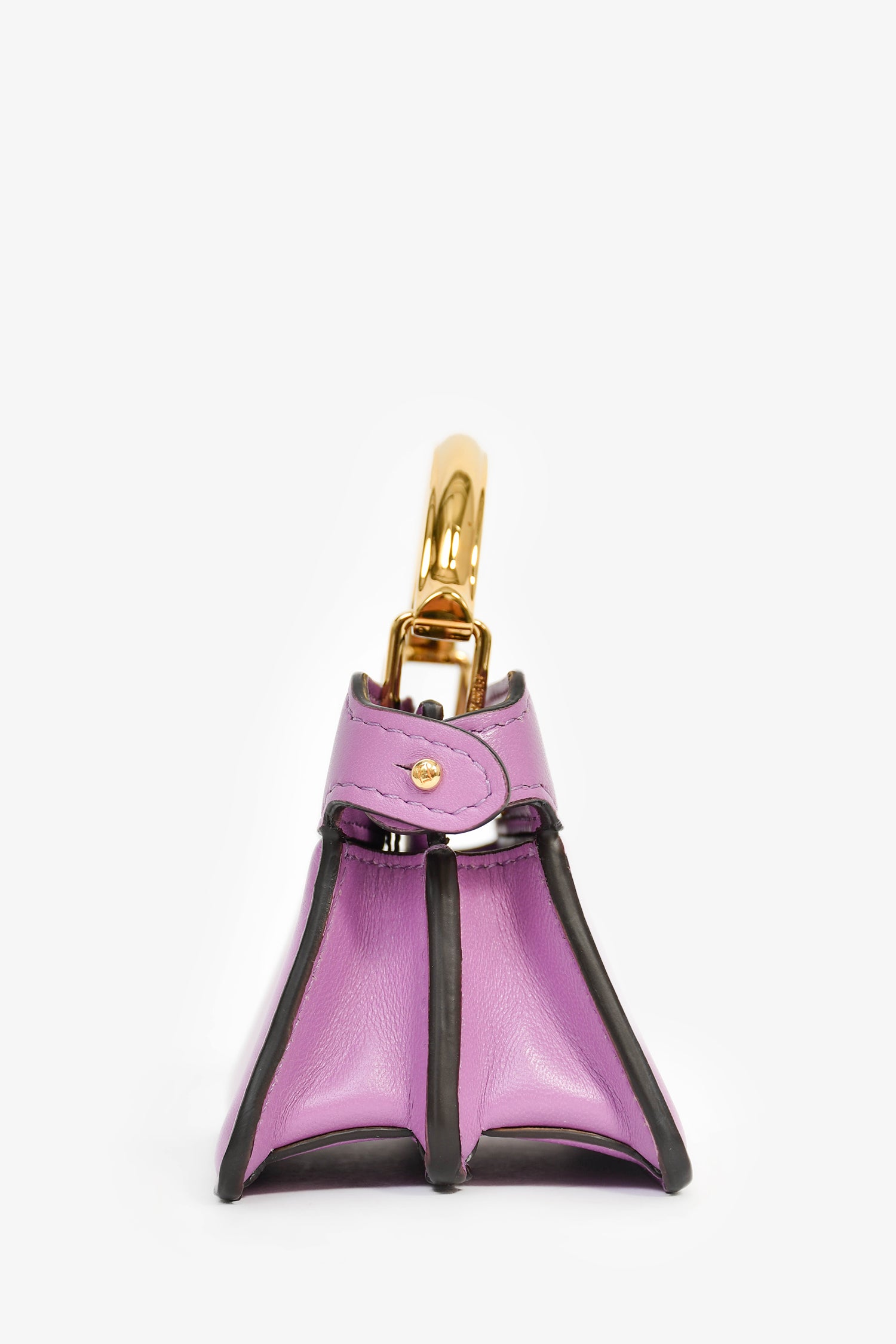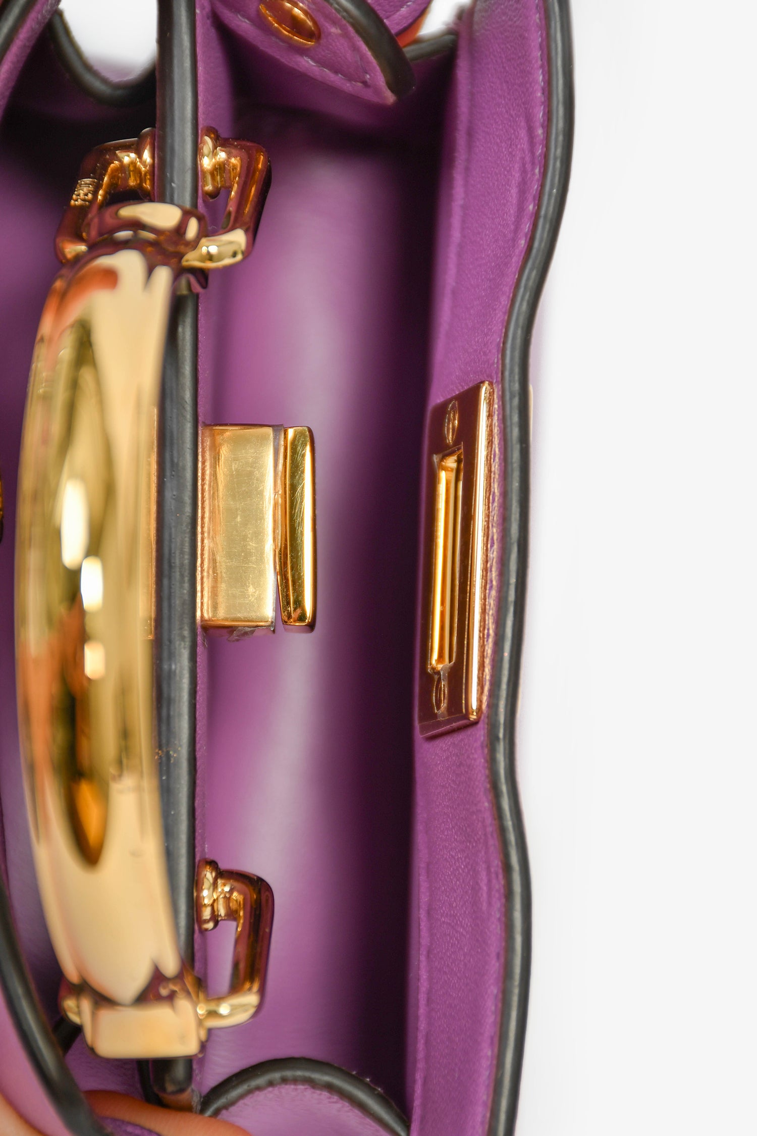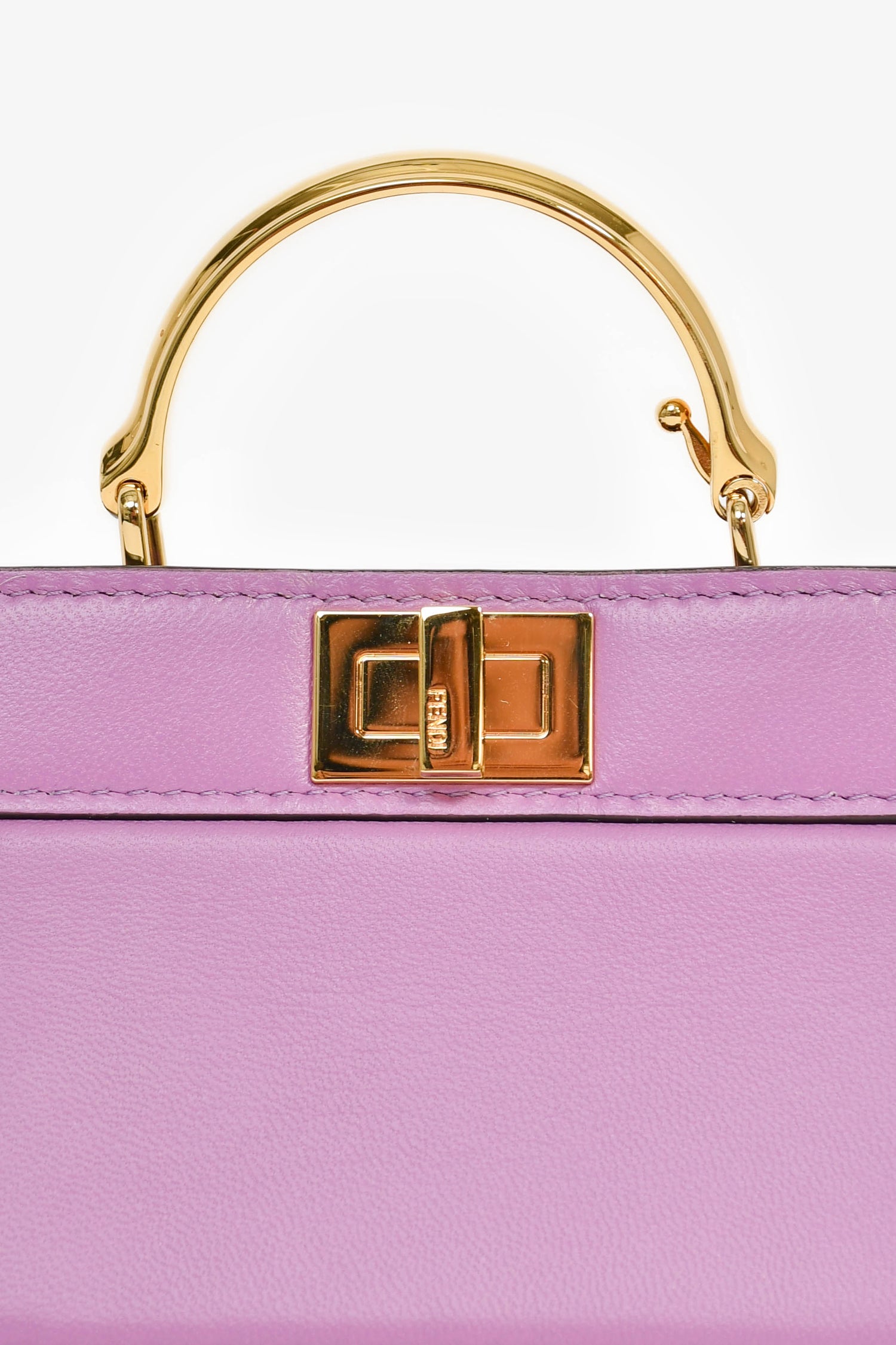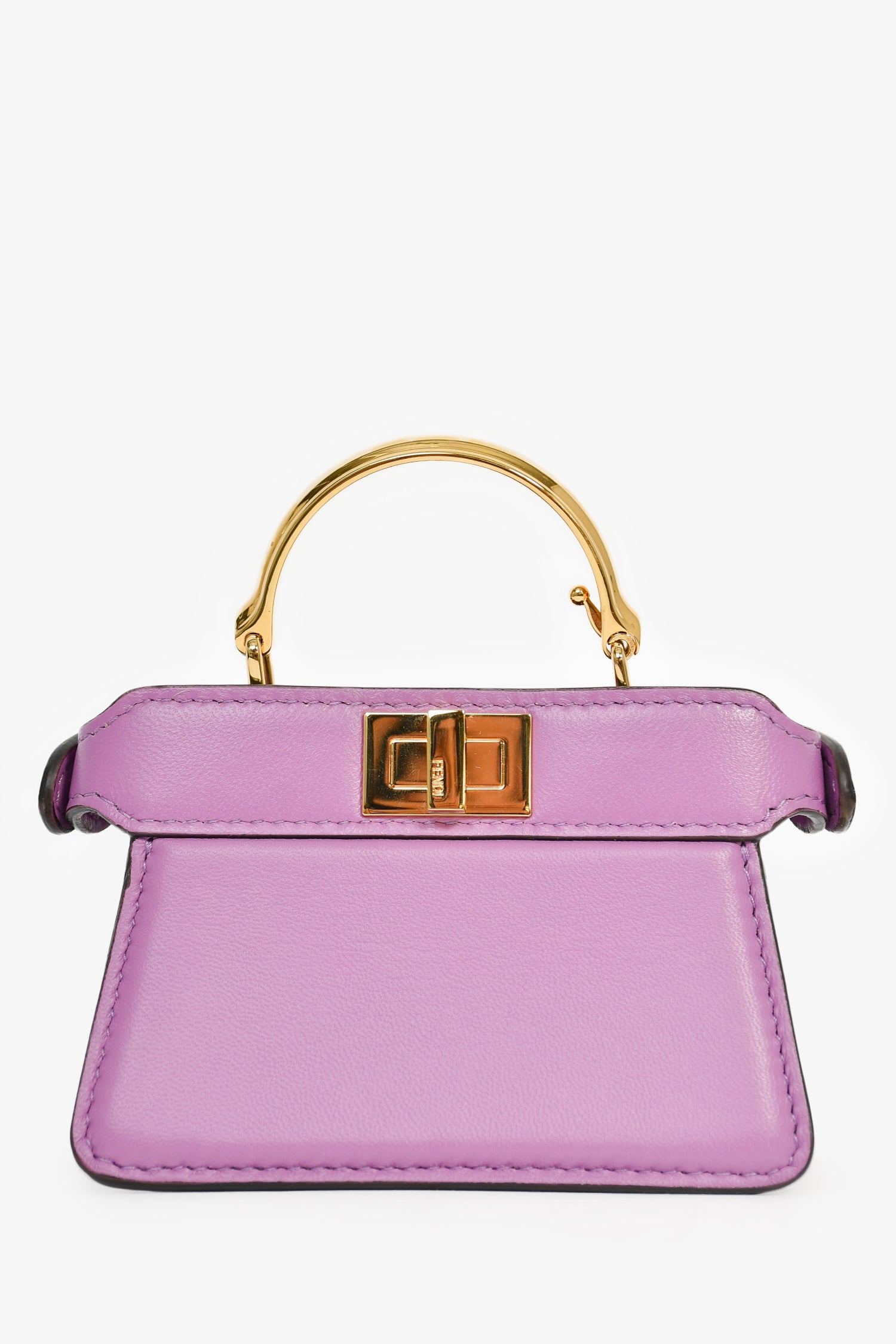 Refresh availabilityFendi Purple Lamb Leather Nano Peekaboo Top Handle Bag. Gold-tone top handle. 2 turn-lock closures. 2 interior compartments. Side snap closures. Attachable shoulder strap. Tonal stitiching.