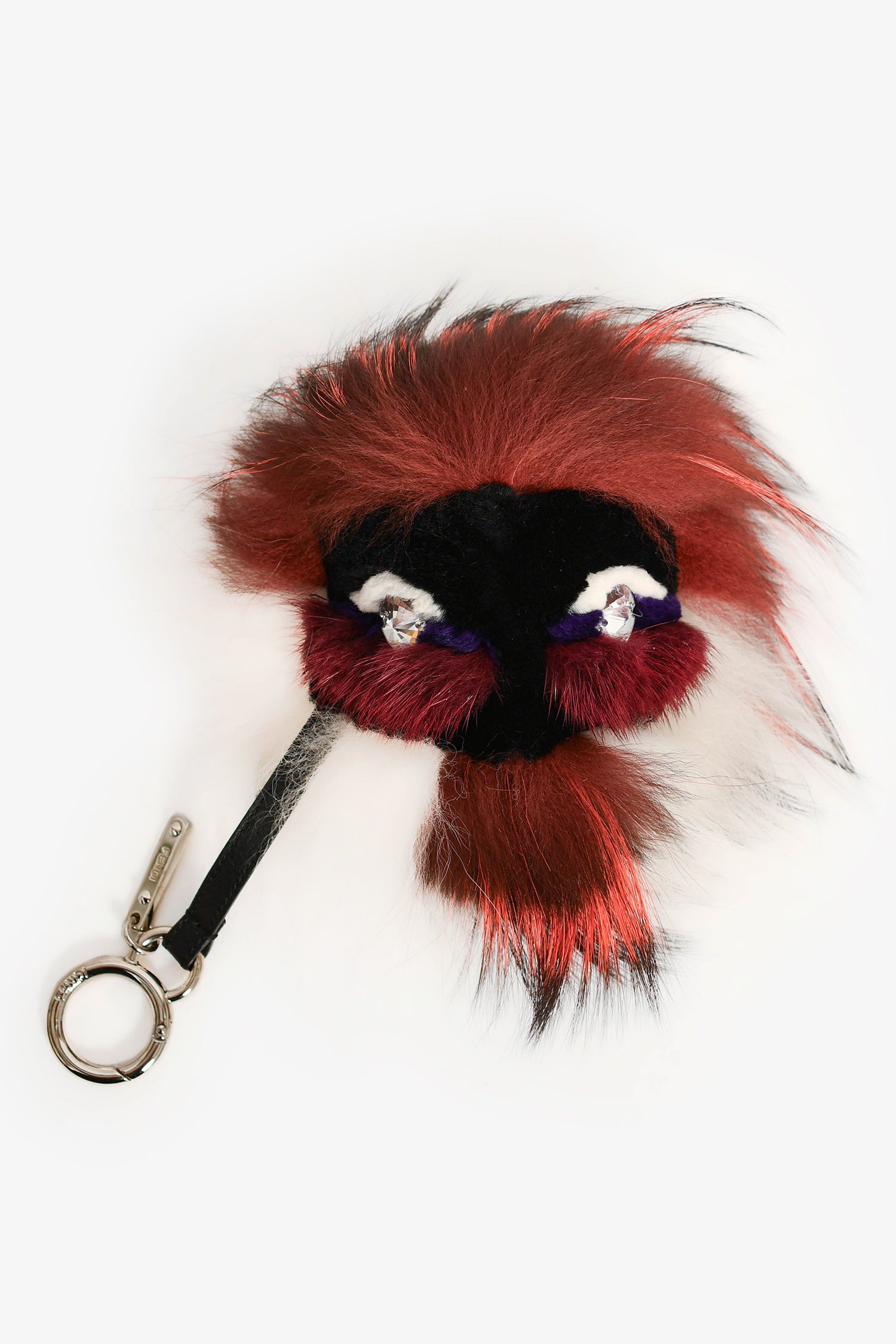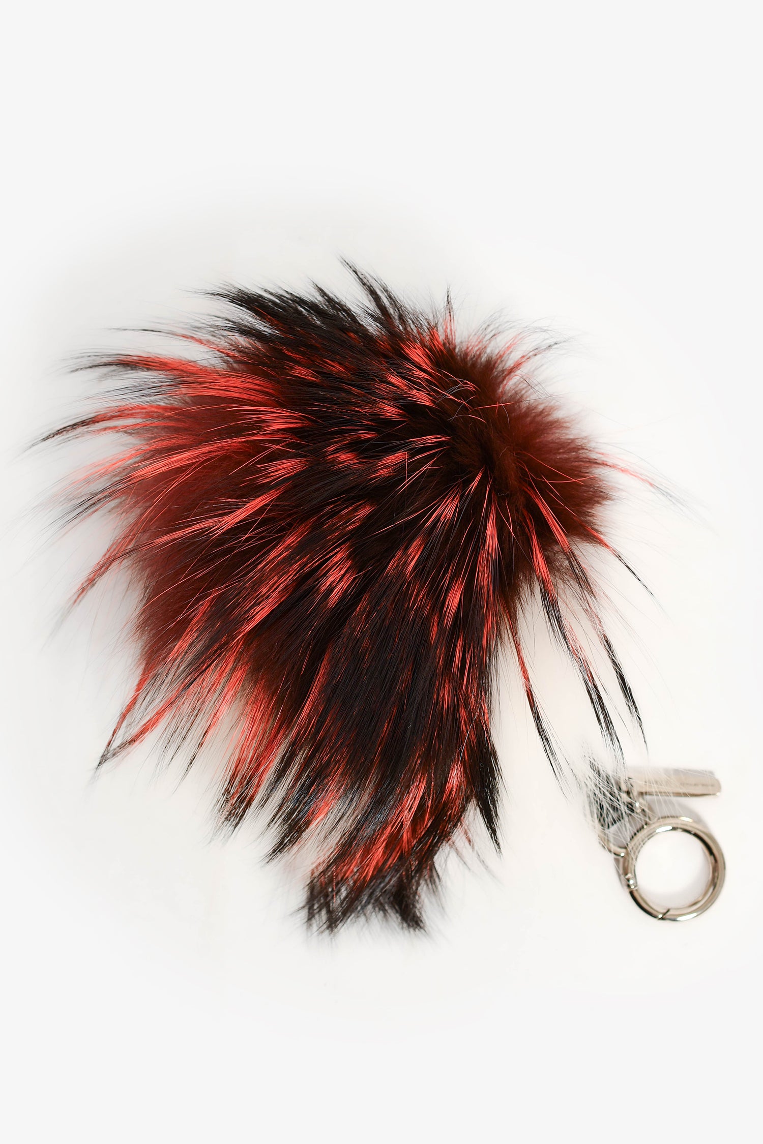 Refresh availabilityFendi Red/Black Fur Ball Key Chain. Key ring clasp. Crystal details. Silver-tone hardware.