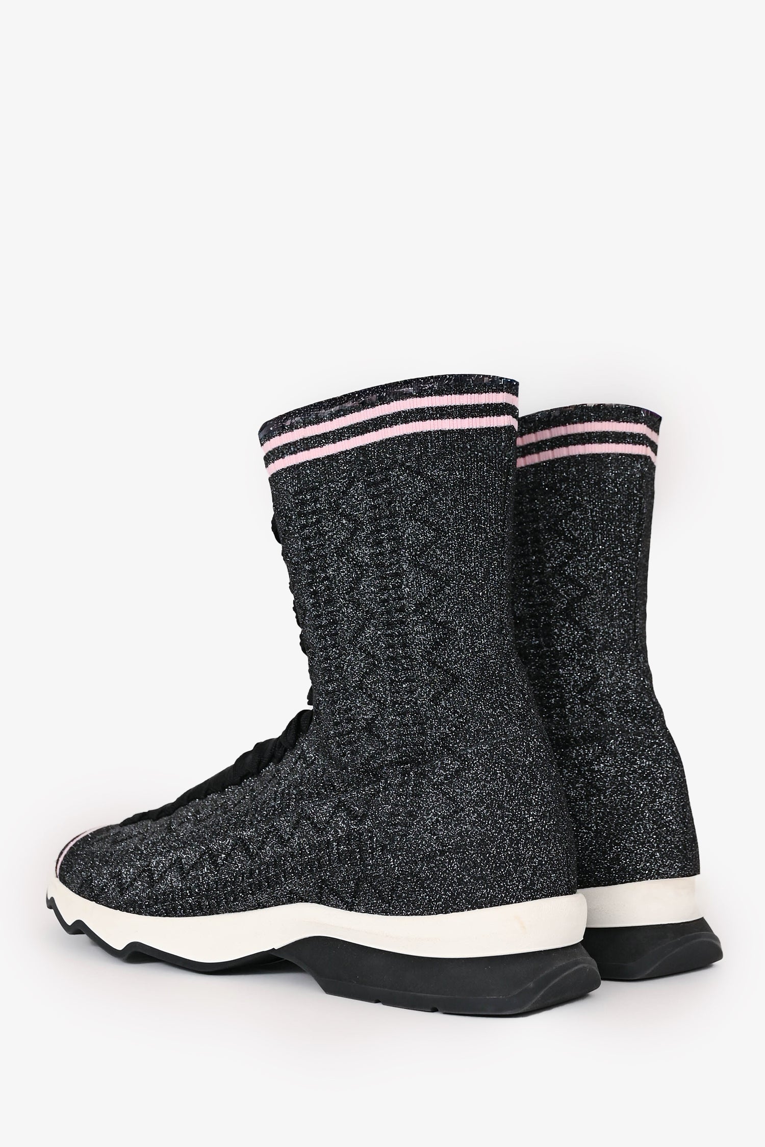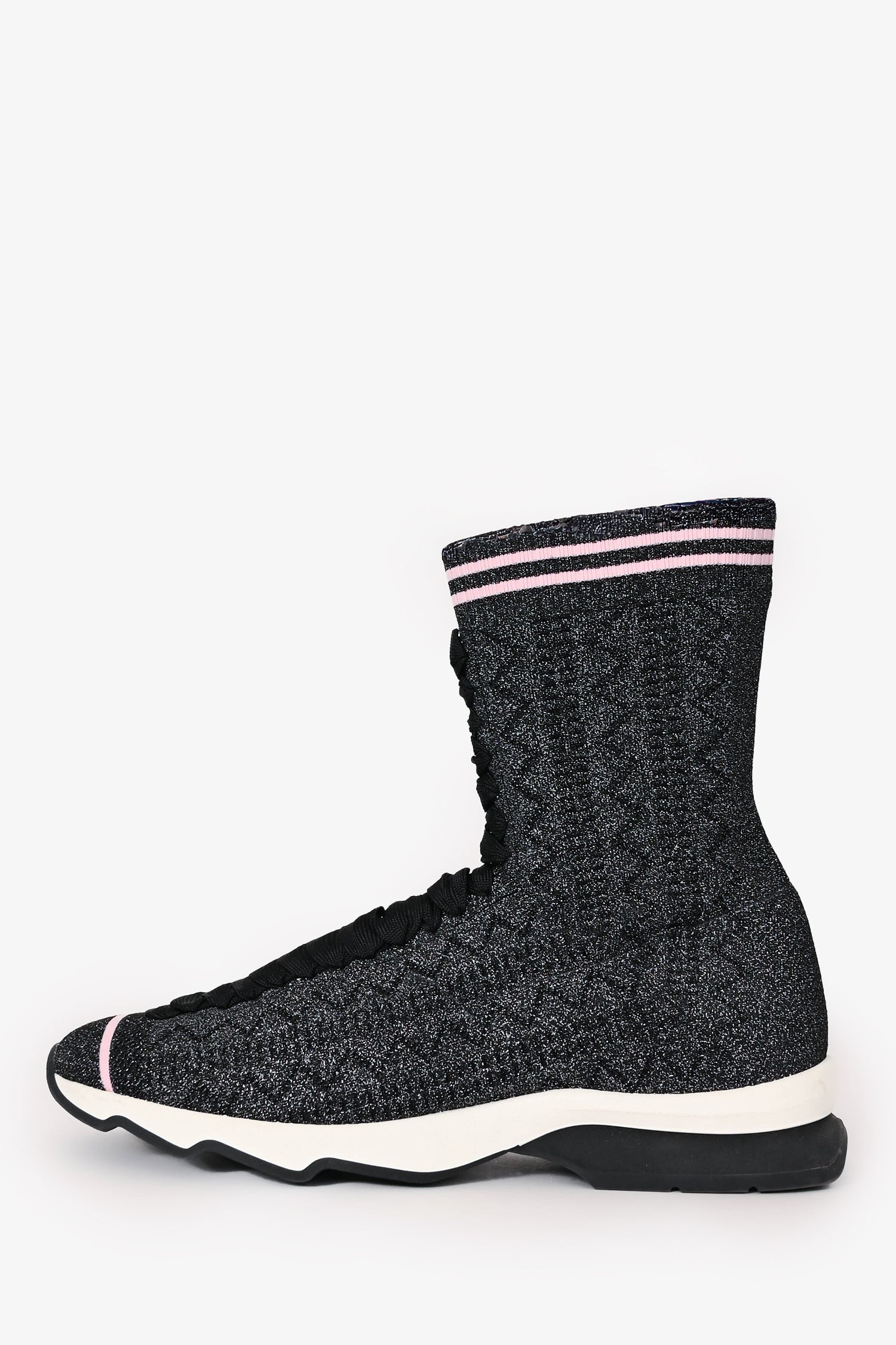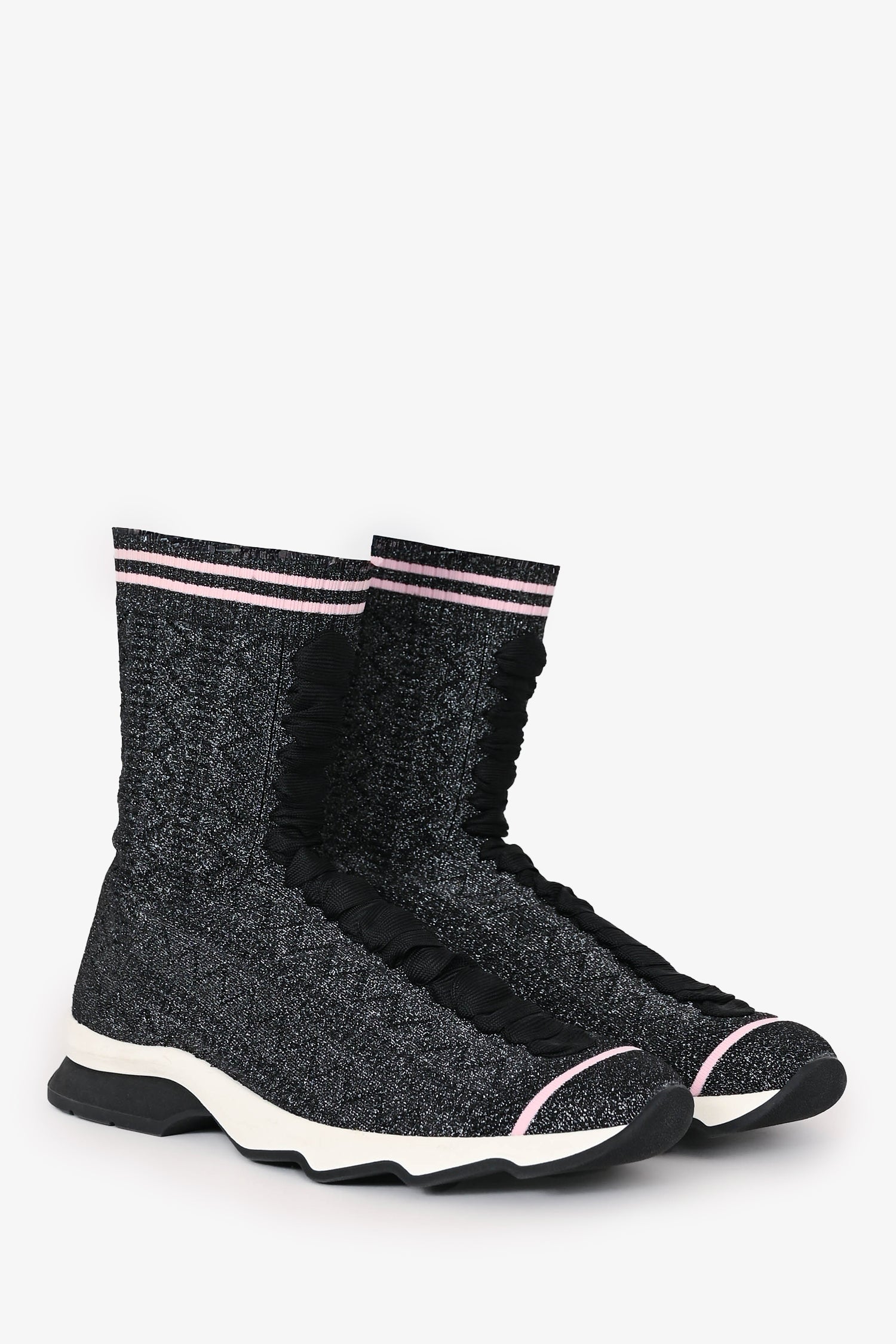 Refresh availabilityFendi Silver Grey/Pink Knit Sock Sneakers. Slip-on. Round toe. Fabric insole. Rubber bottom sole. Tonal stitching.