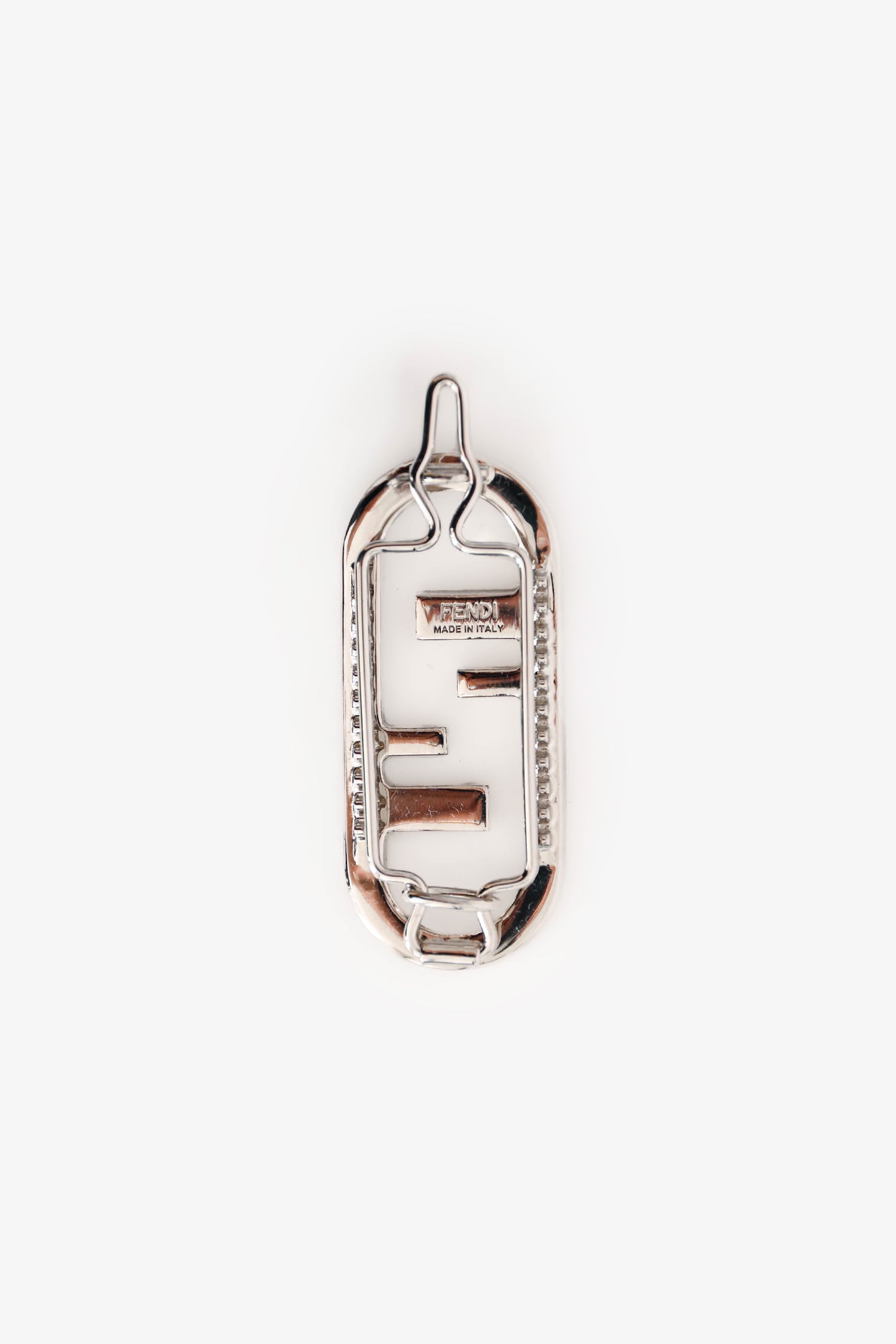 Fendi Silver Tone Metal Crystal Embellished FF Hair Clip